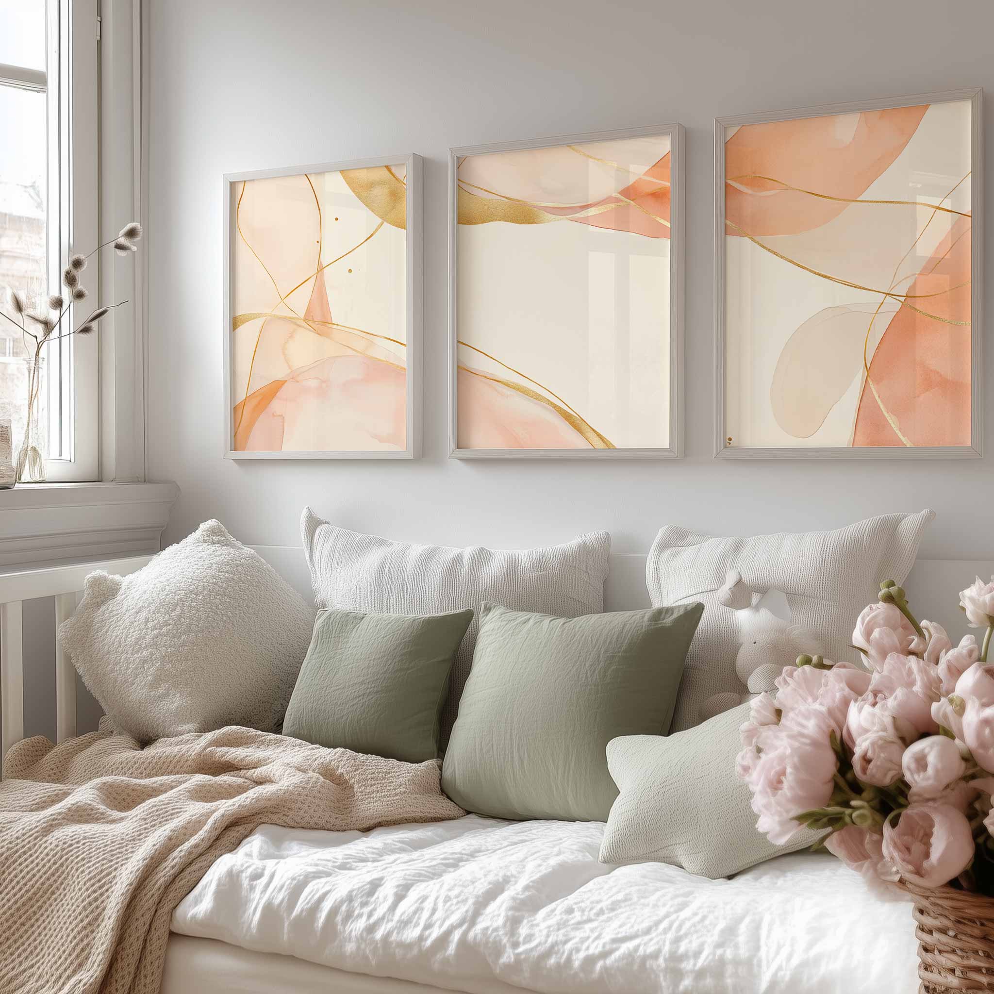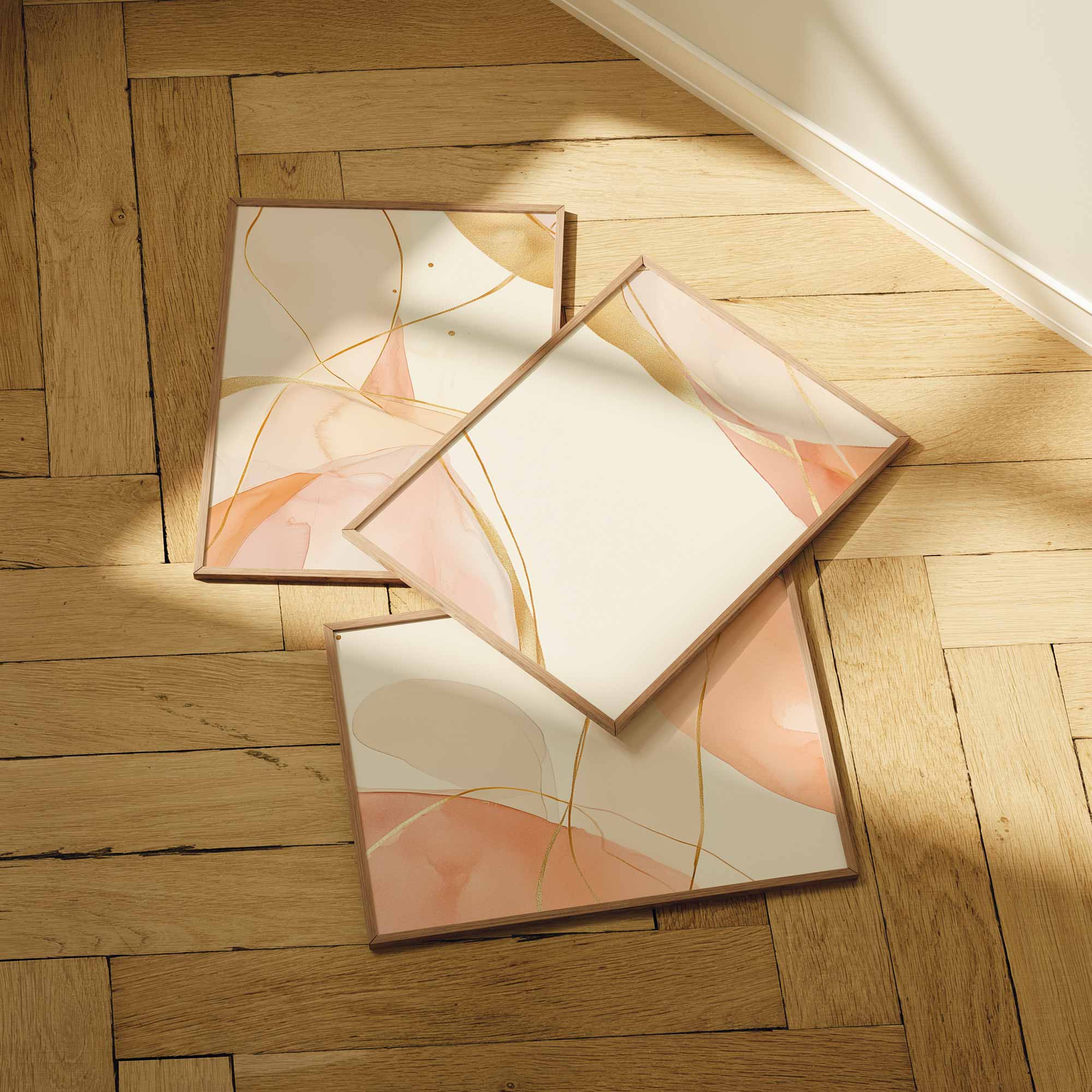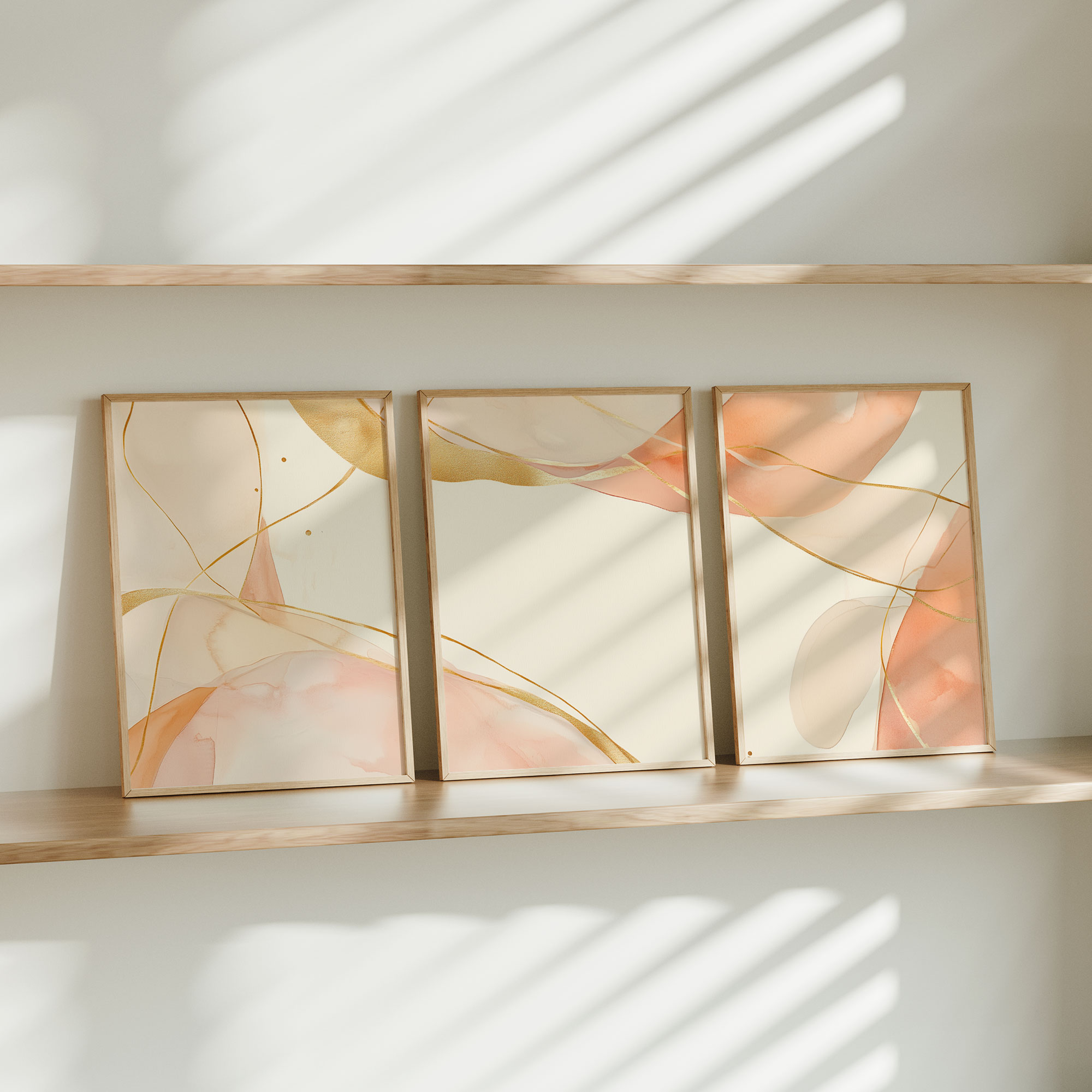 Terug naar collectie Posters Zachte Peachtinten en Gouden Lijnen – Speelse Sereniteit