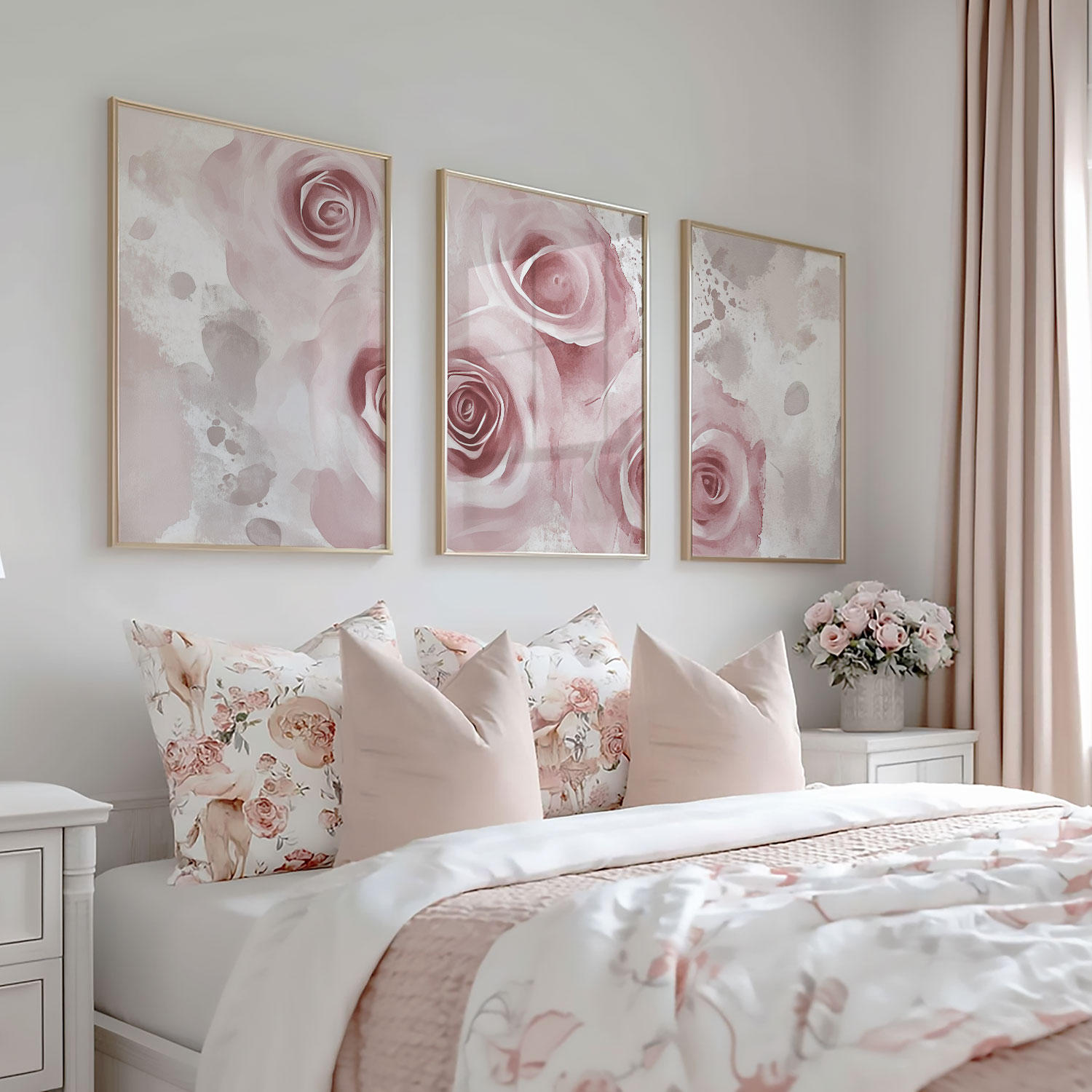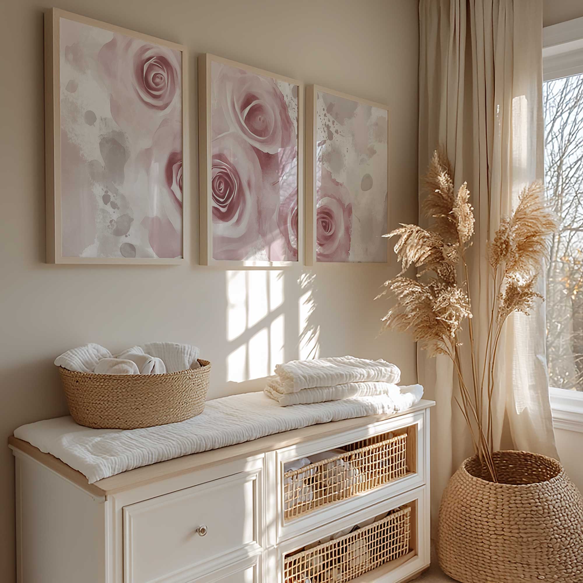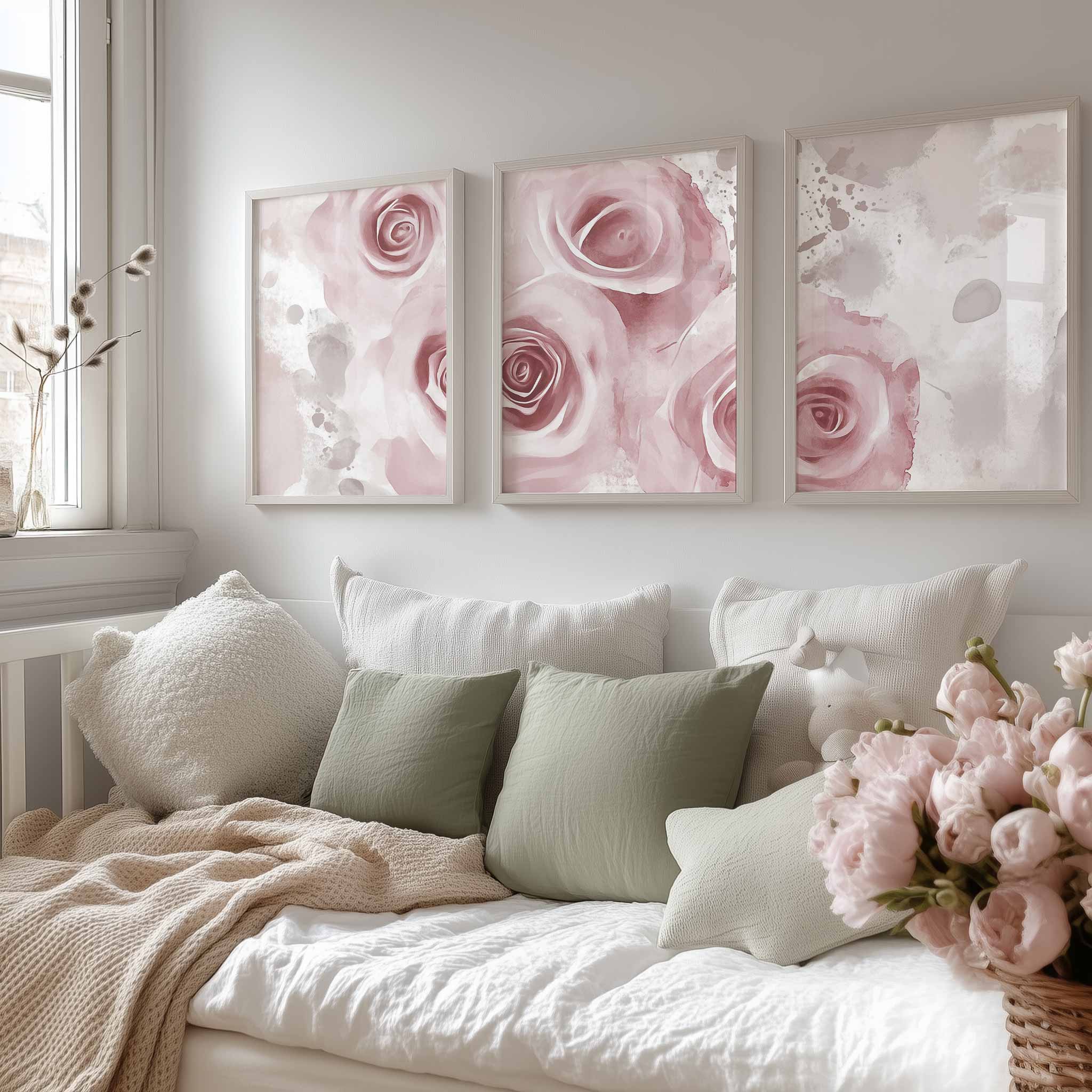 Zachte Watercolor Rozen – Romantische Wanddecoratie
