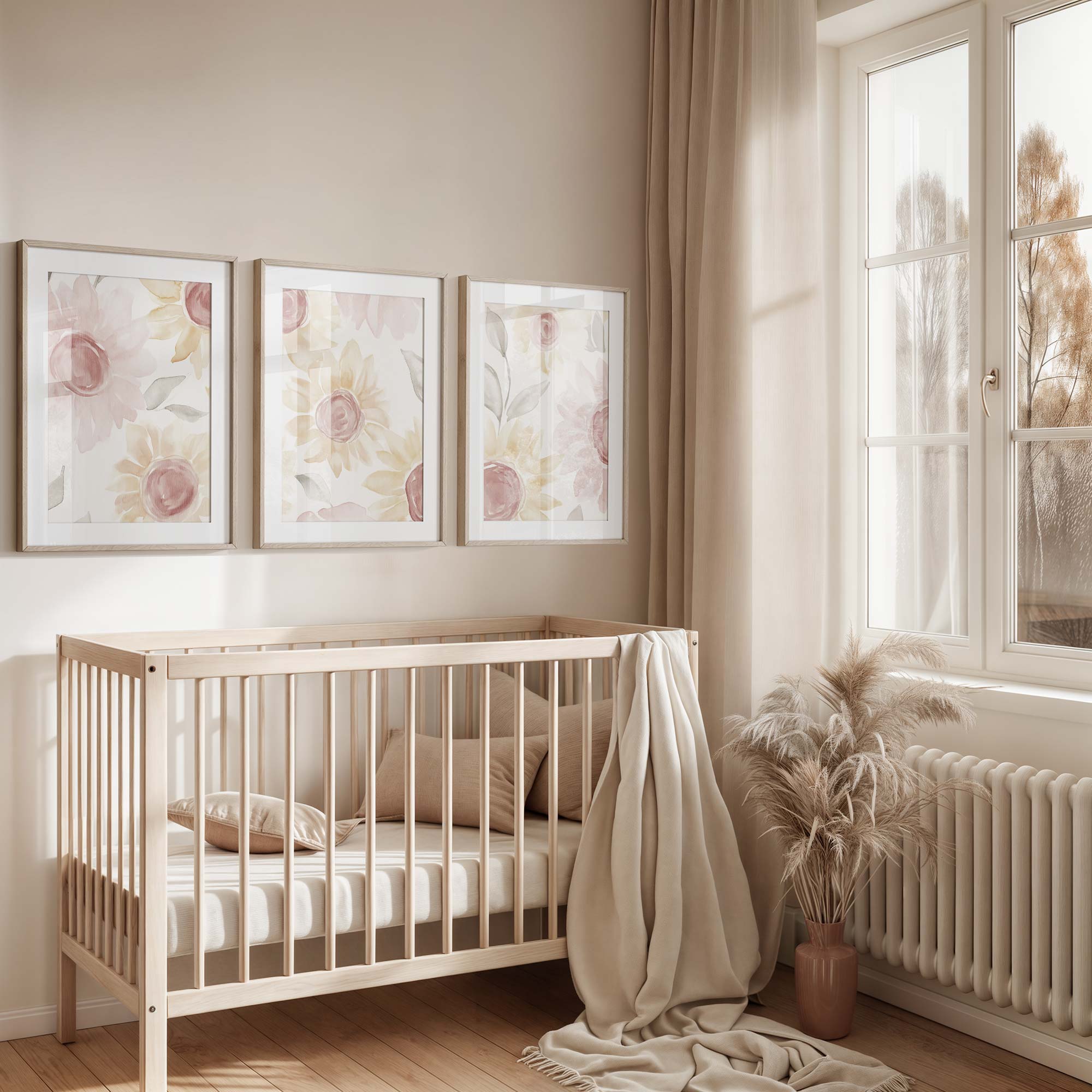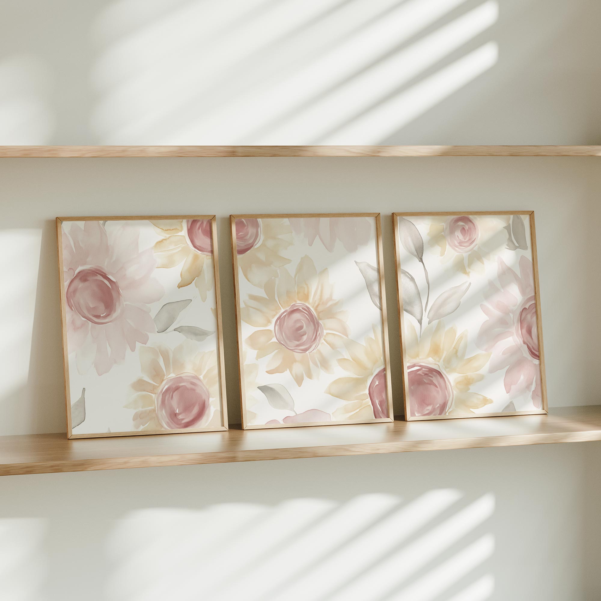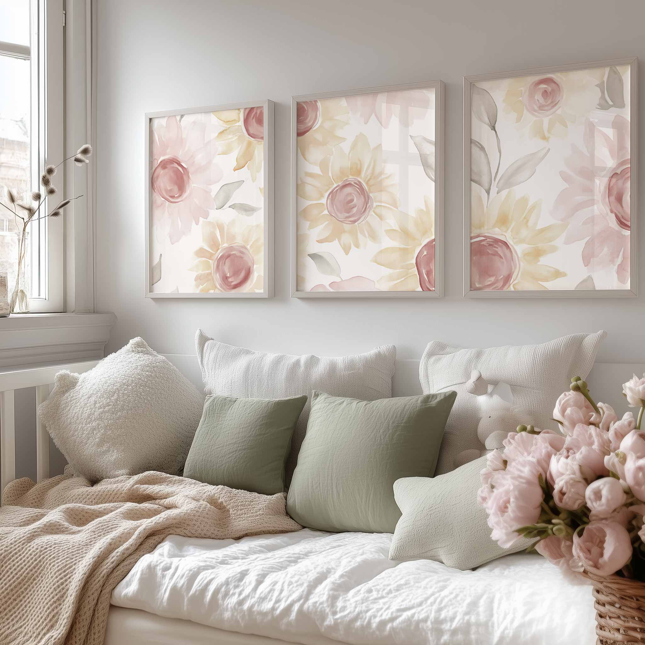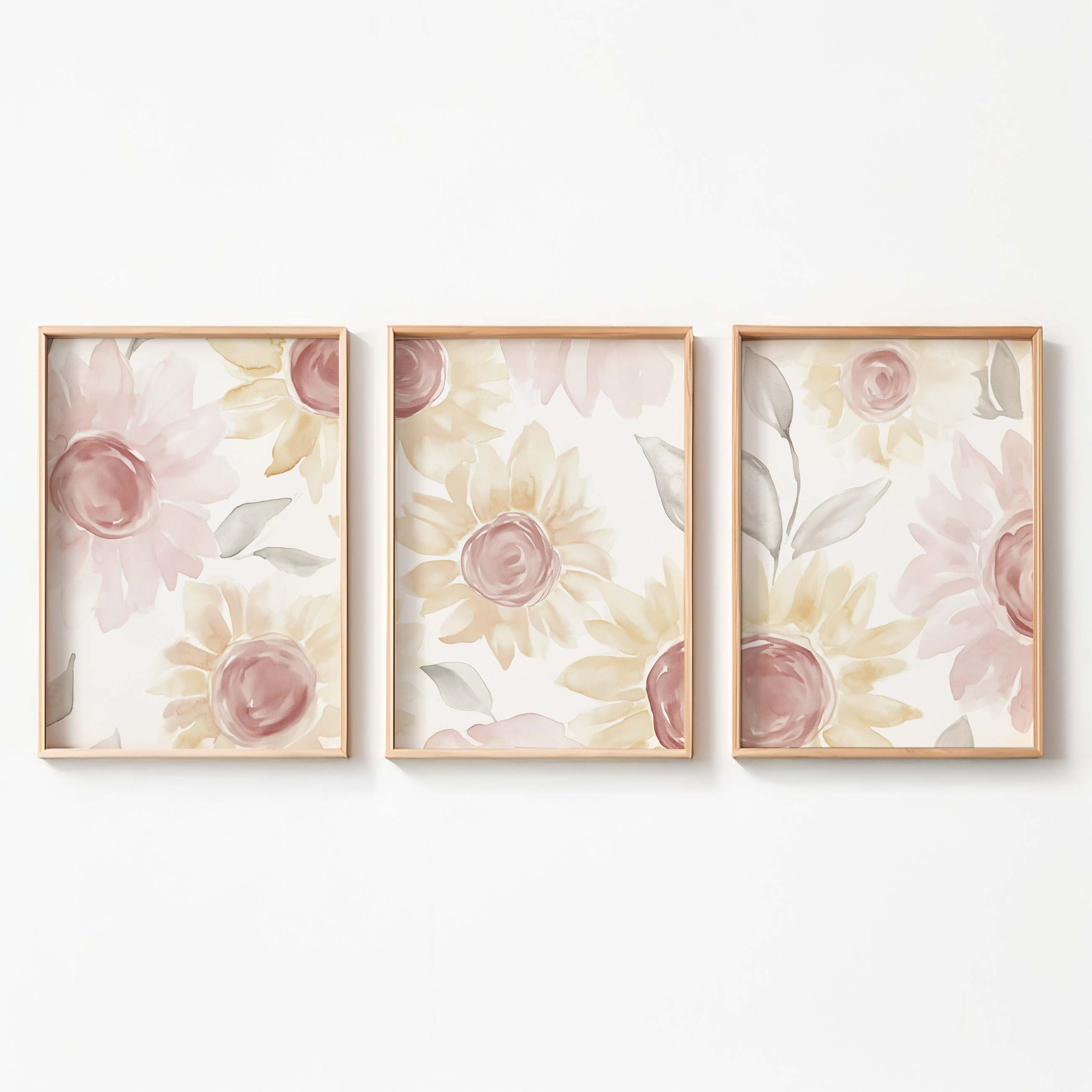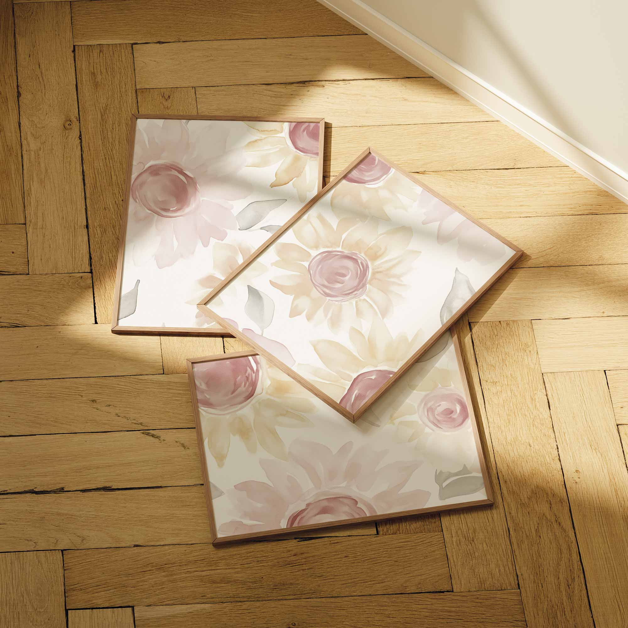 Zachte Waterverfbloemen in Roze en Geel