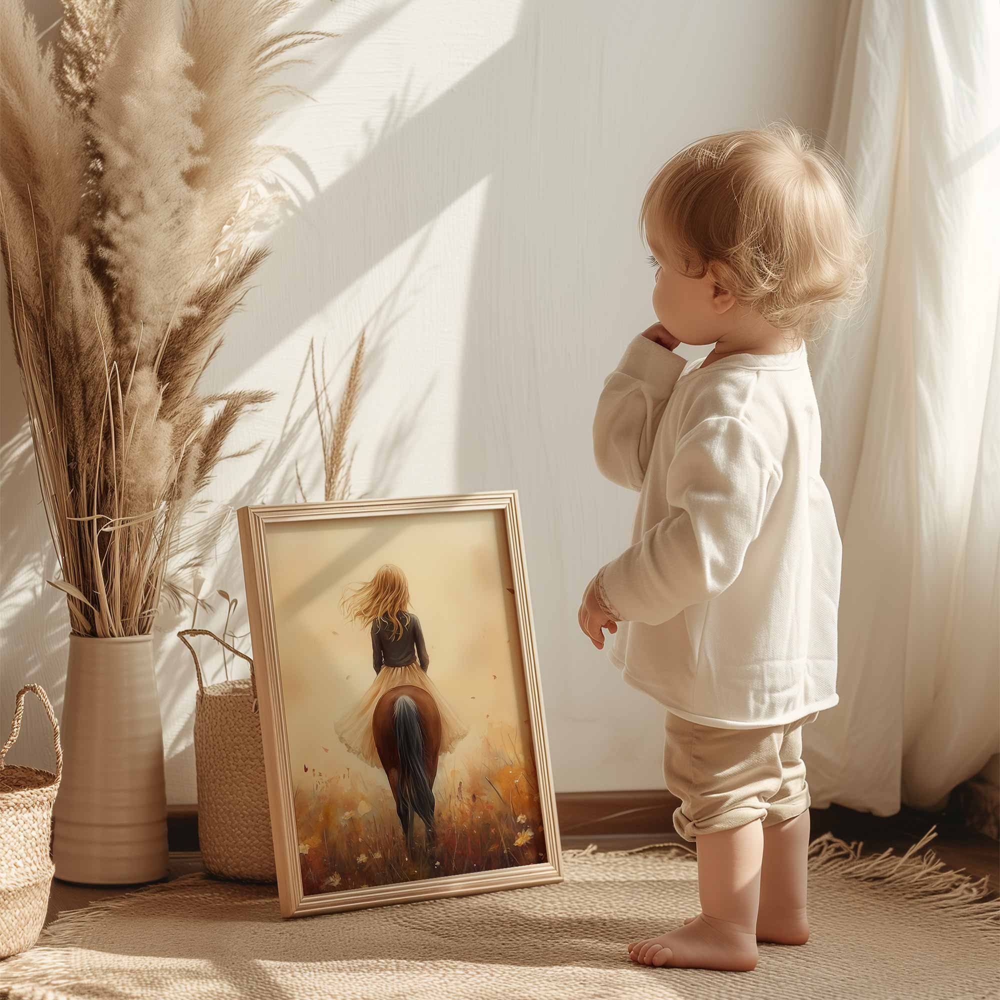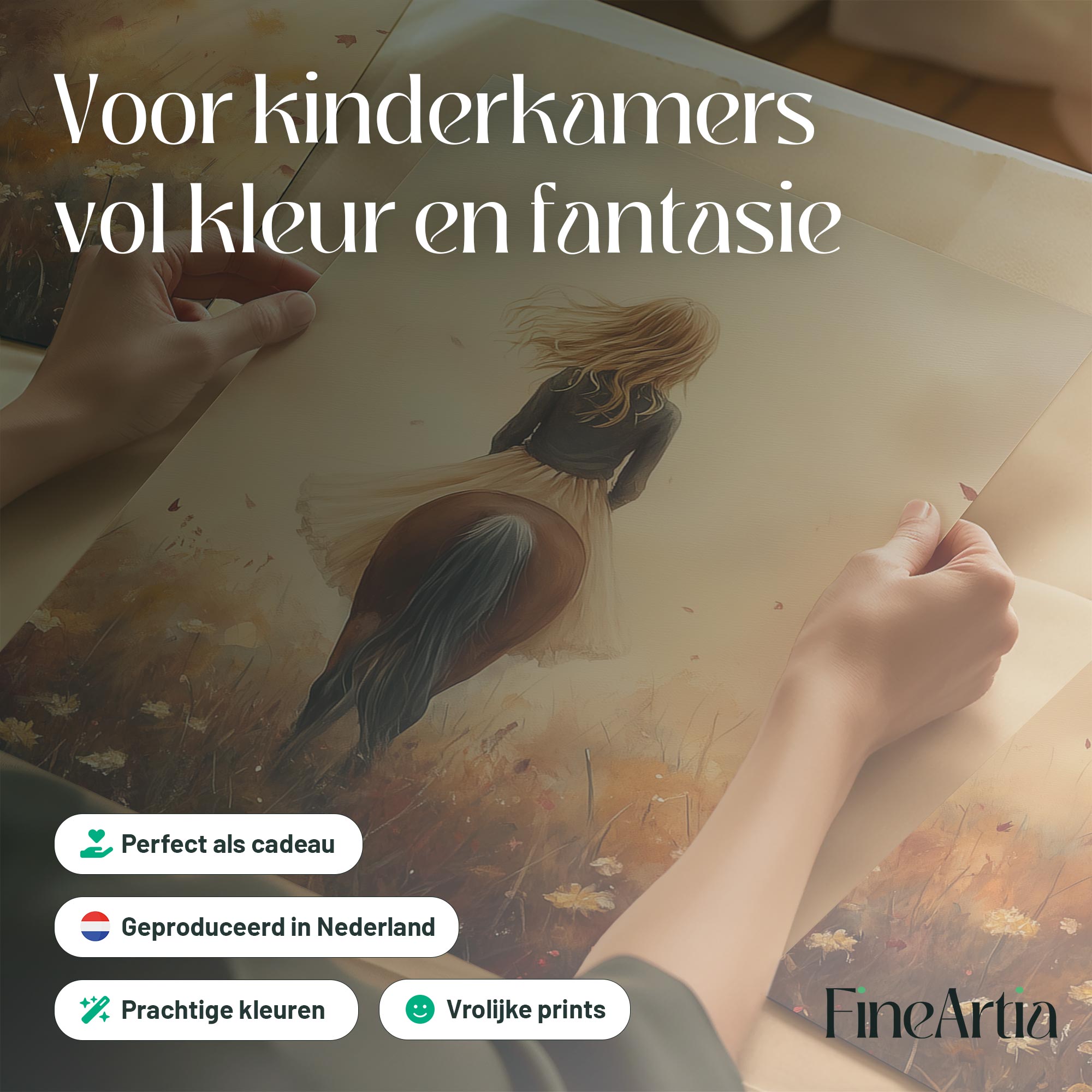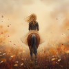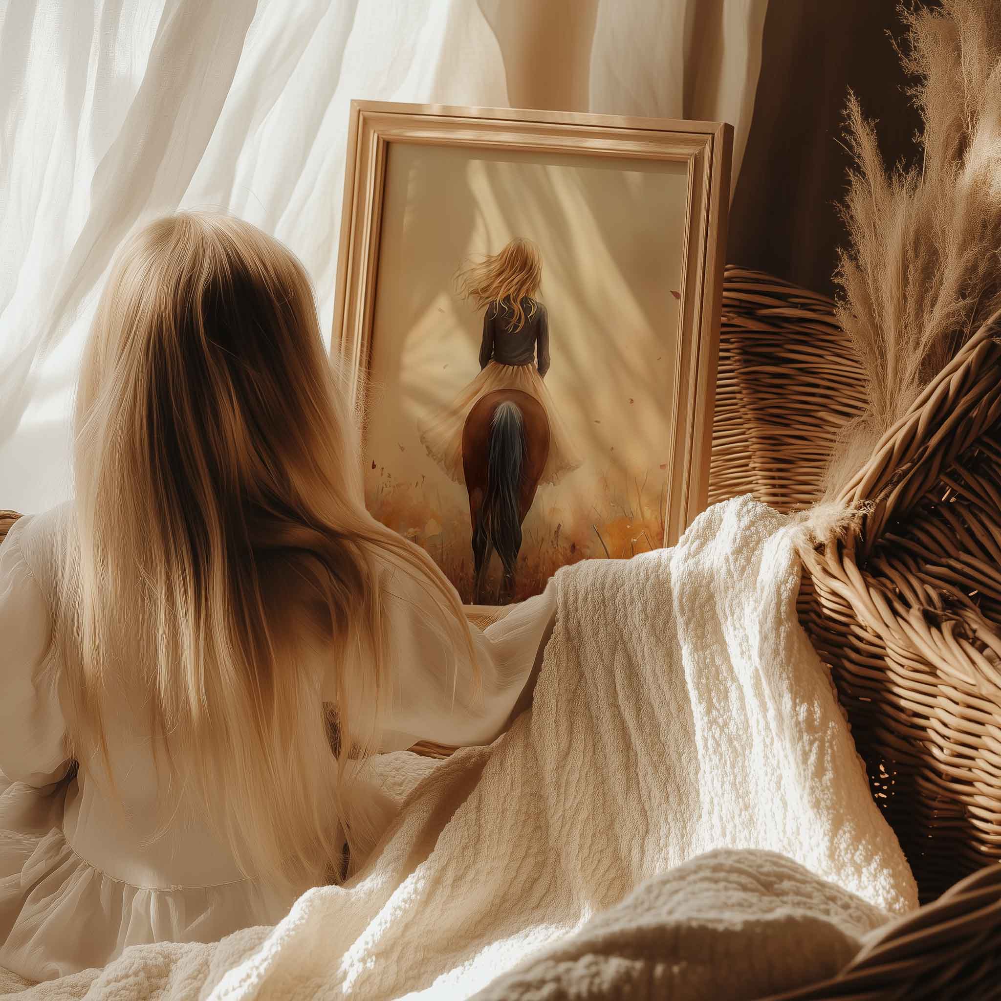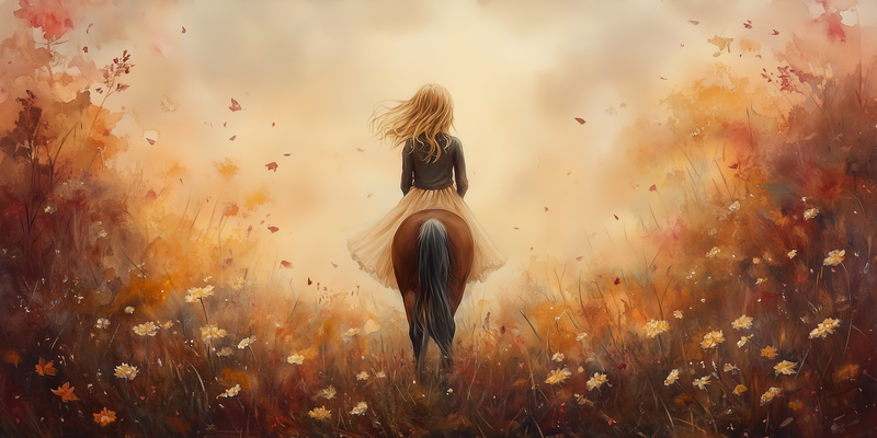 Zachte Zonnestralen: Vrouw te Paard in Bloemenveld