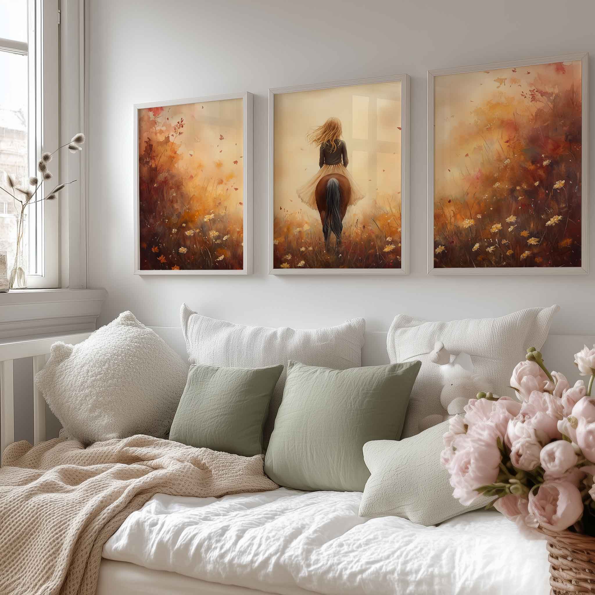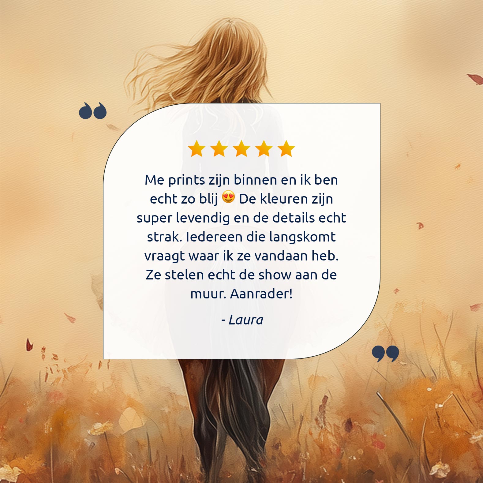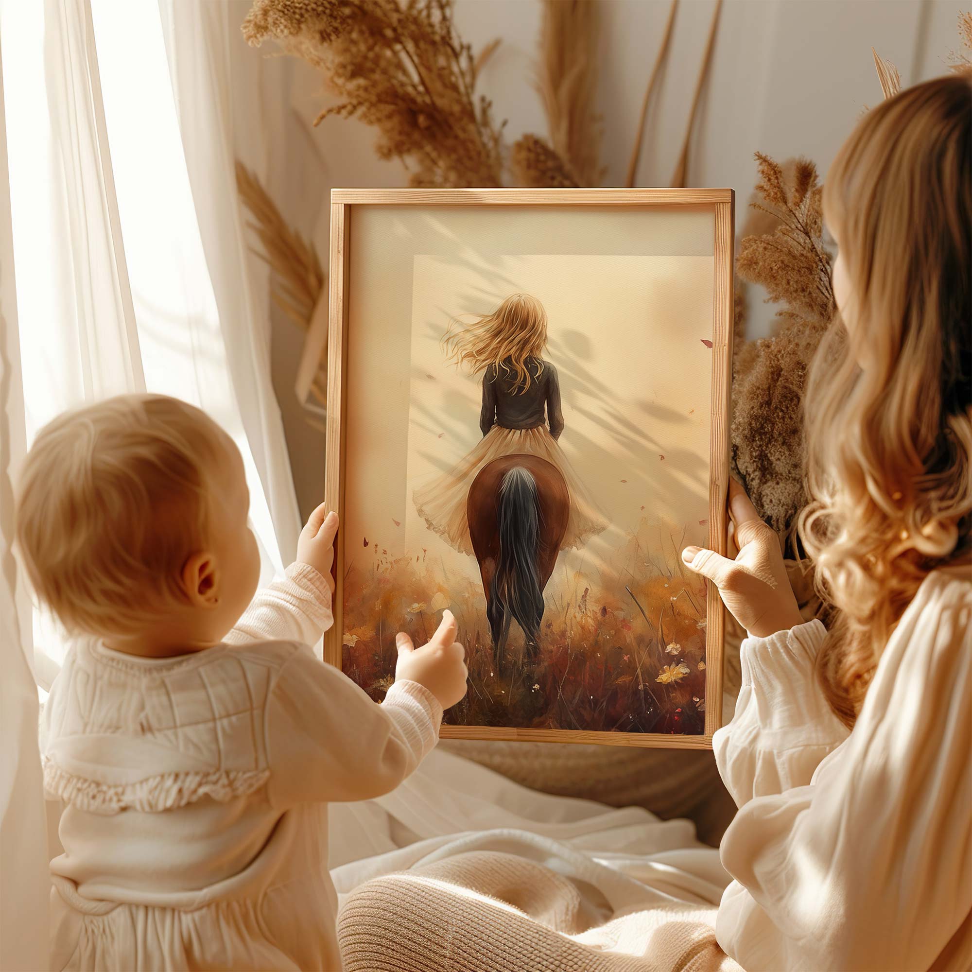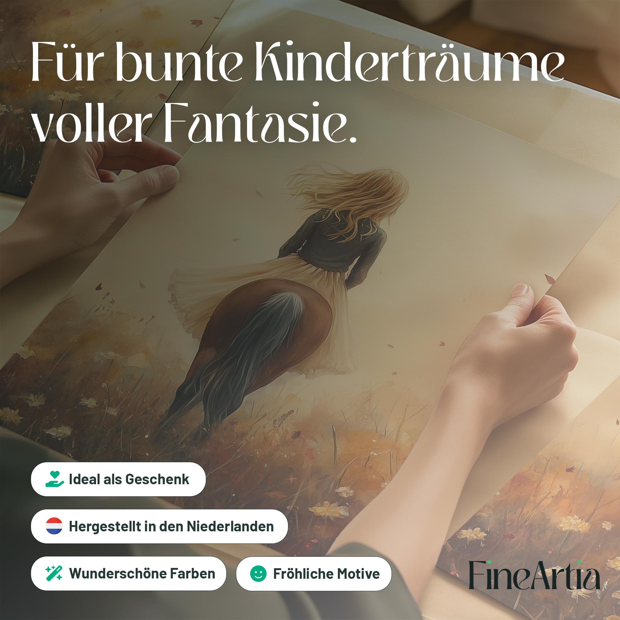 Zachte Zonnestralen: Vrouw te Paard in Bloemenveld