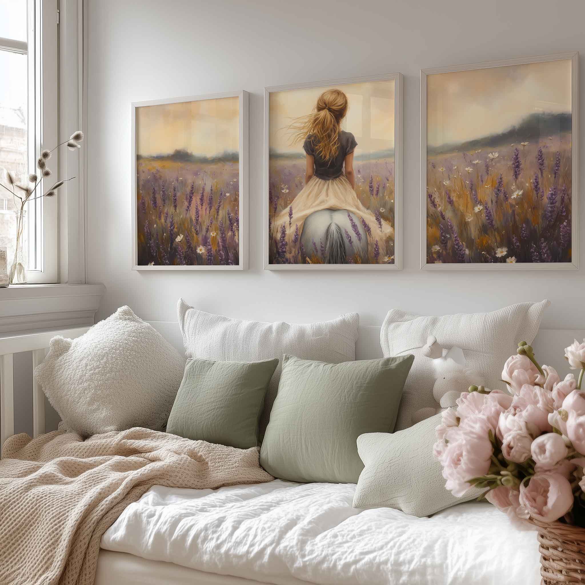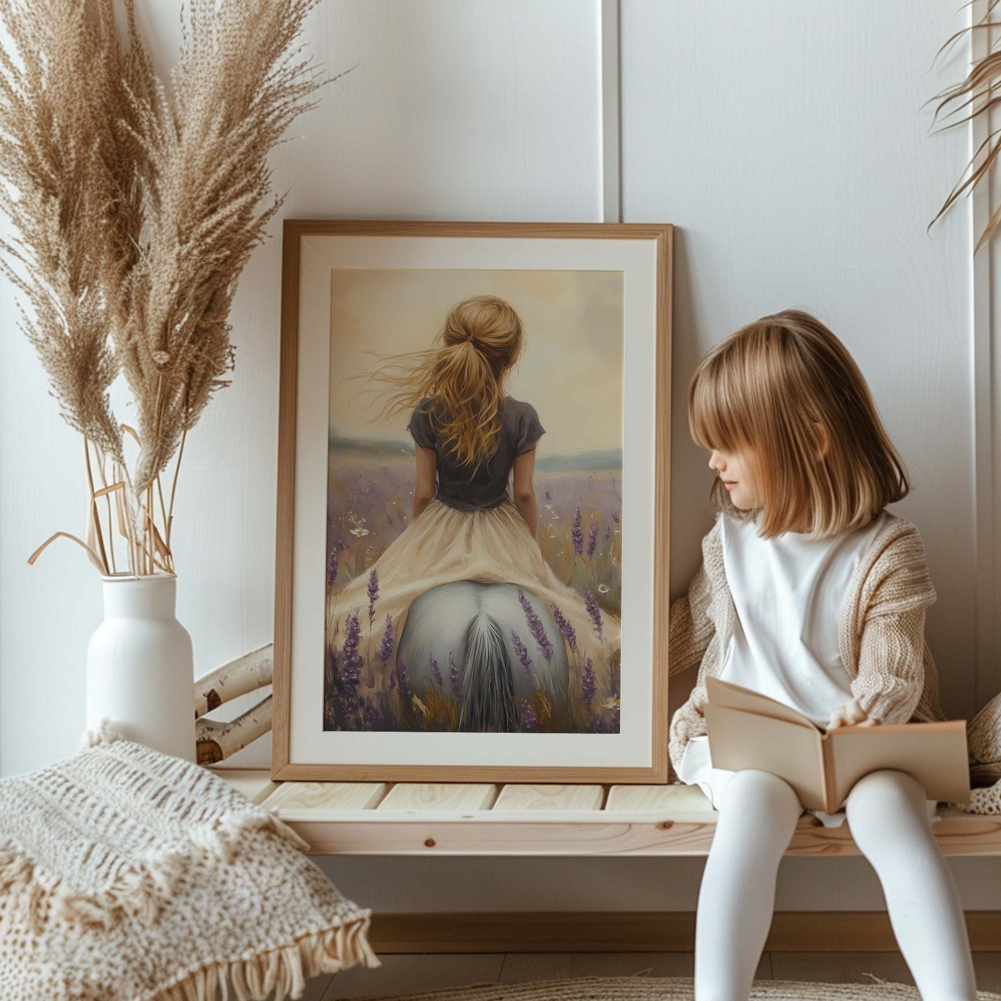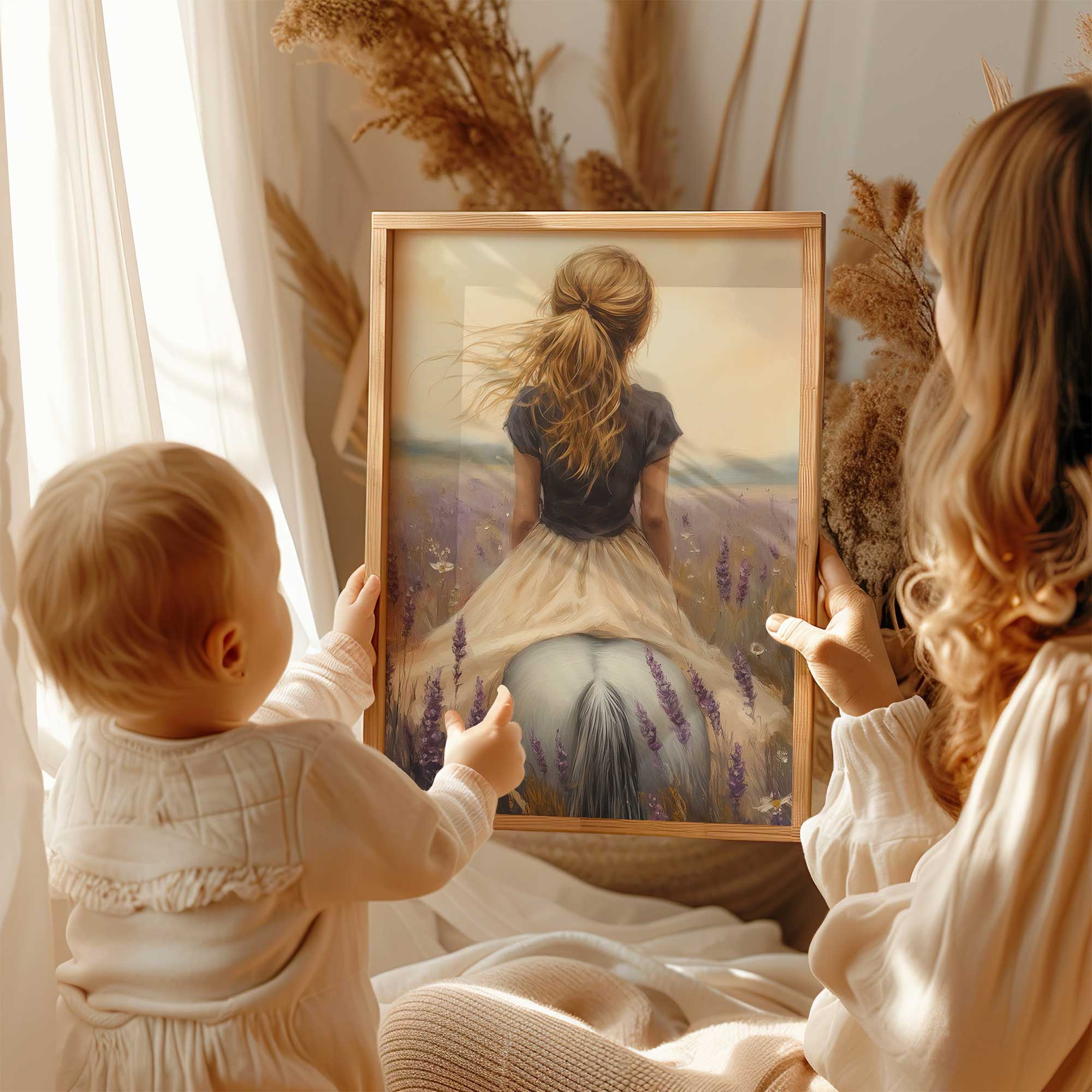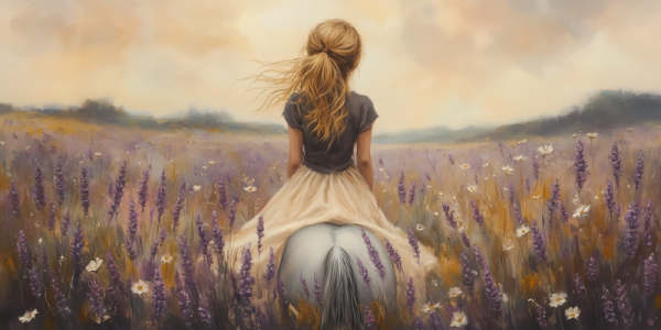 Zachtgekleurde droom: vrouw te paard tussen bloemen
