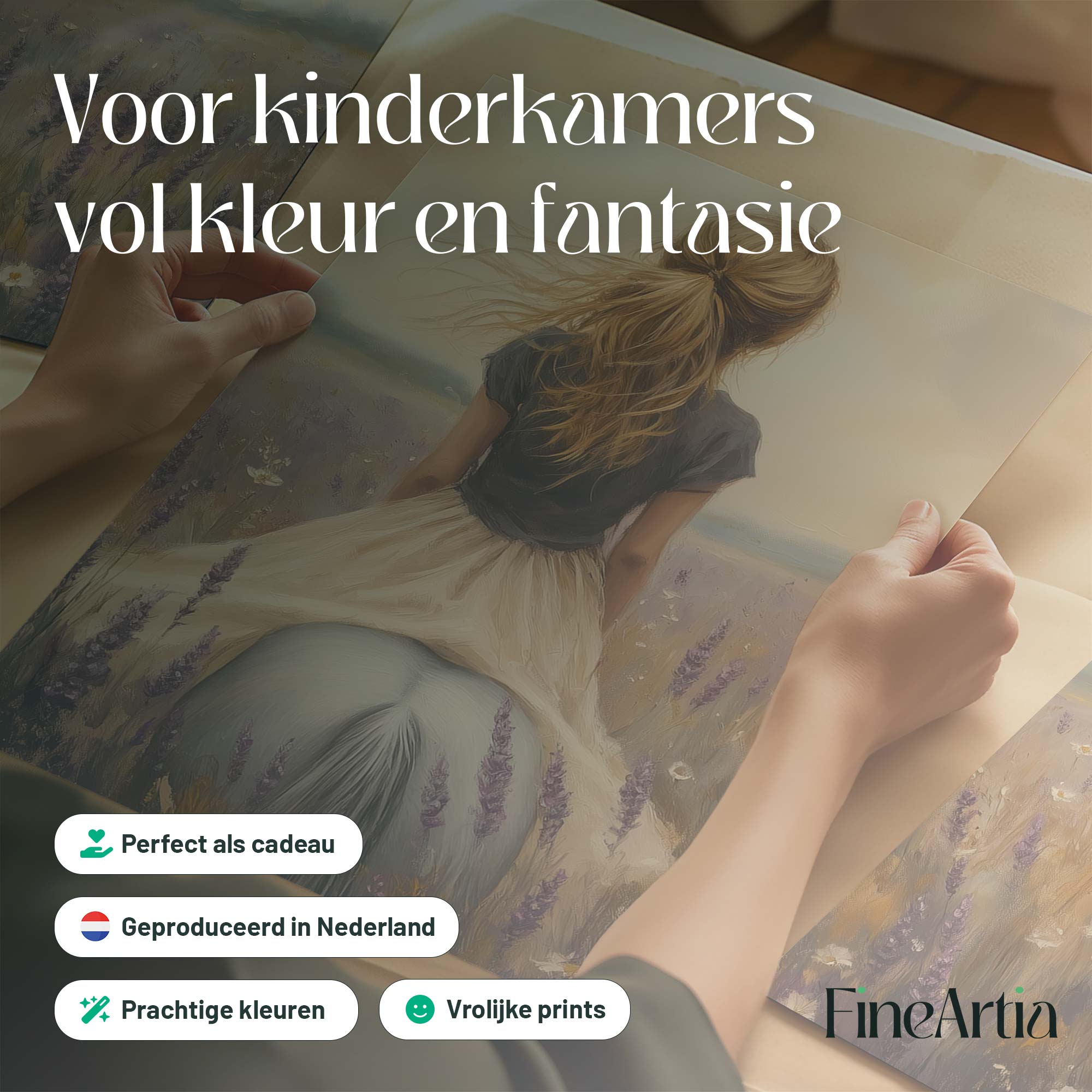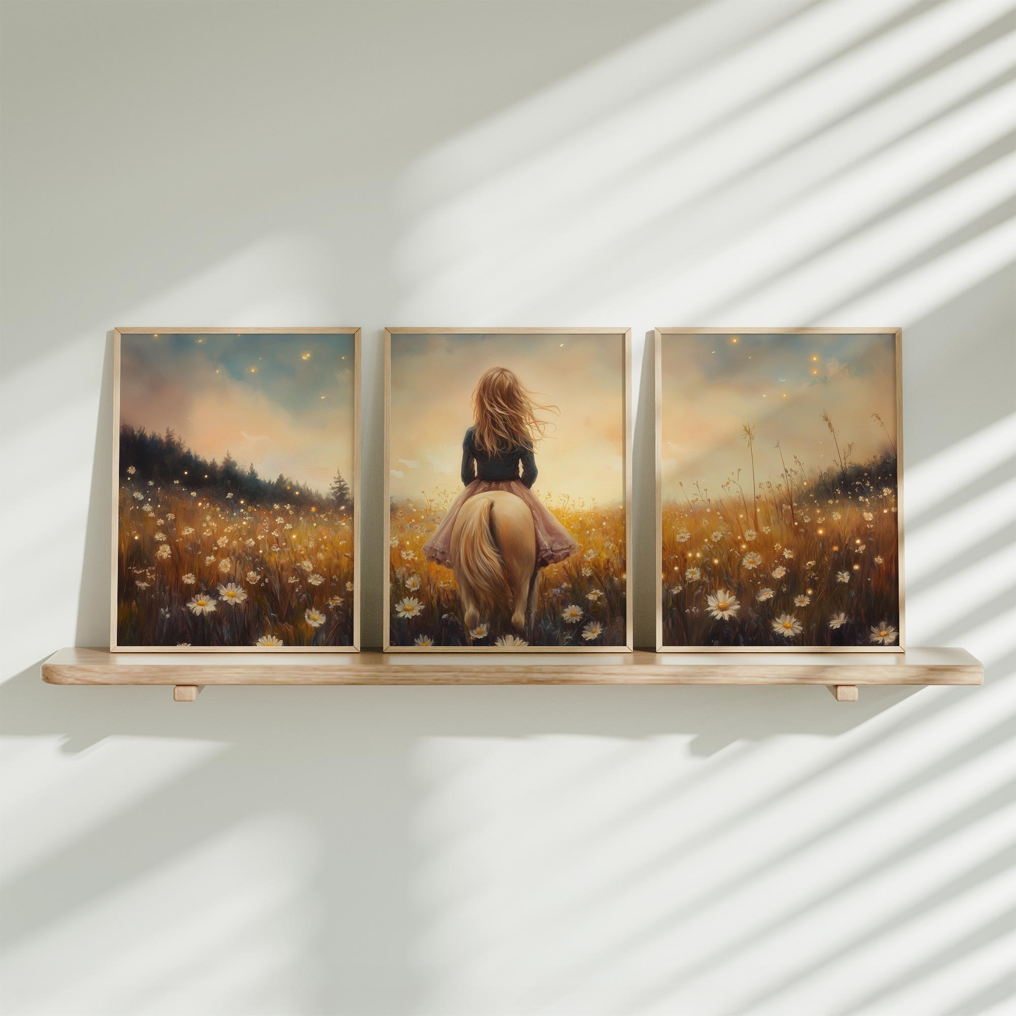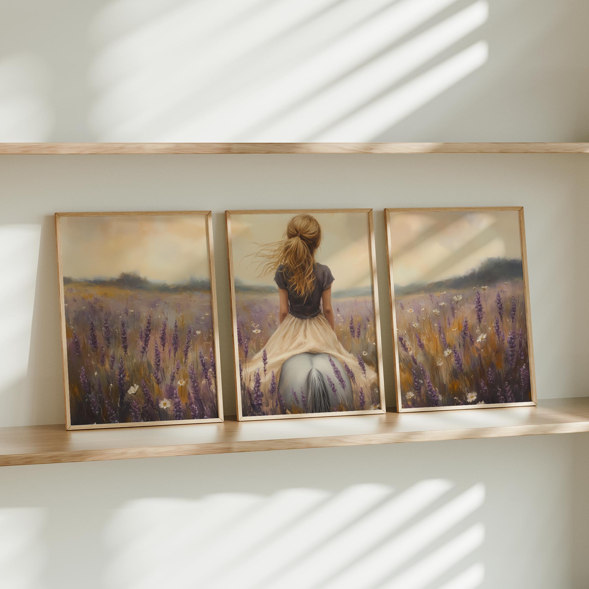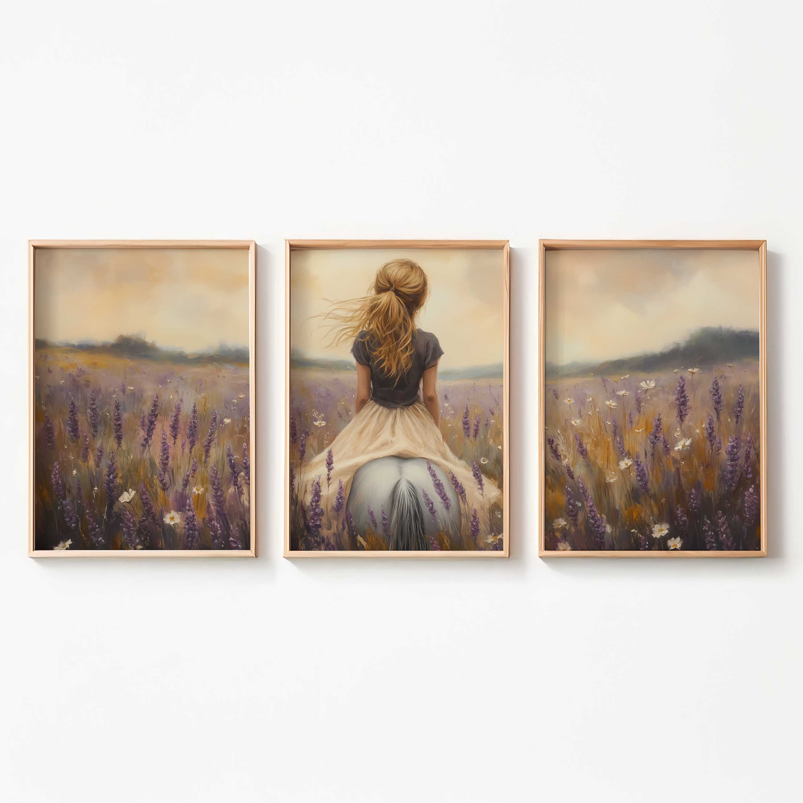 Zachtgekleurde droom: vrouw te paard tussen bloemen