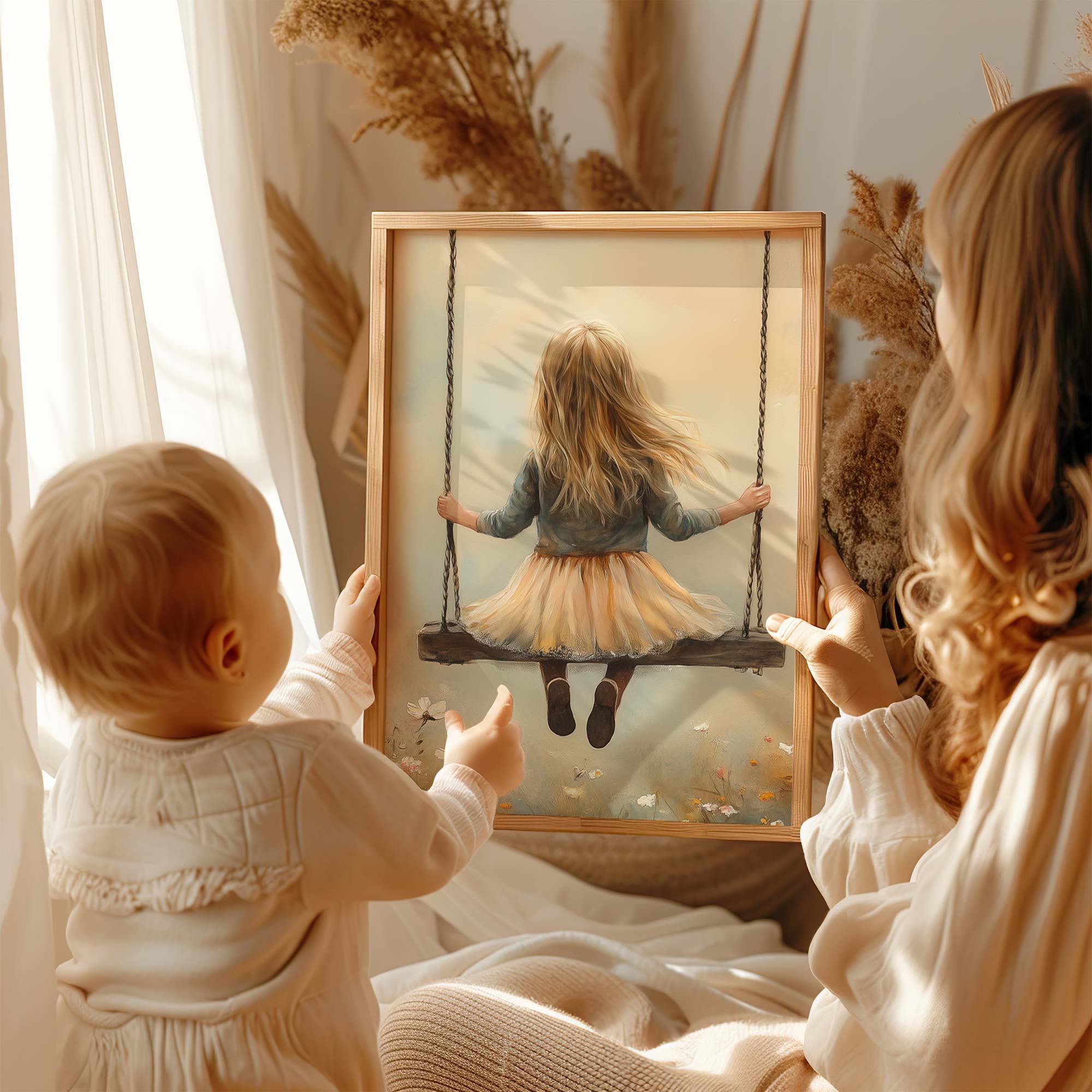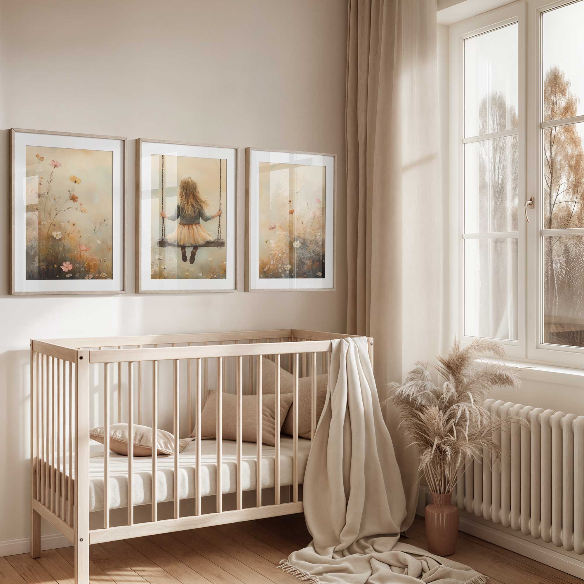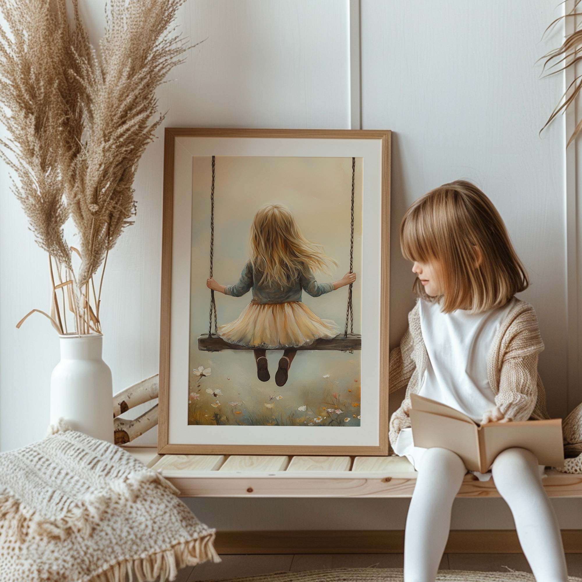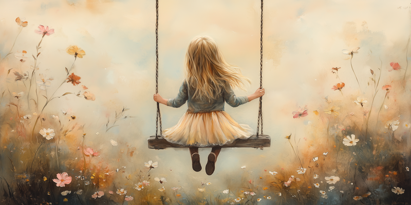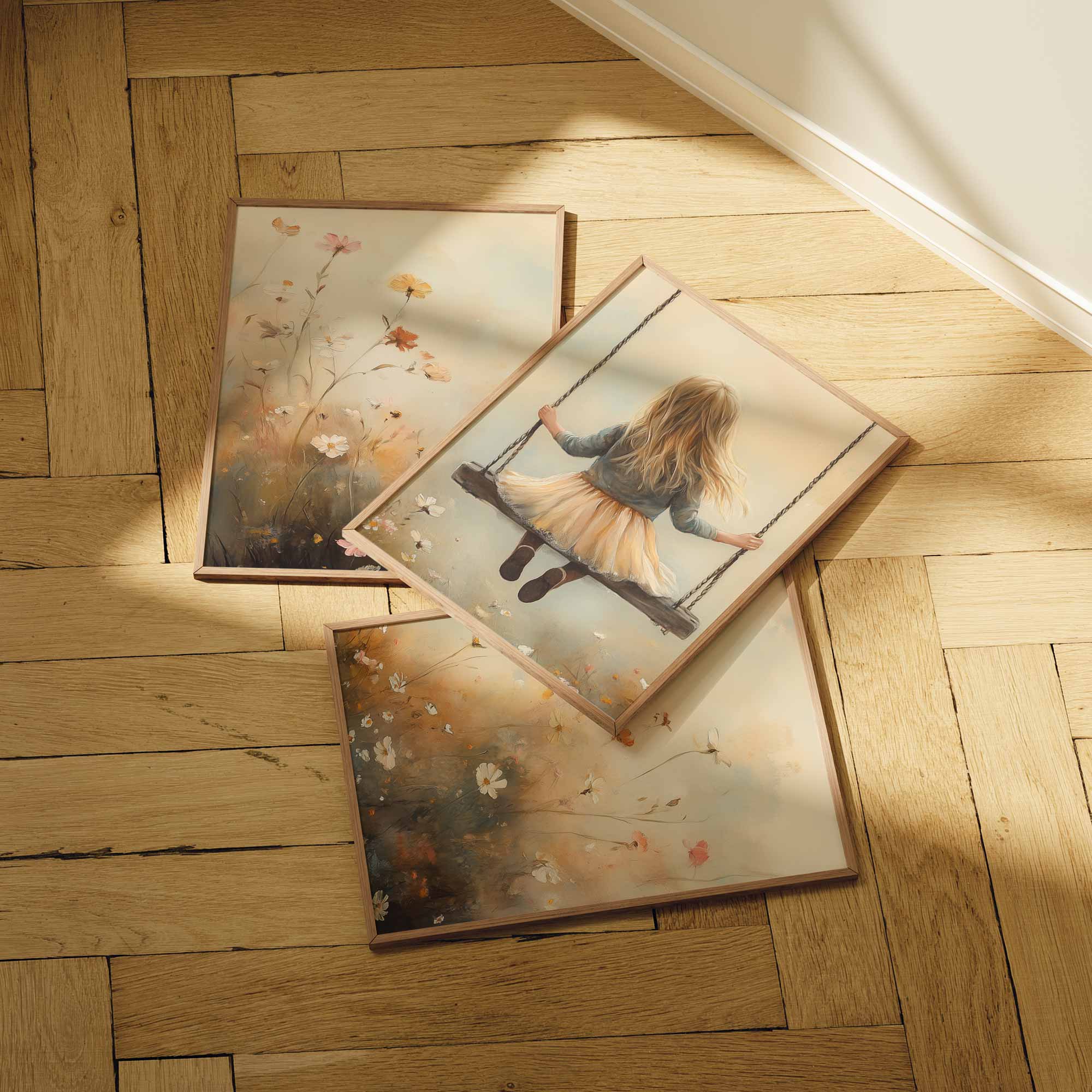 Terug naar collectie Posters Zachtgekleurde schommel in een bloemenveld
