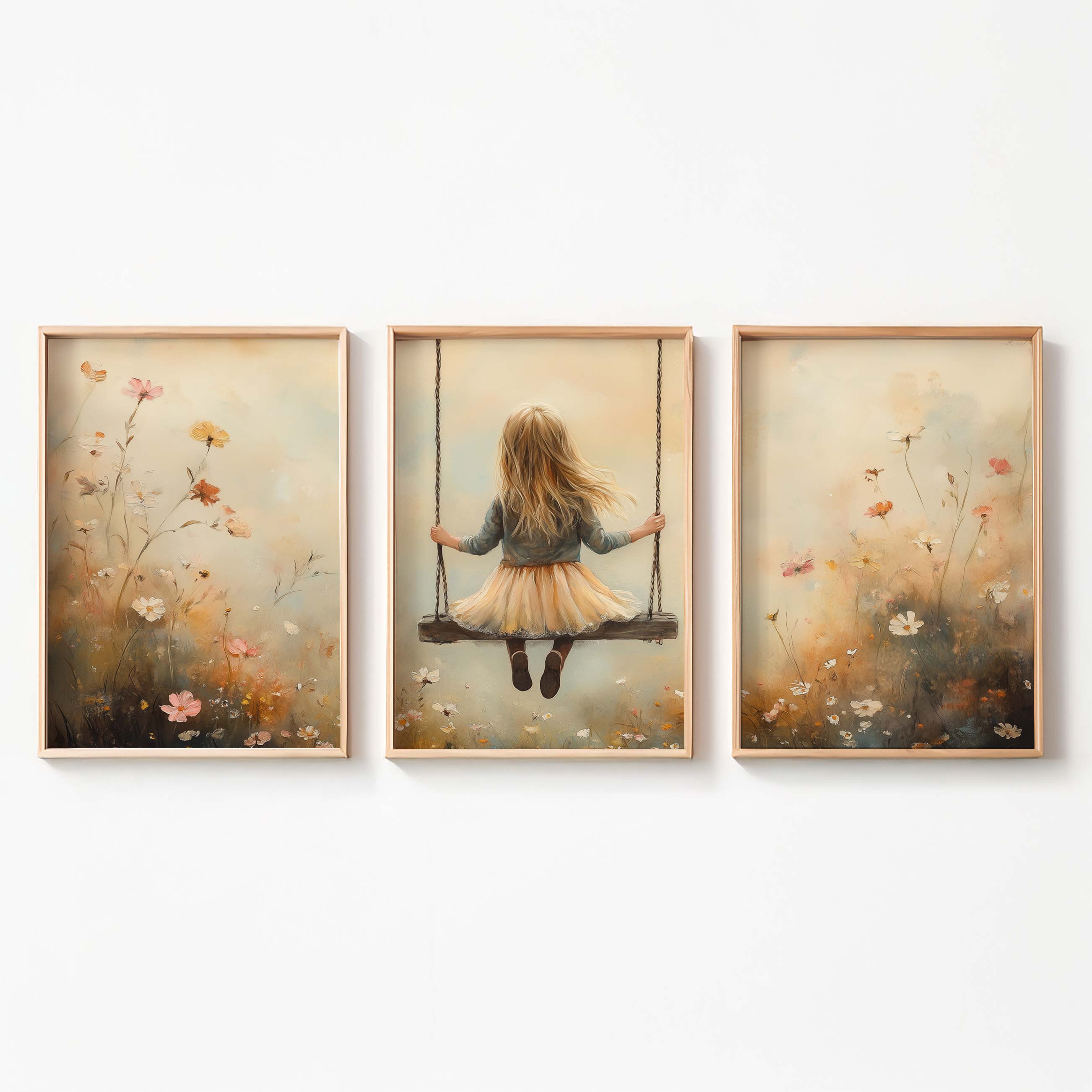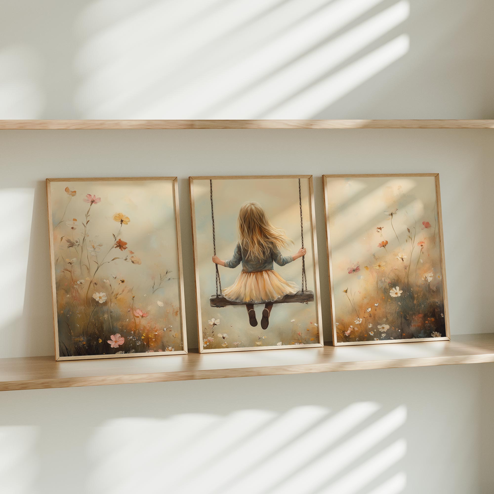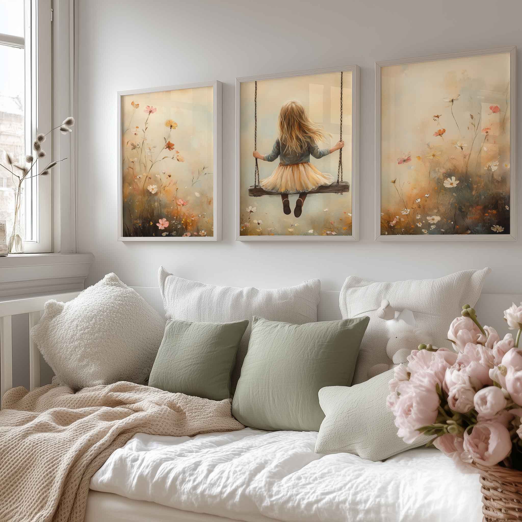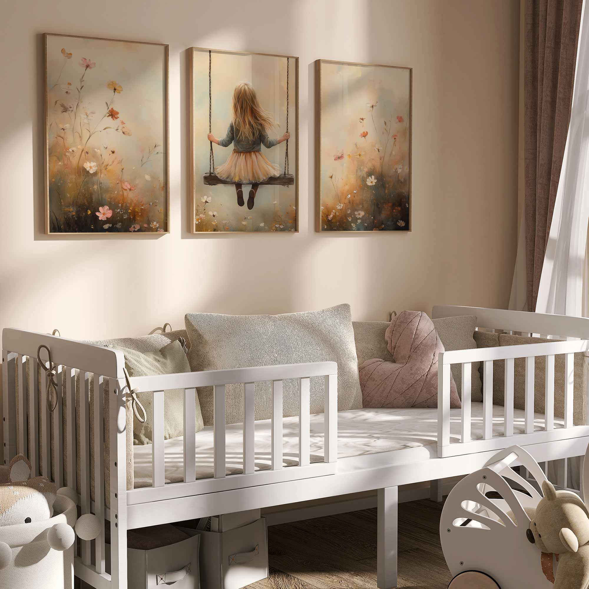 Terug naar collectie Posters Zachtgekleurde schommel in een bloemenveld