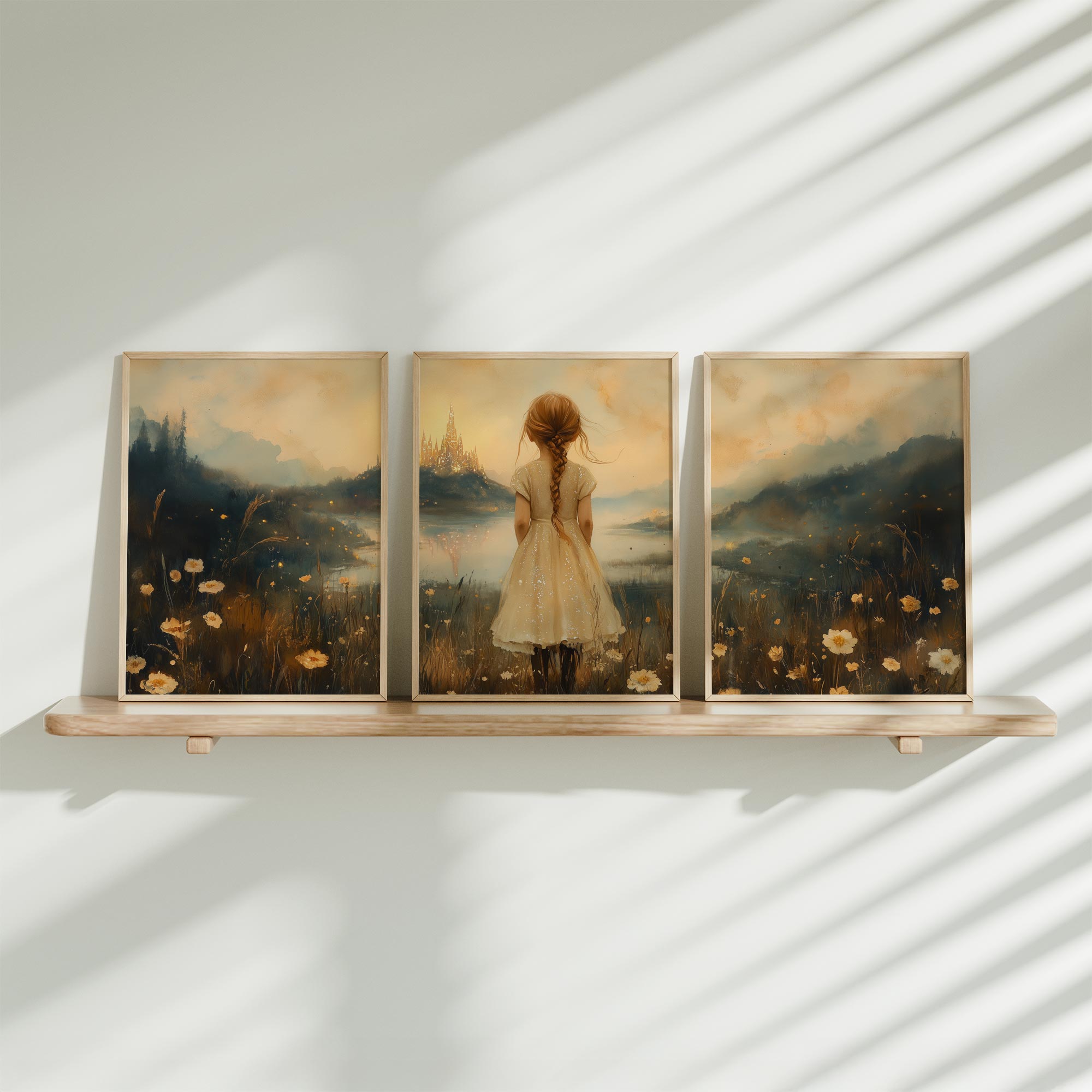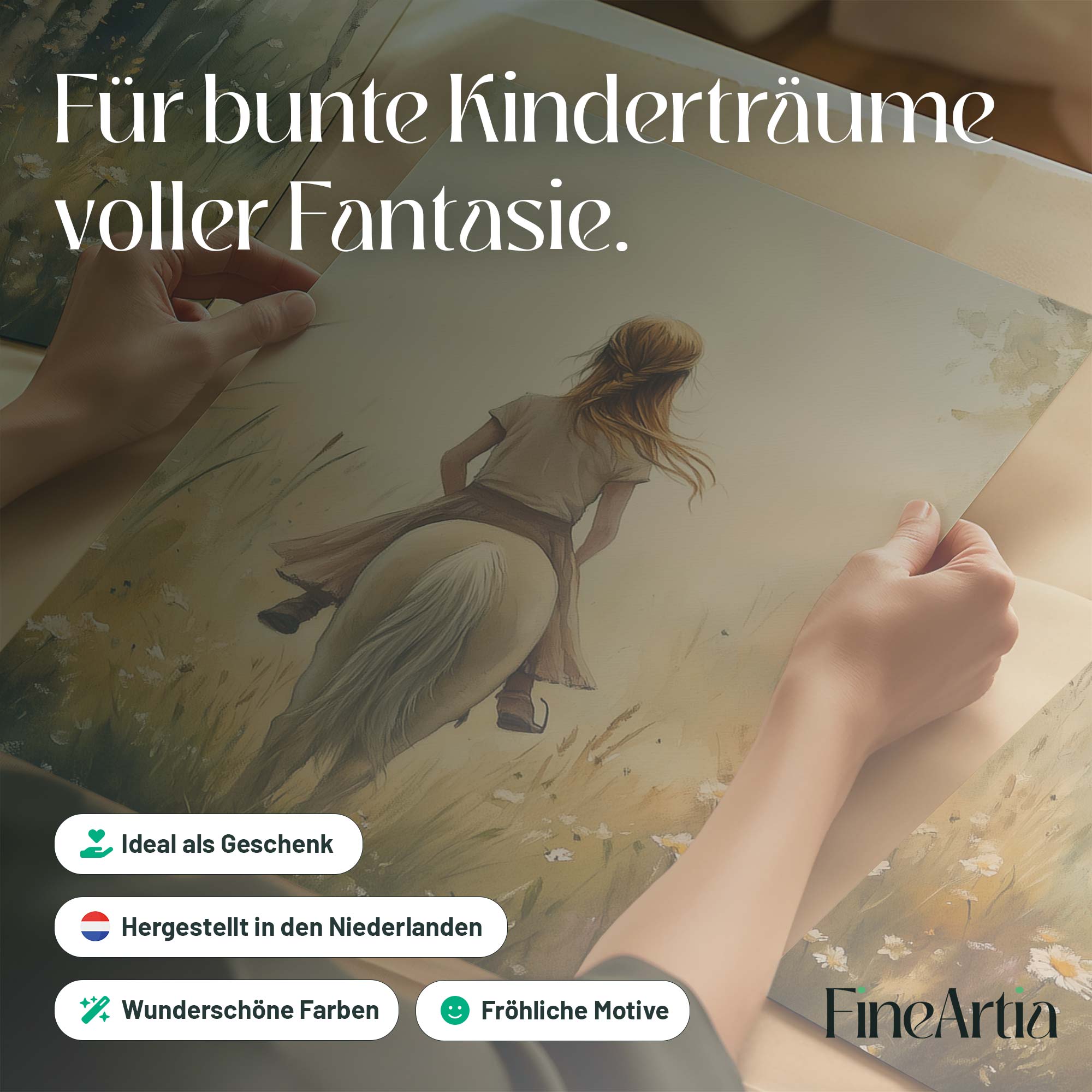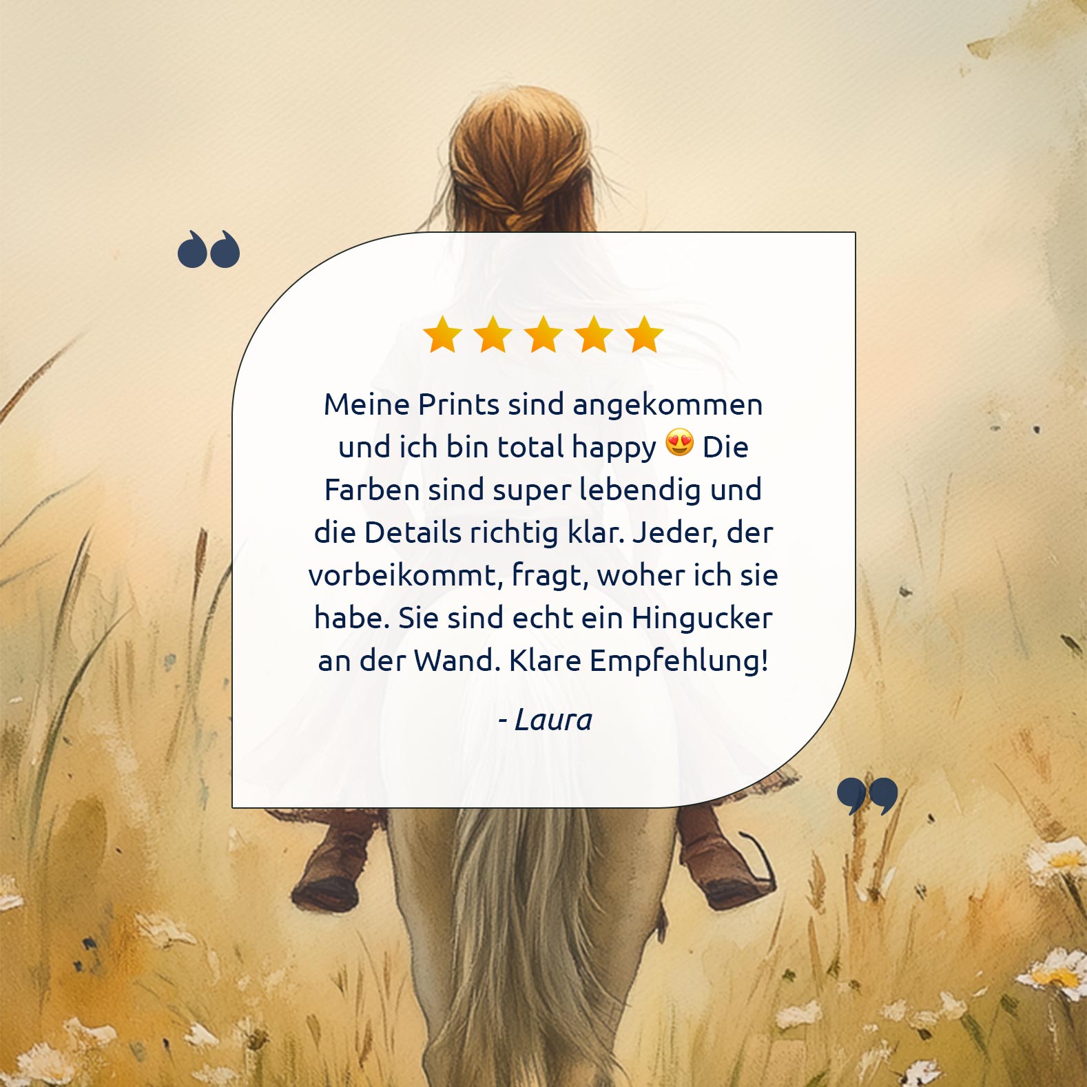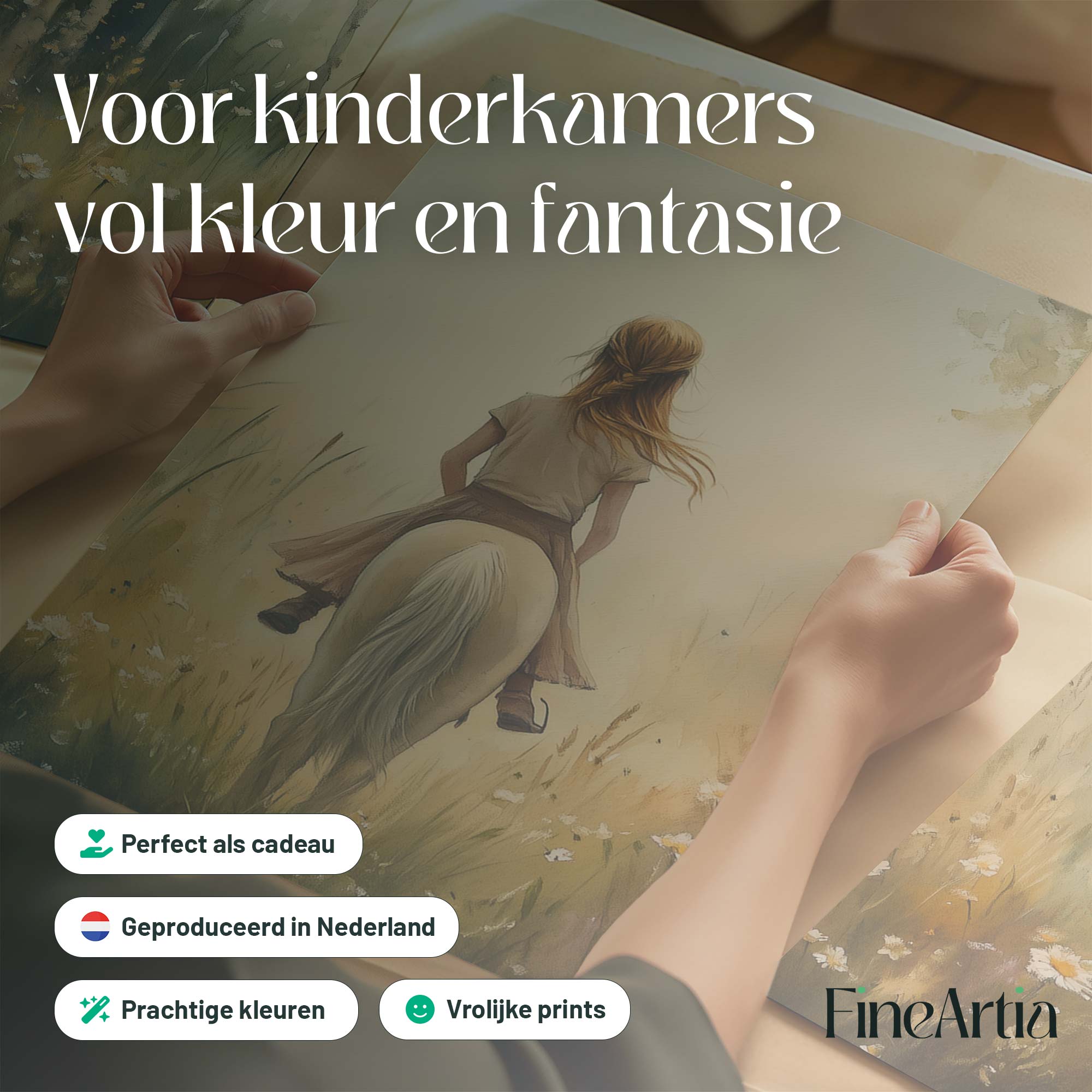 Terug naar collectie Posters Zachtgroene Droom: Vrouw te Paard in Bloemenveld