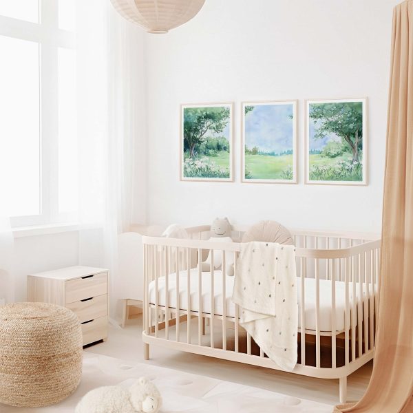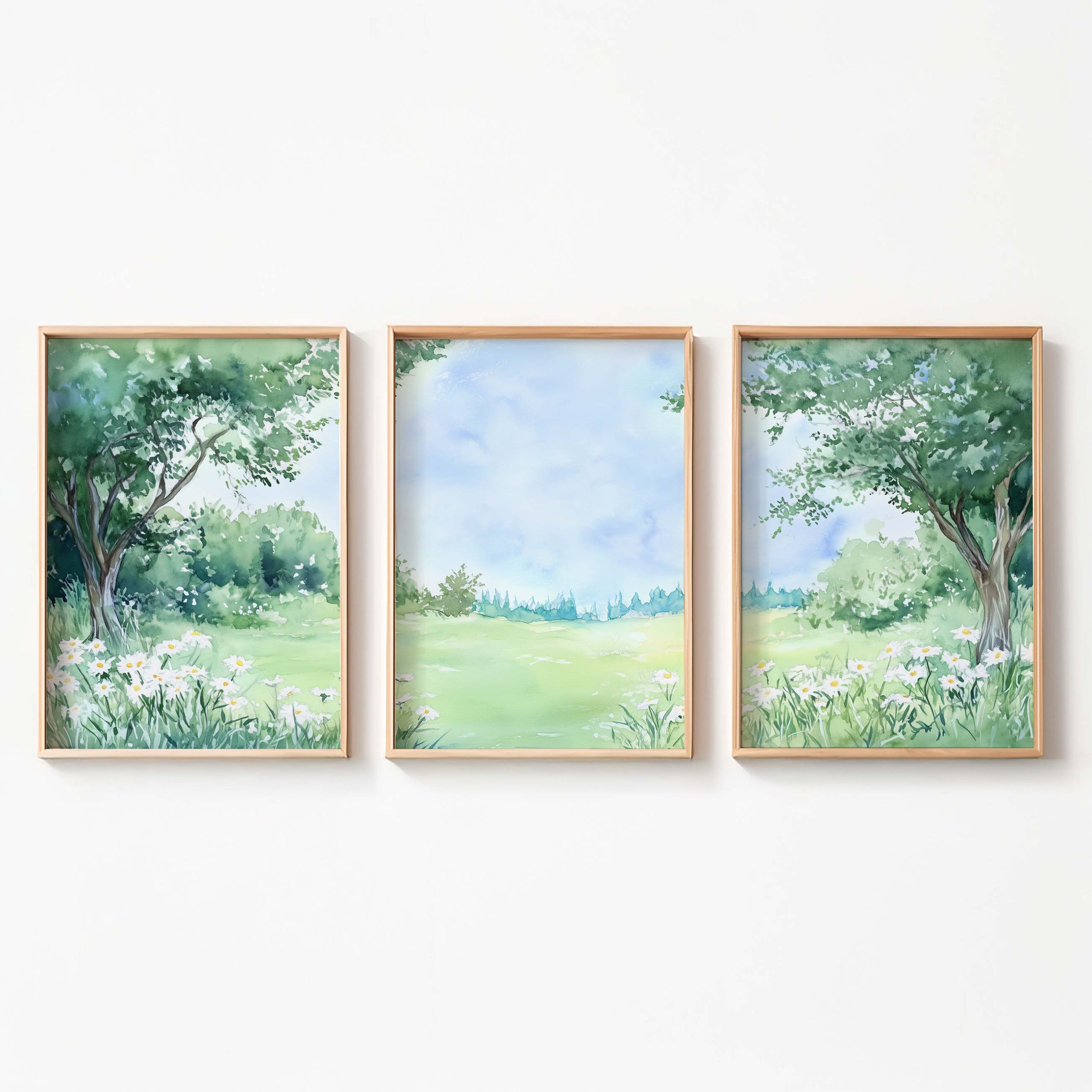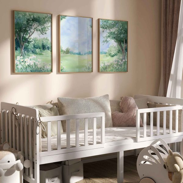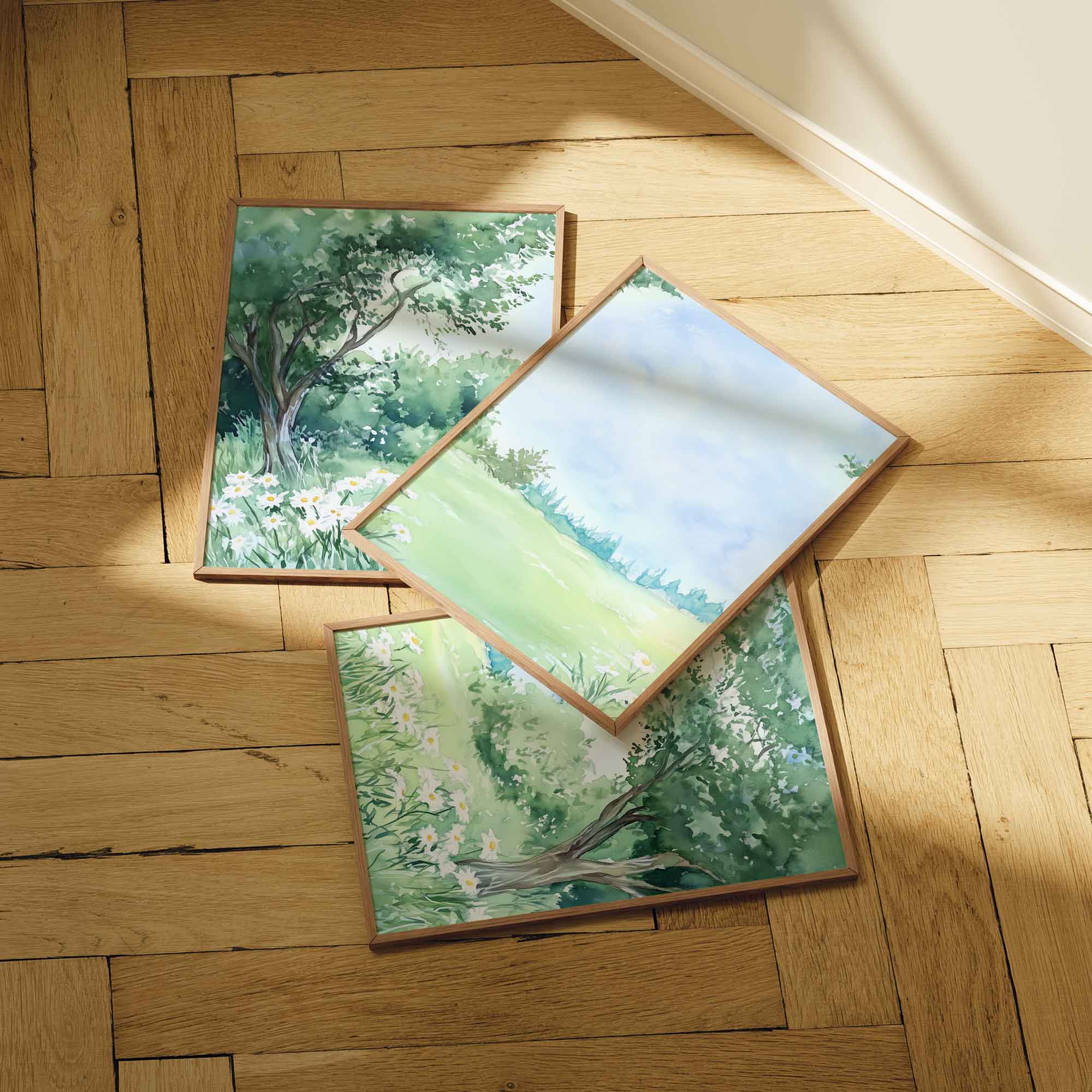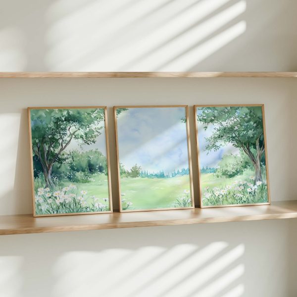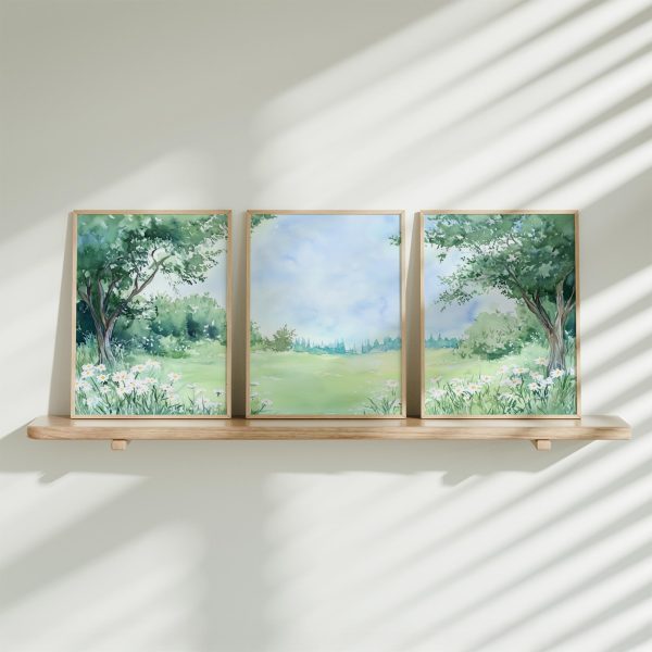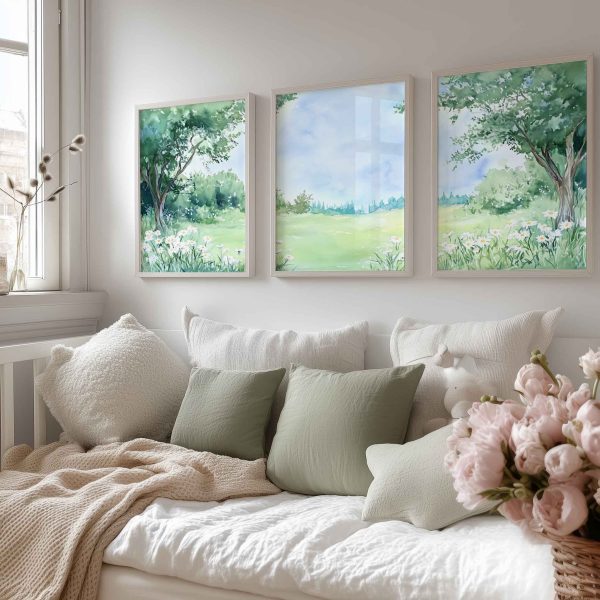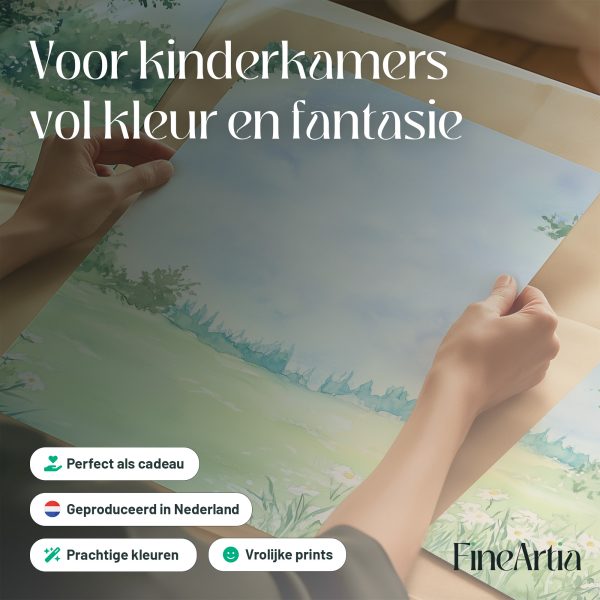 Terug naar collectie Posters Zachtgroene Weide met Witte Bloemen – Dromerig Landschap