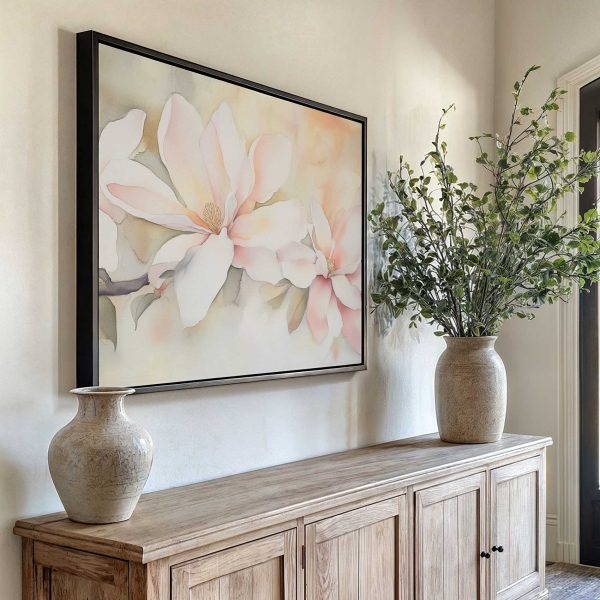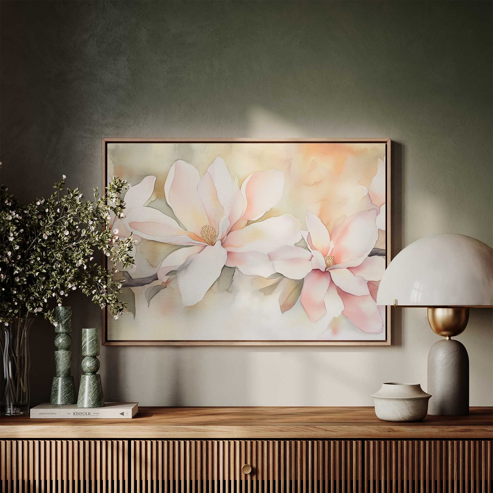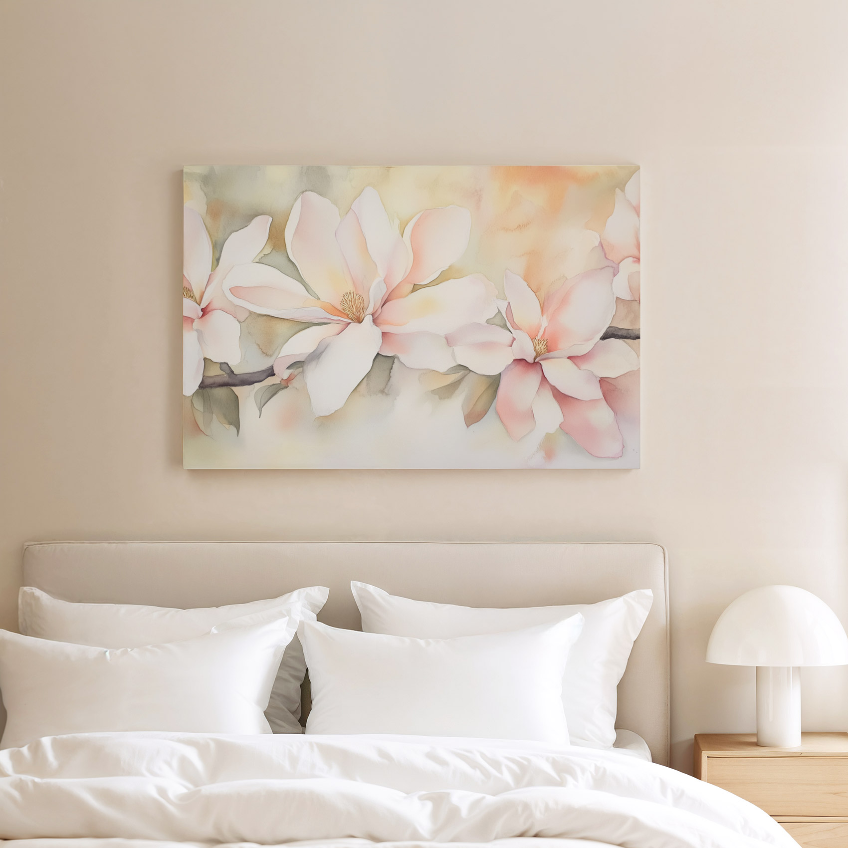 Terug naar collectie Canvas Bloemen Zachtroze bloementak aquarel
