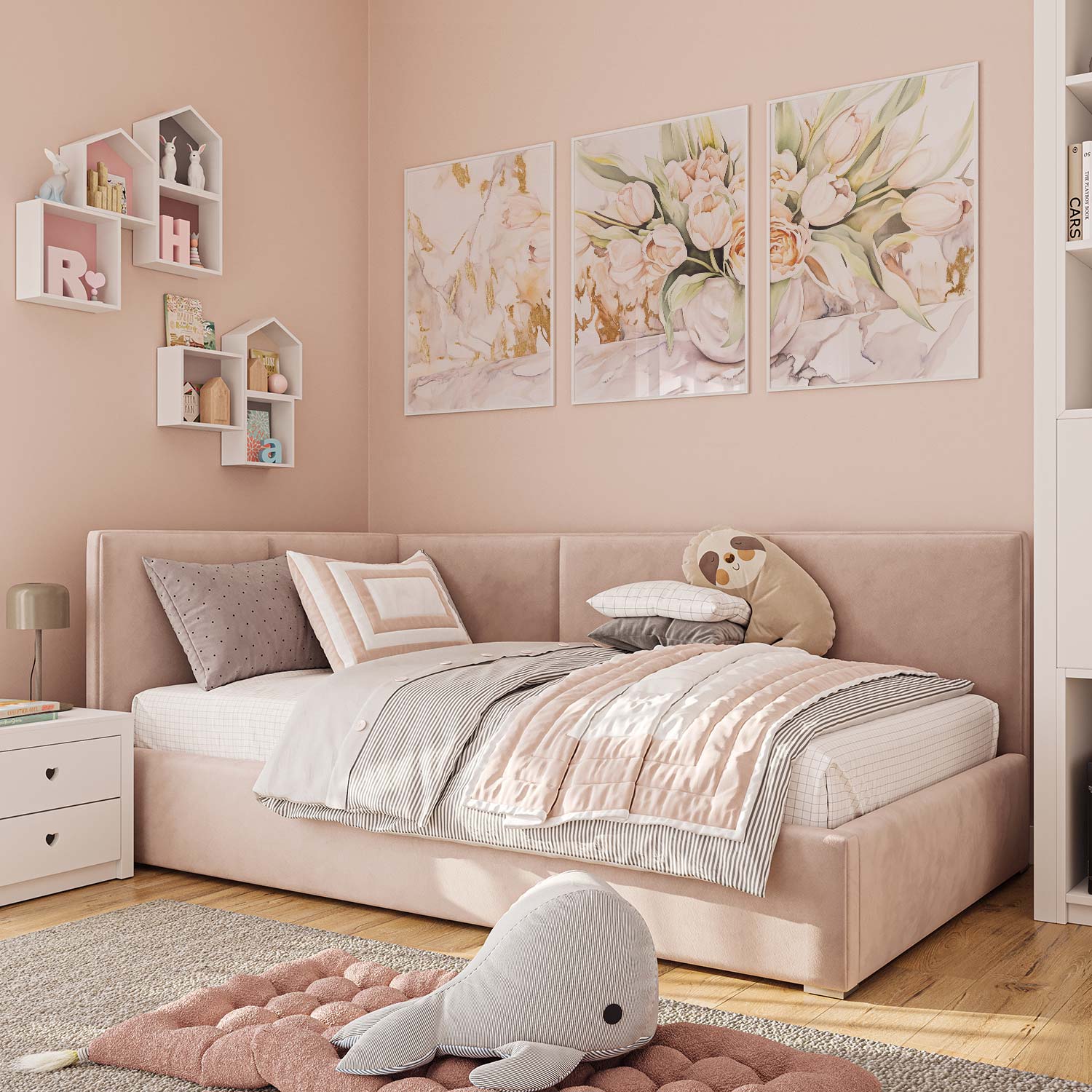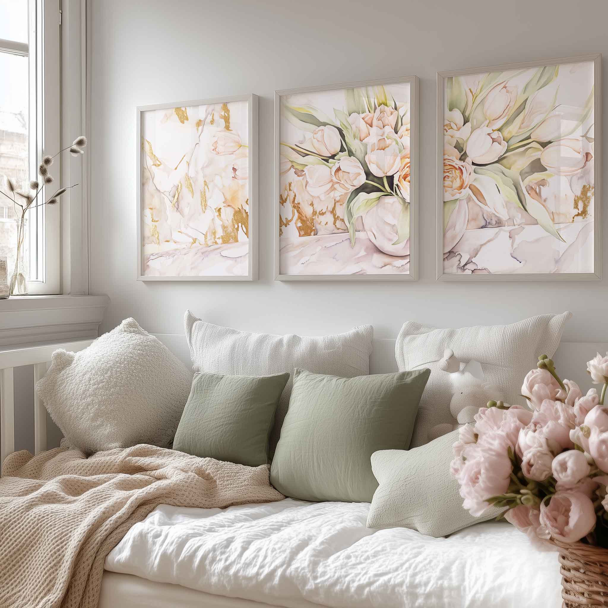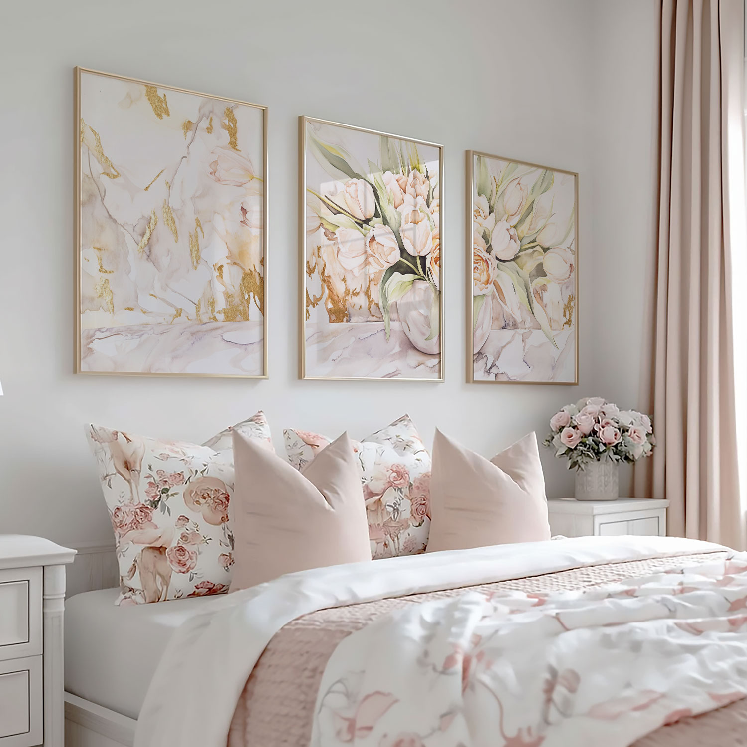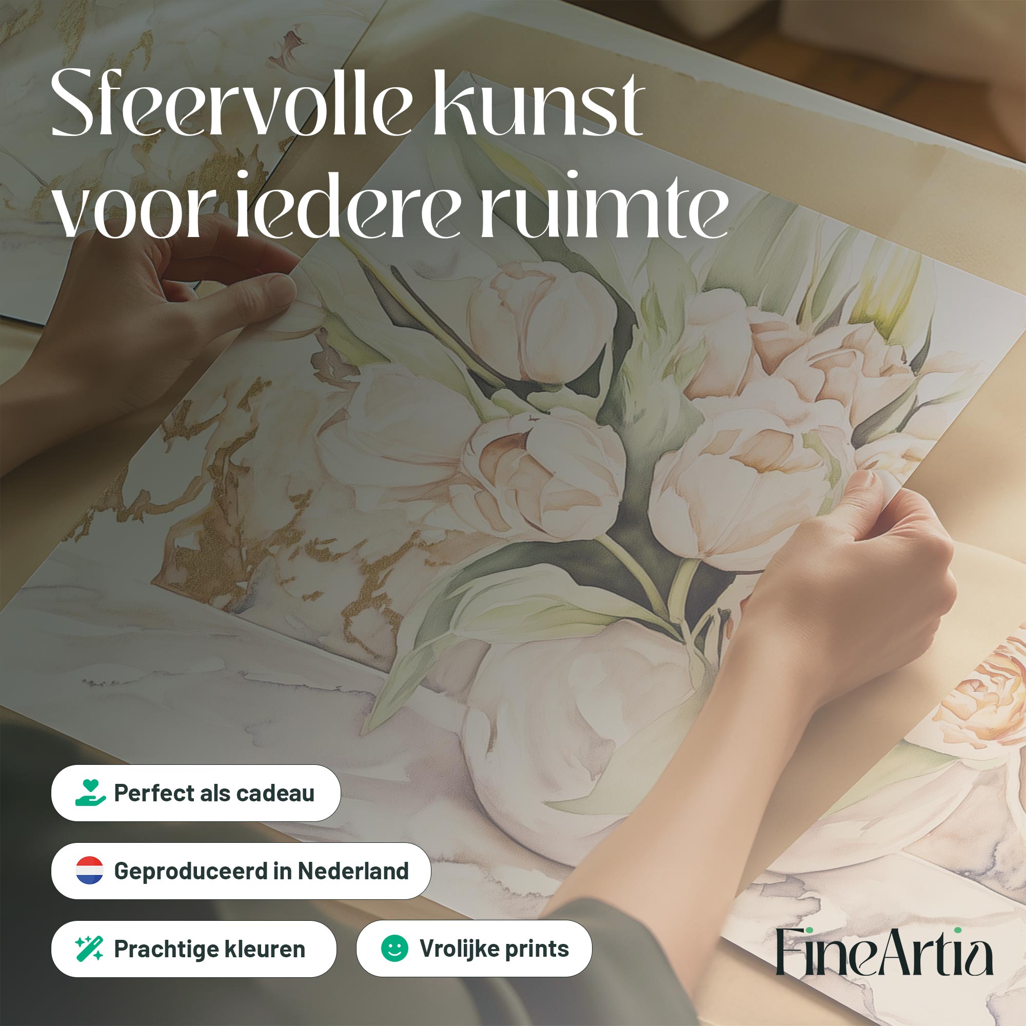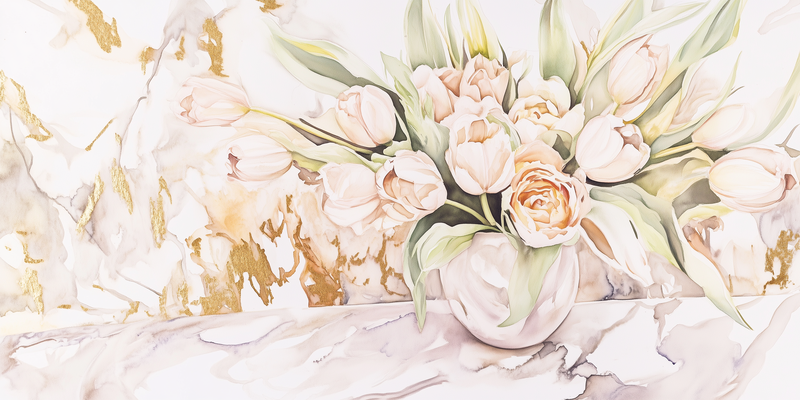 Zachtroze bloemenvaas in dromerige waterverfstijl