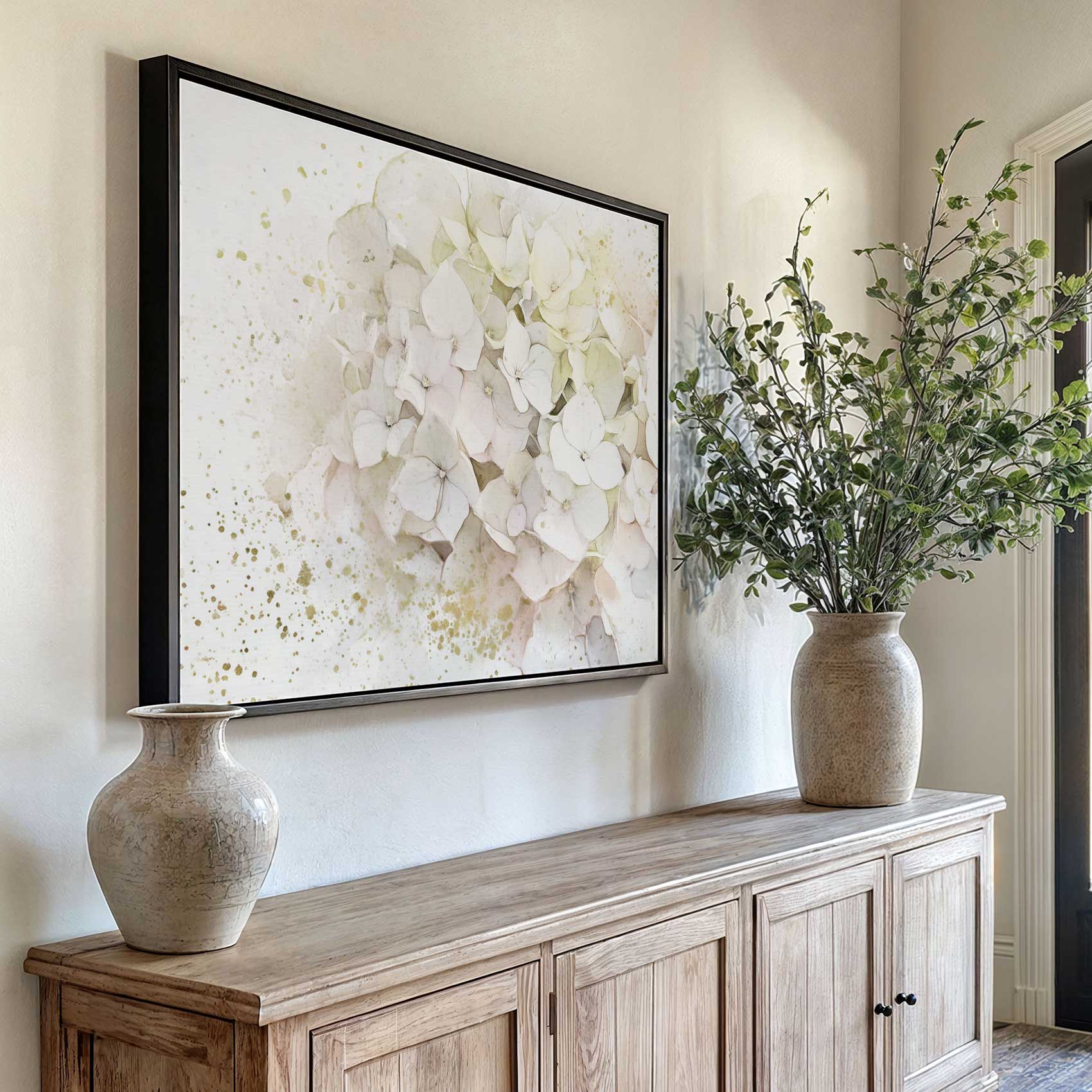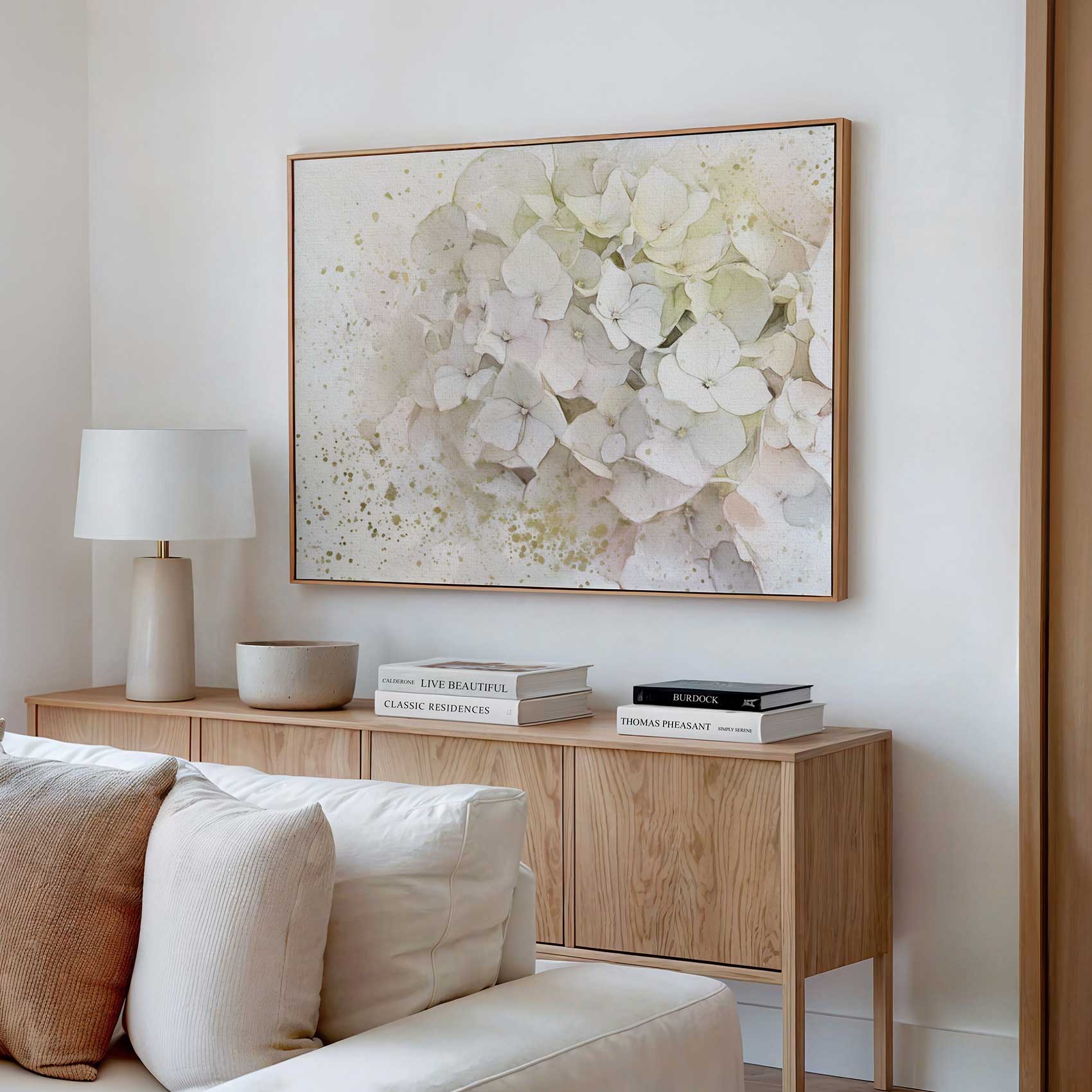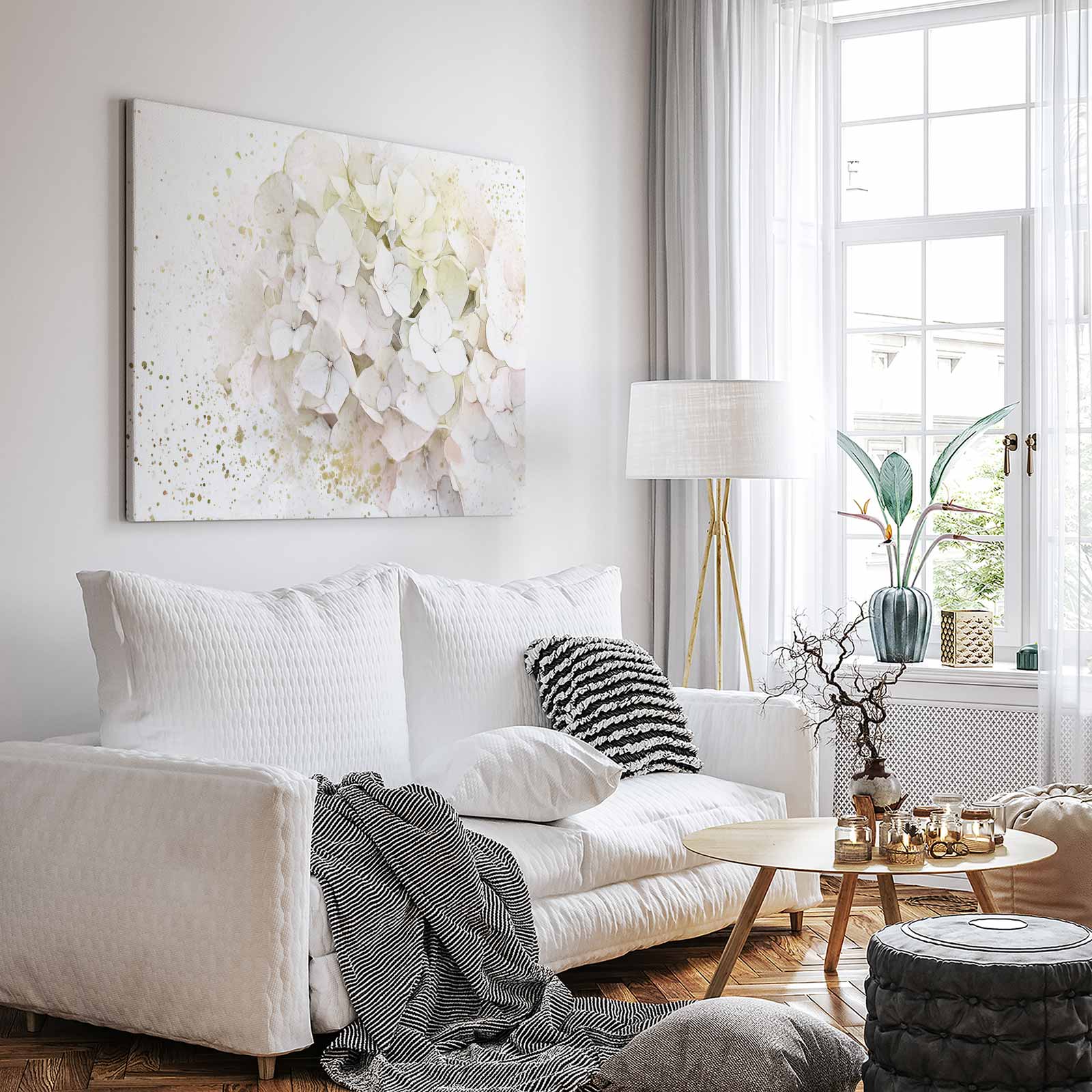 Terug naar collectie Canvas Zachtroze hydrangea watercolor boeket