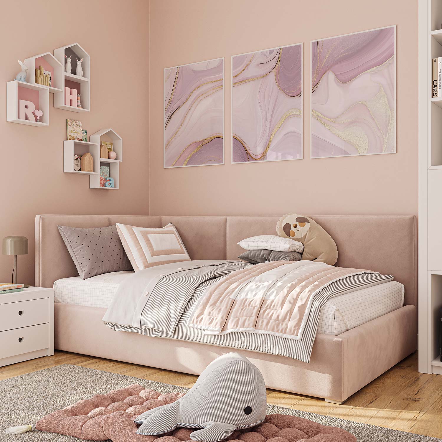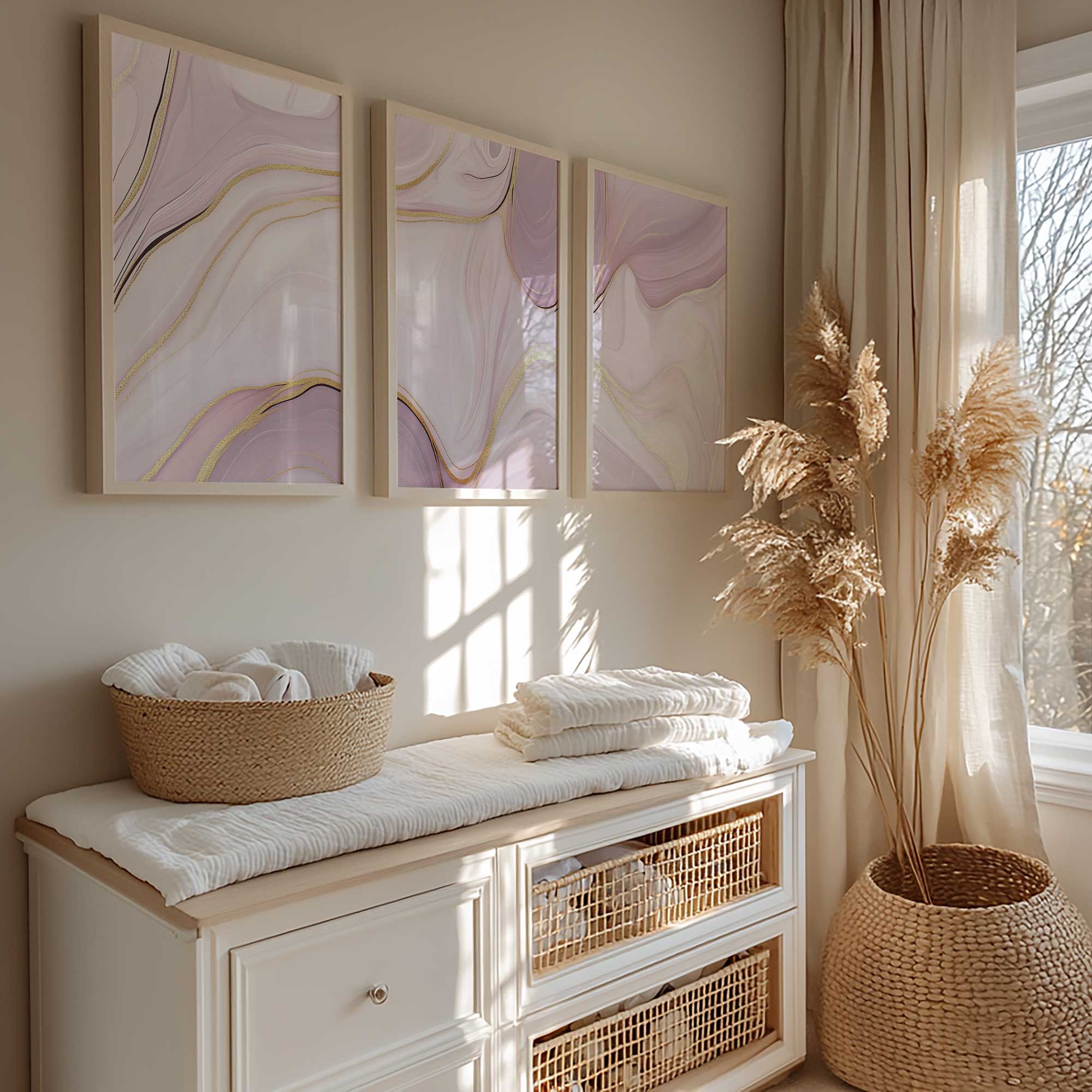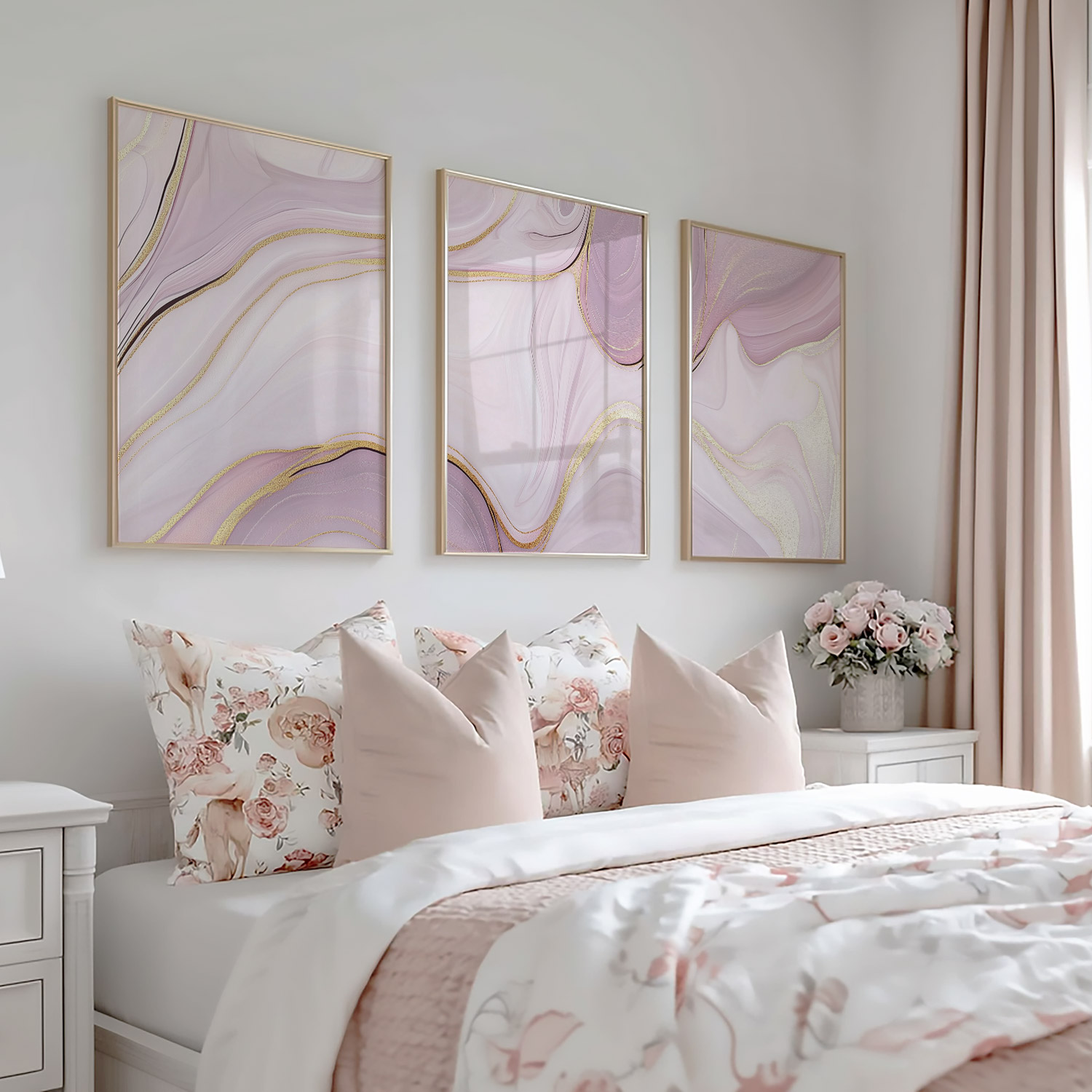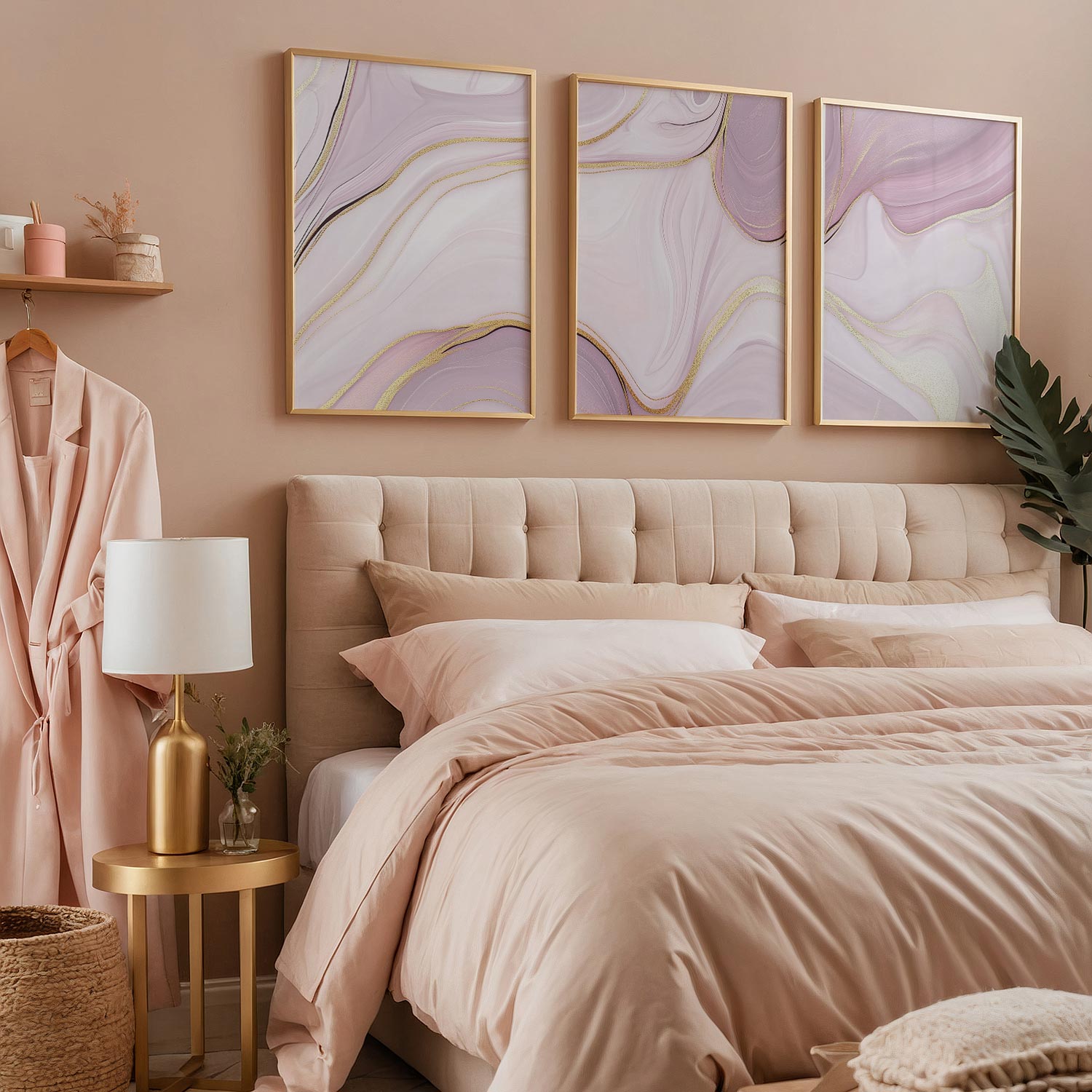 Zachtroze Marmeren Elegantie met Gouden Accenten