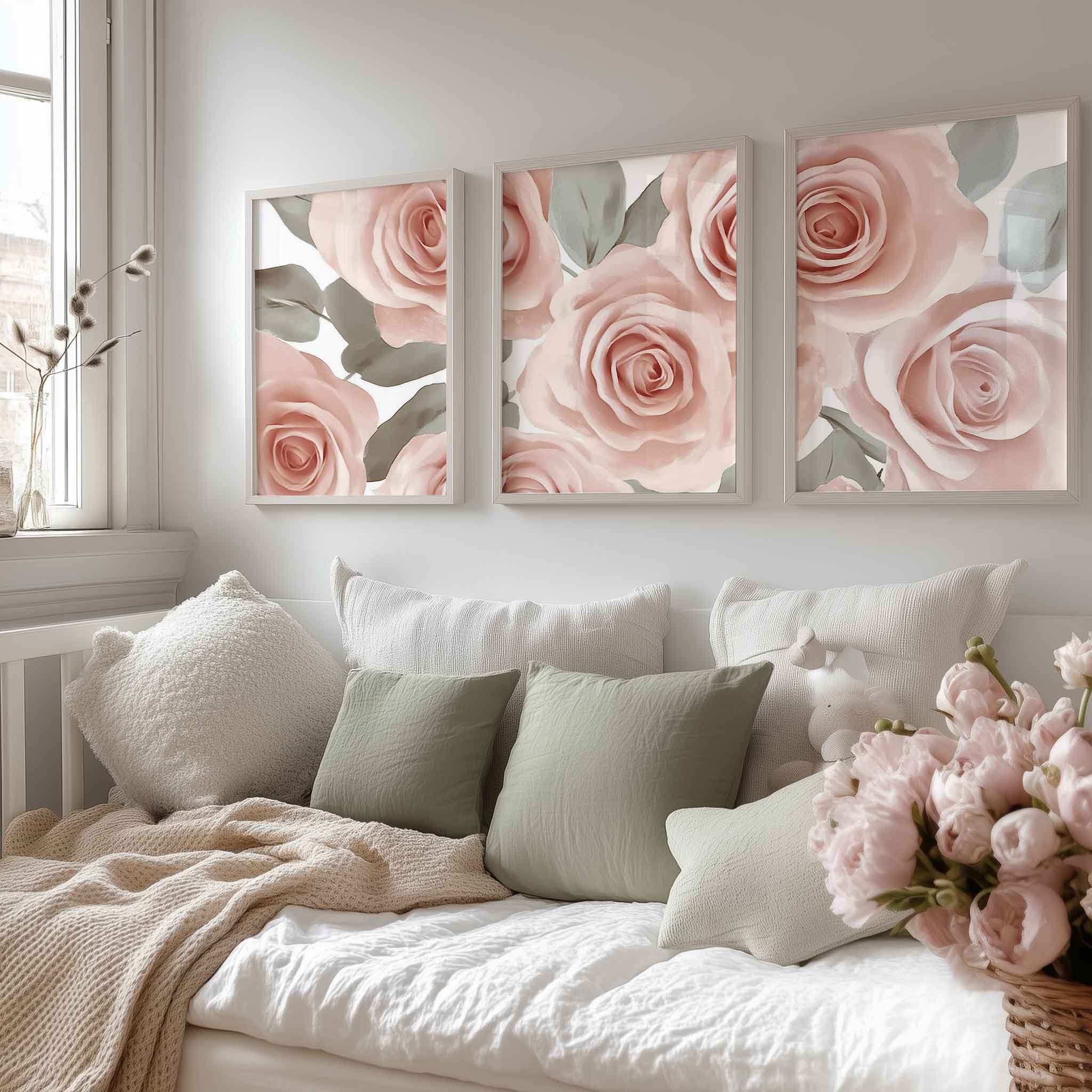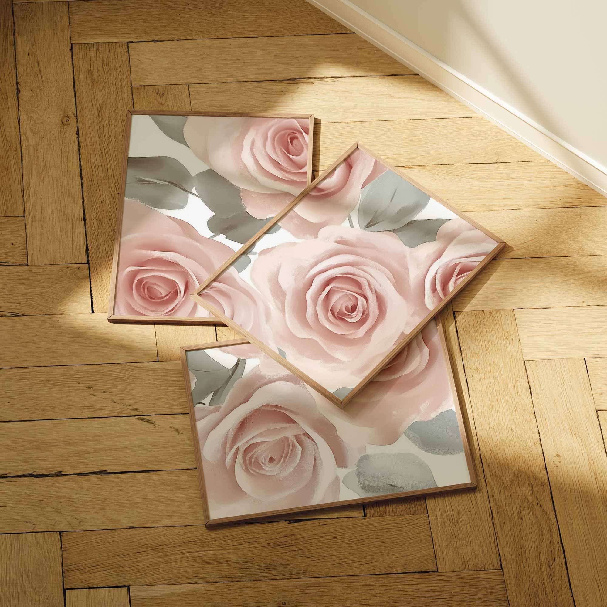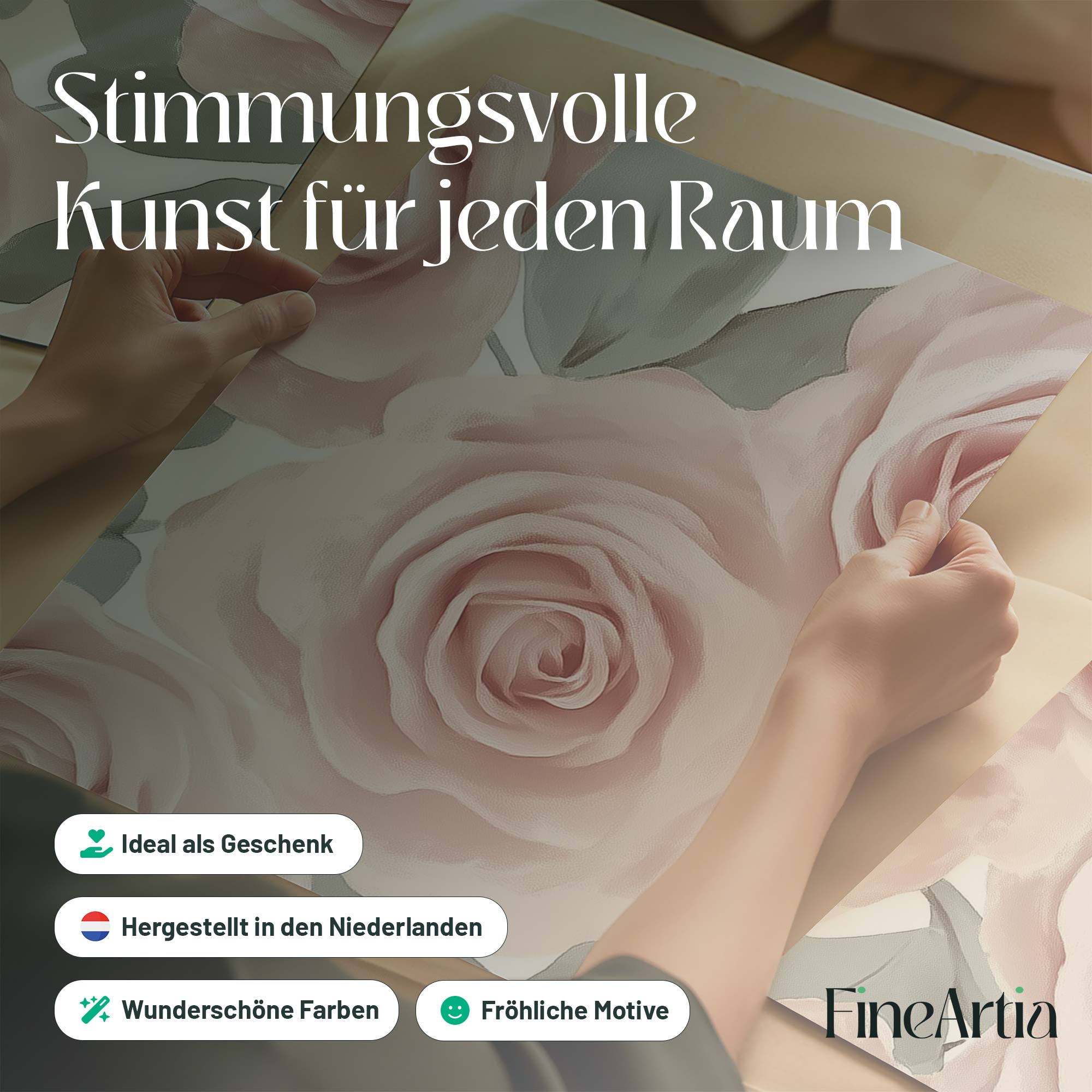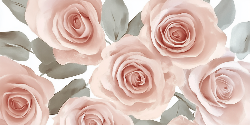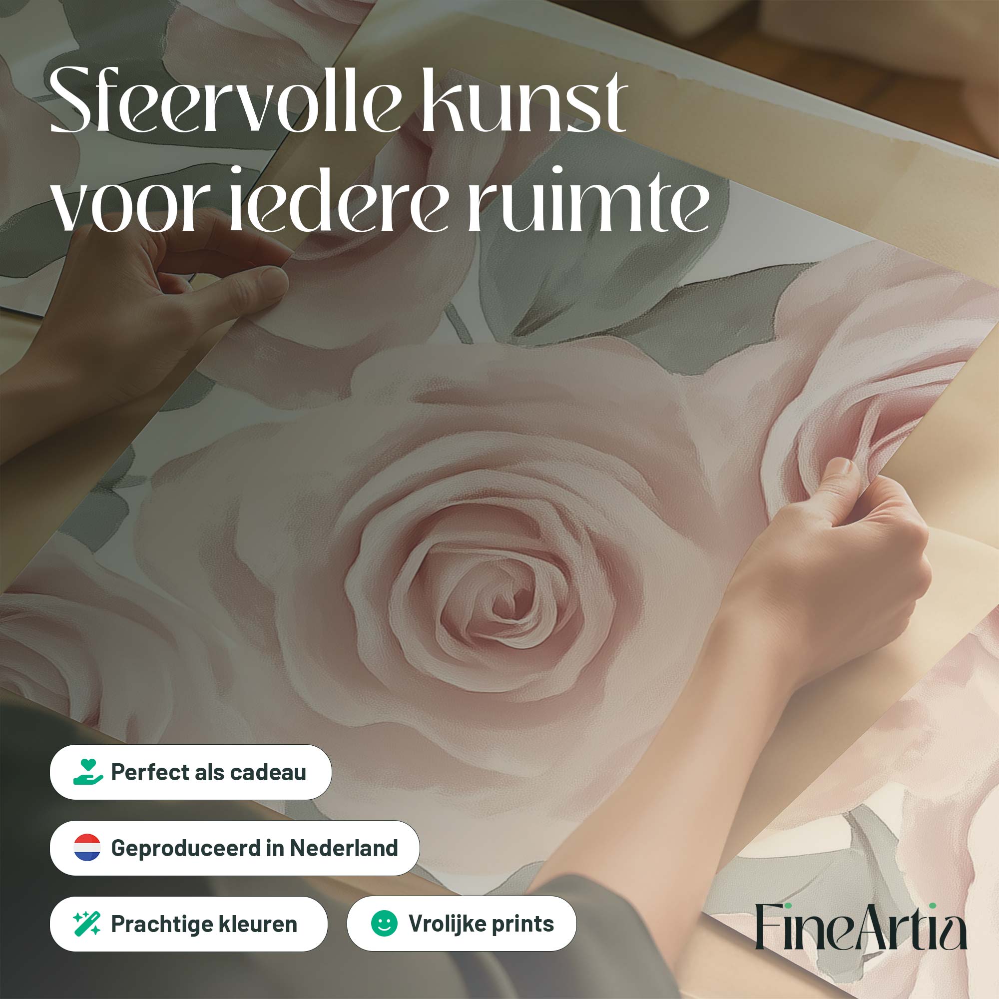 Zachtroze Rozenboeket met Fris Groen – Romantische Wanddecoratie