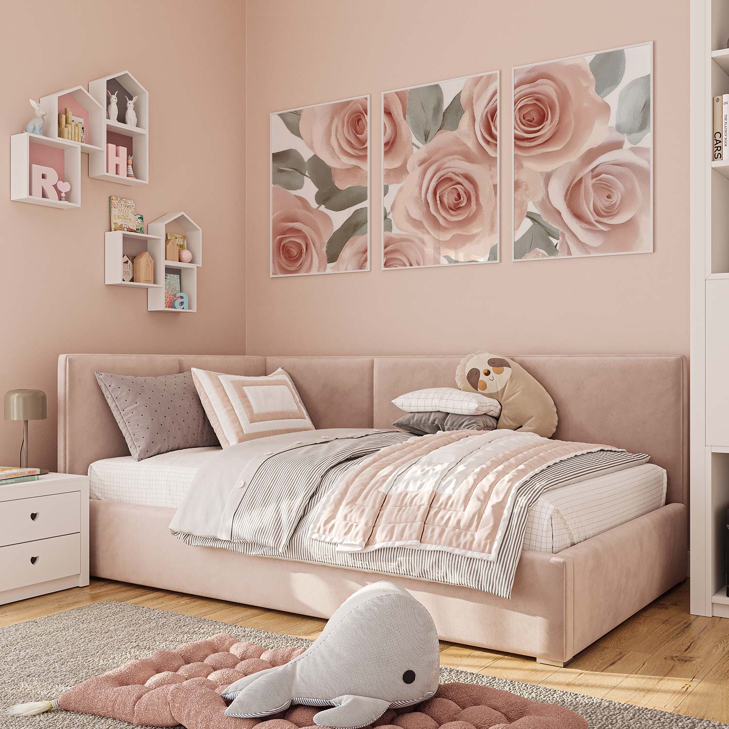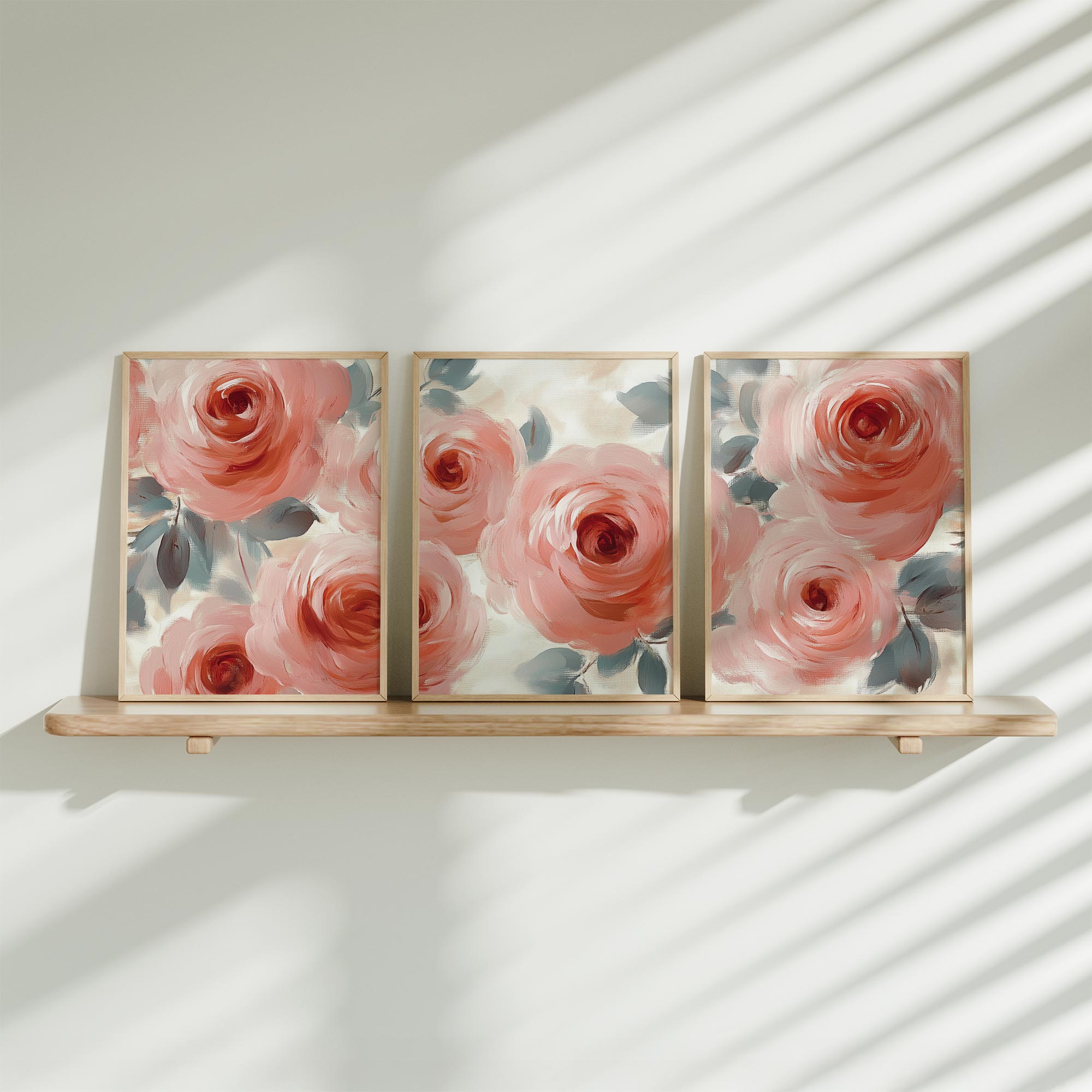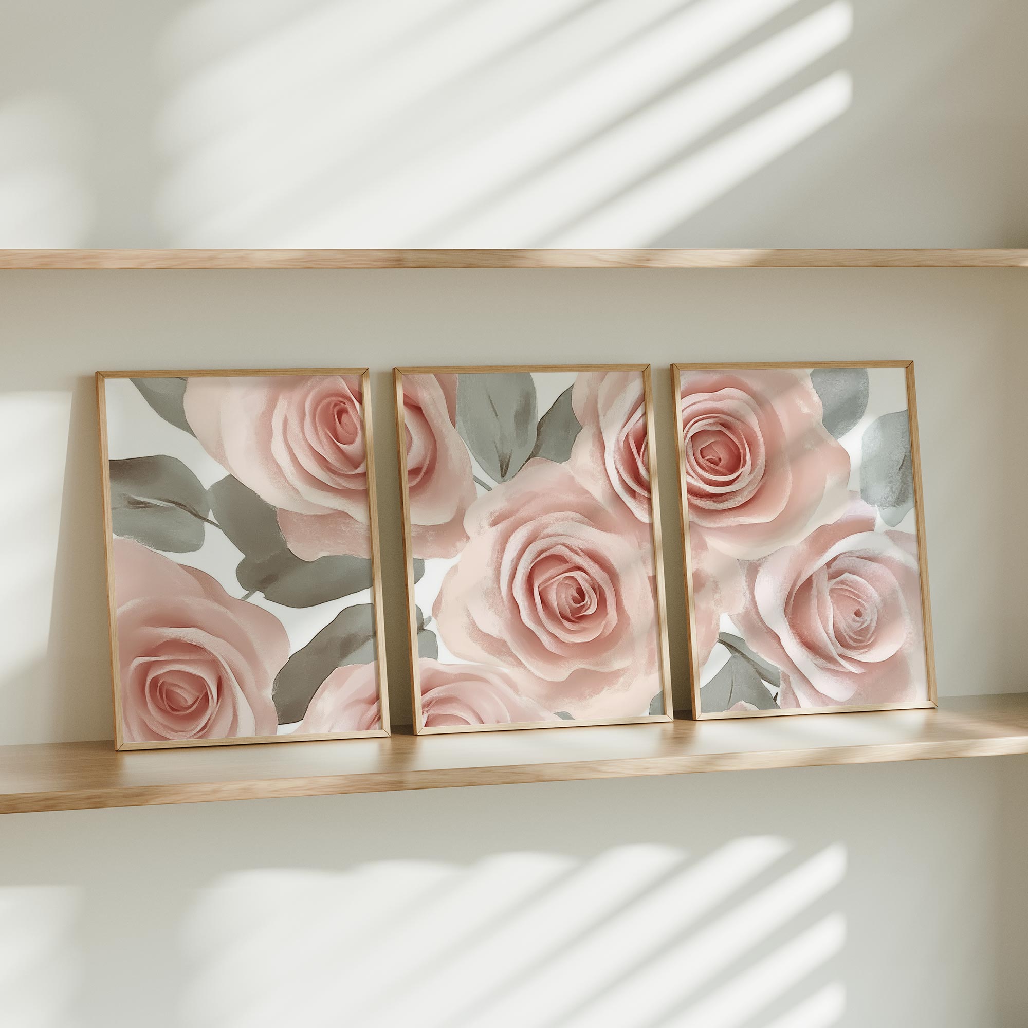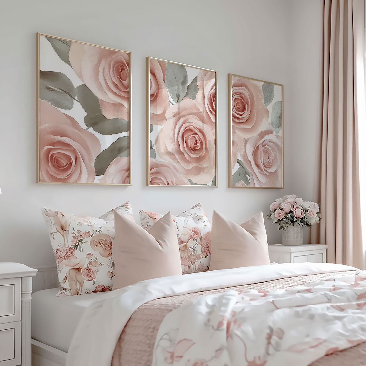 Zachtroze Rozenboeket met Fris Groen – Romantische Wanddecoratie