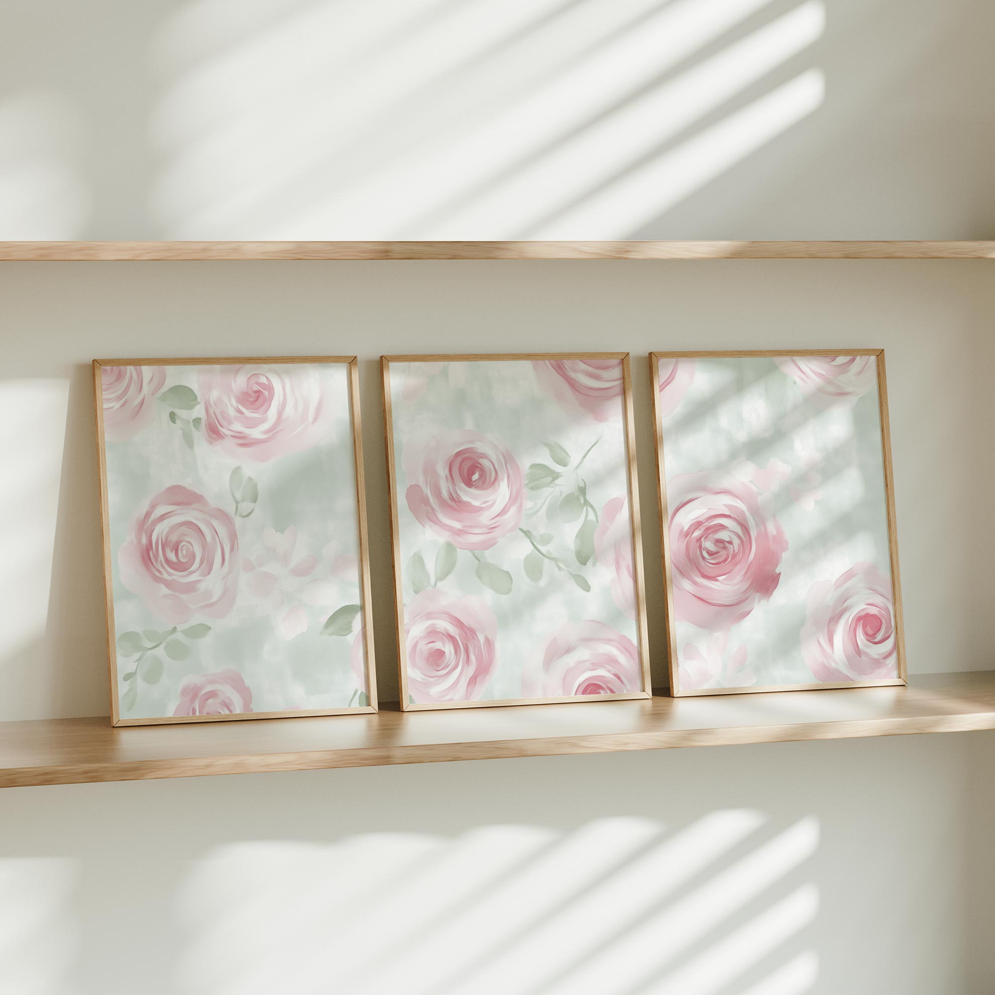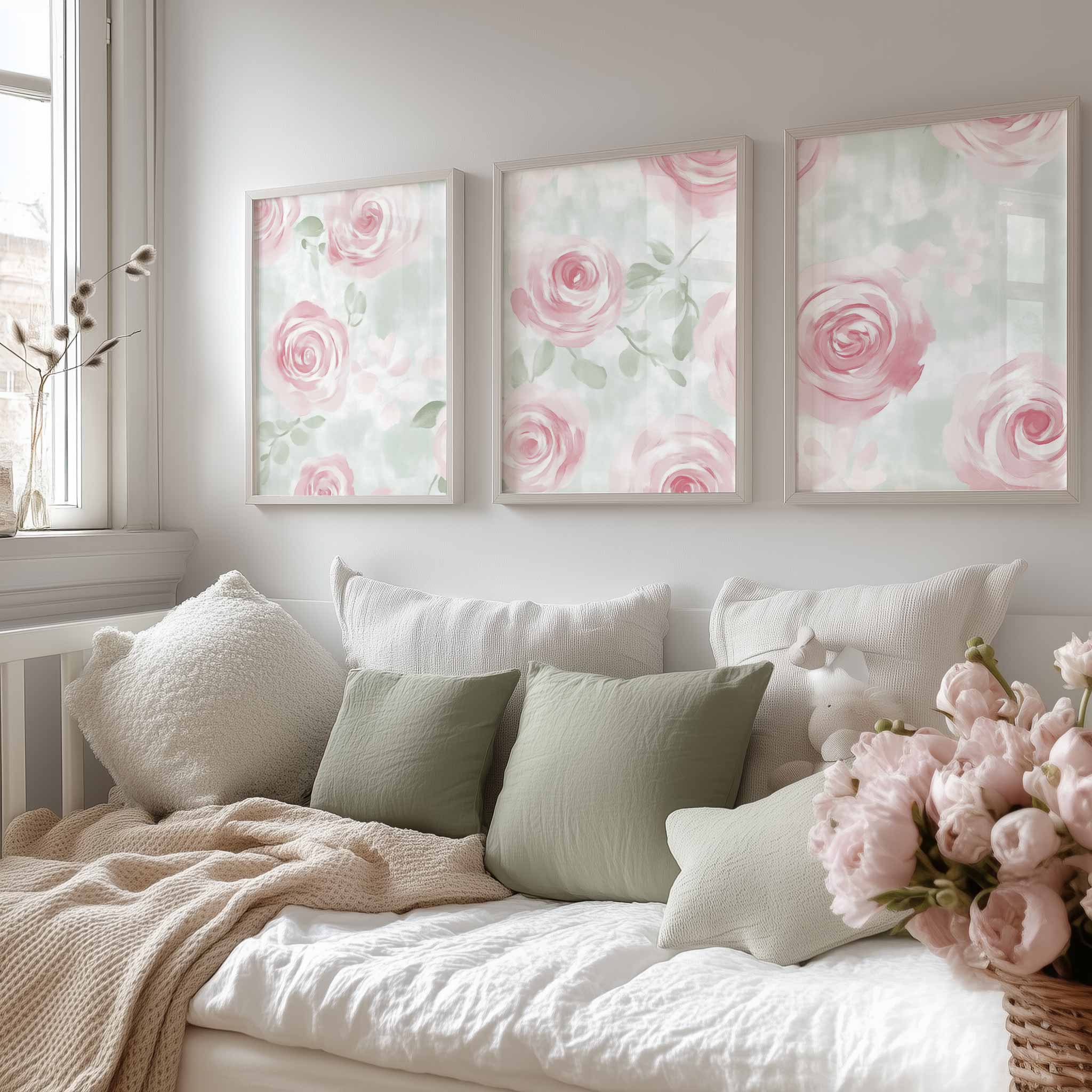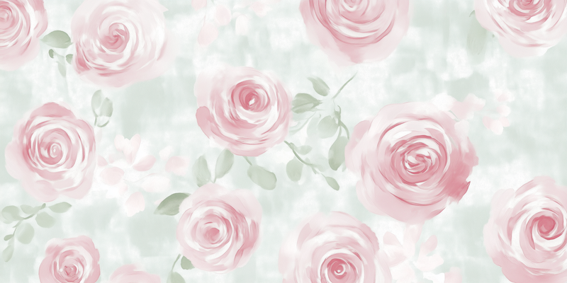 Zachtroze Rozenpatroon op Lichtgroene Achtergrond