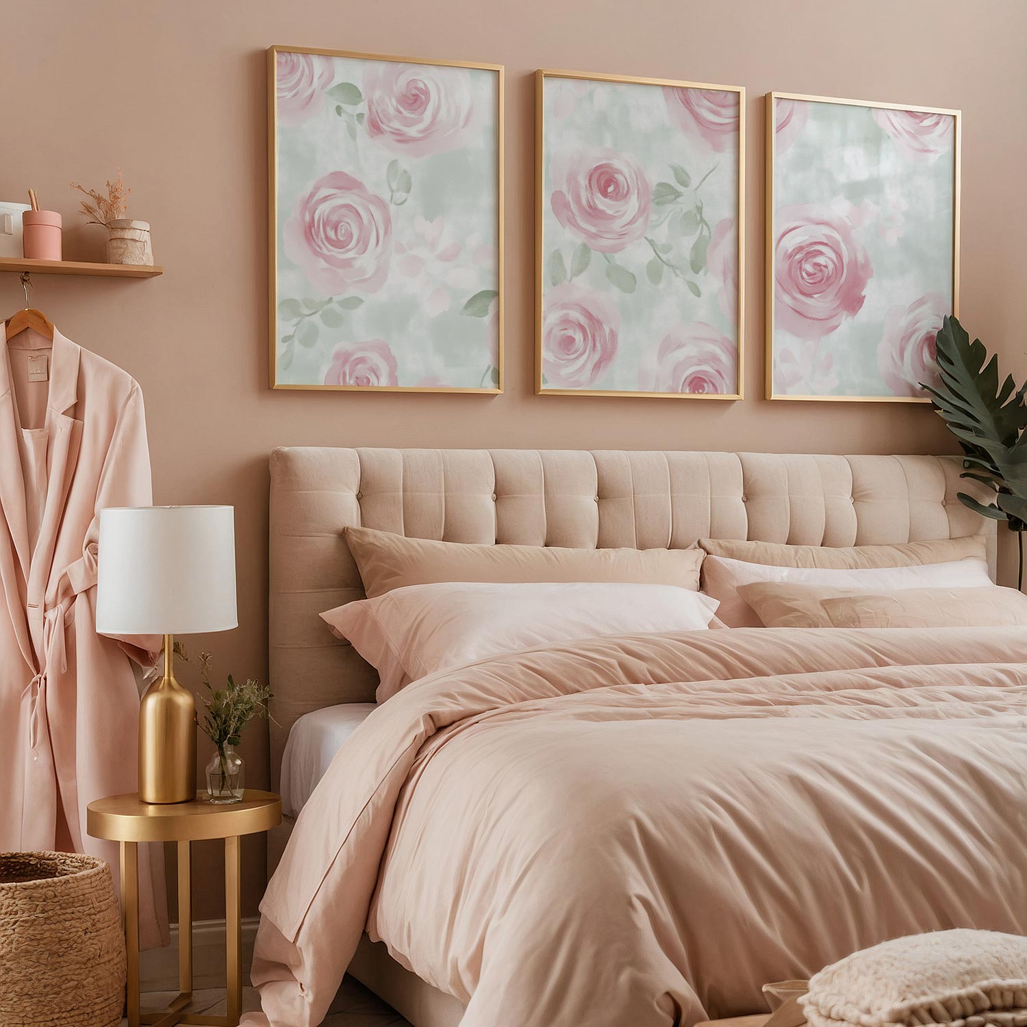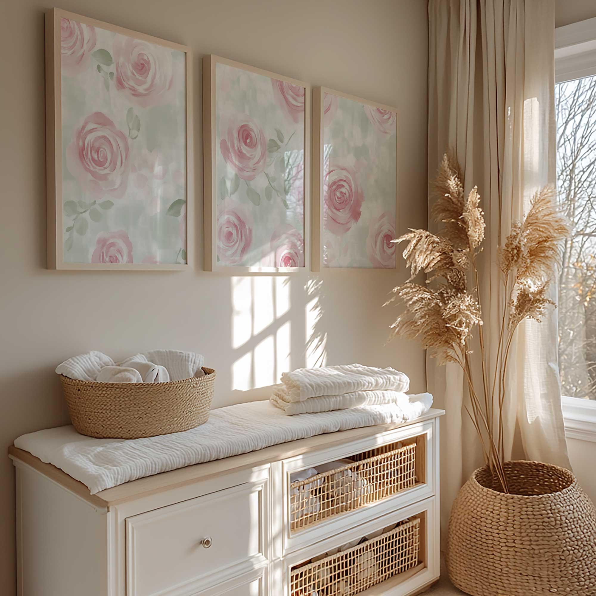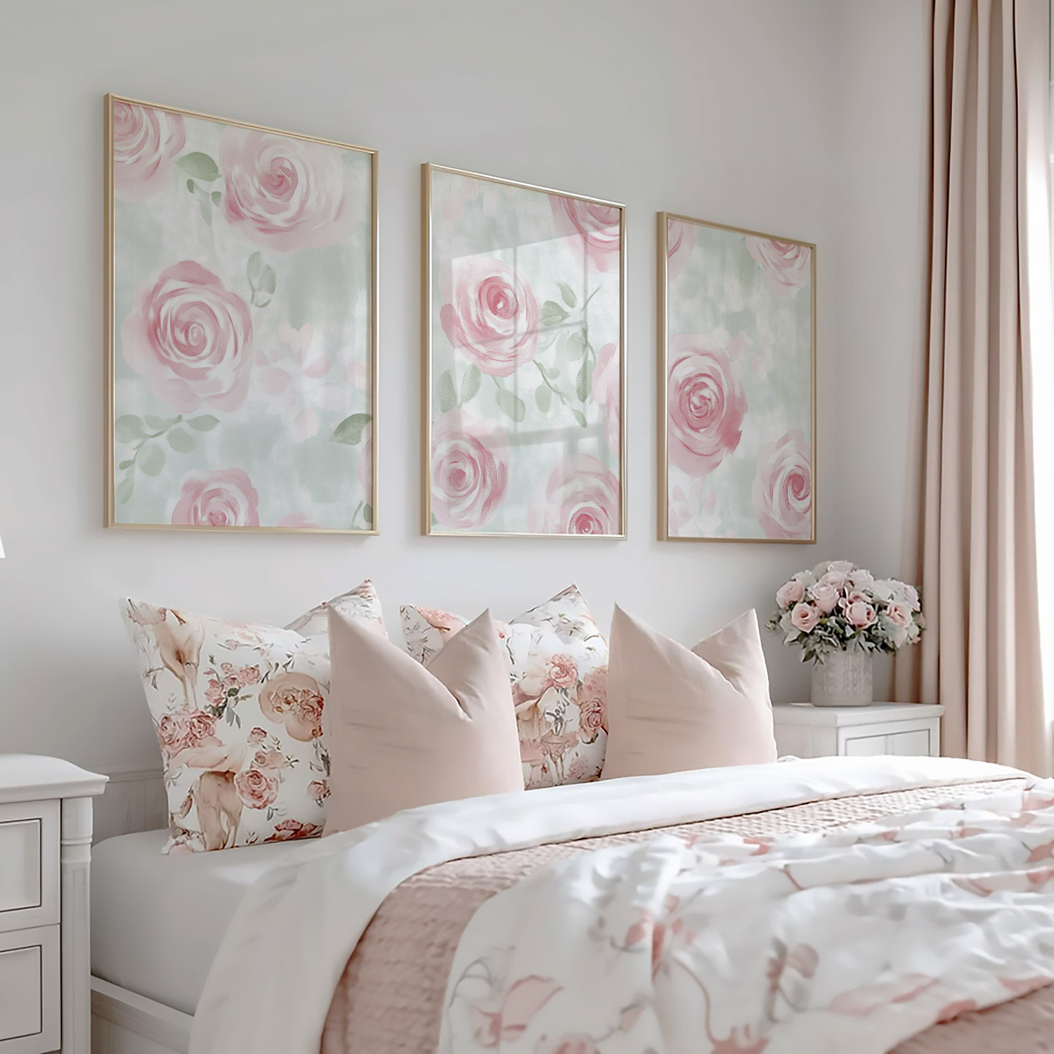 Zachtroze Rozenpatroon op Lichtgroene Achtergrond