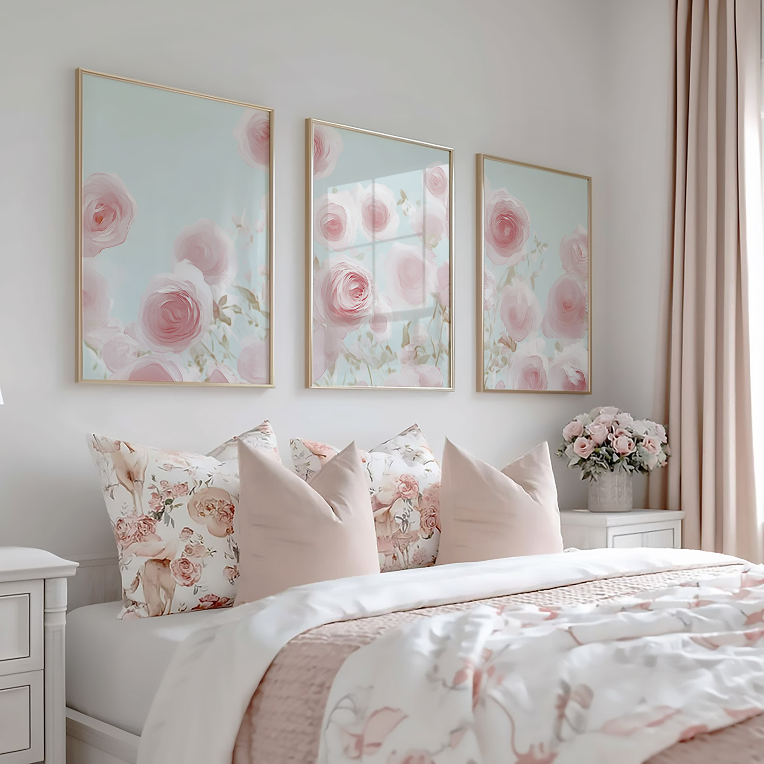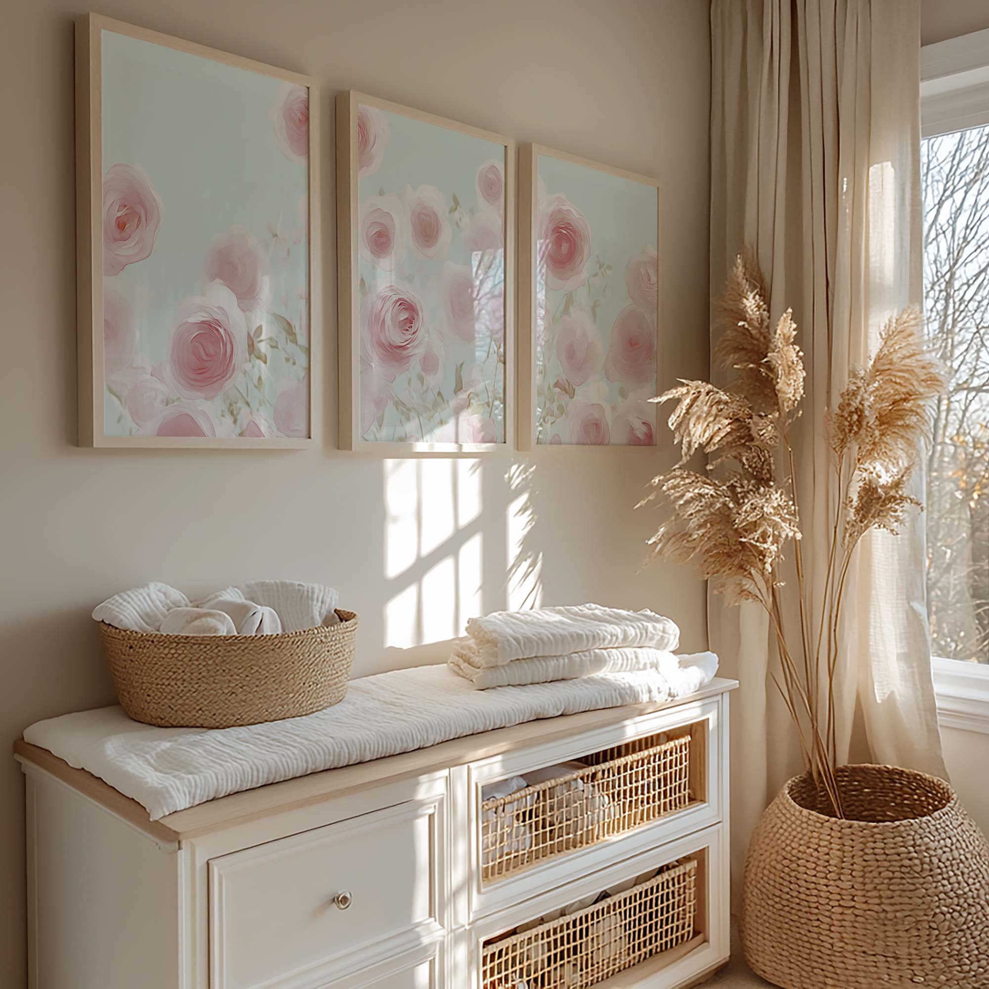 Zachtroze Rozenveld – Serene Stijlvolle Wanddecoratie