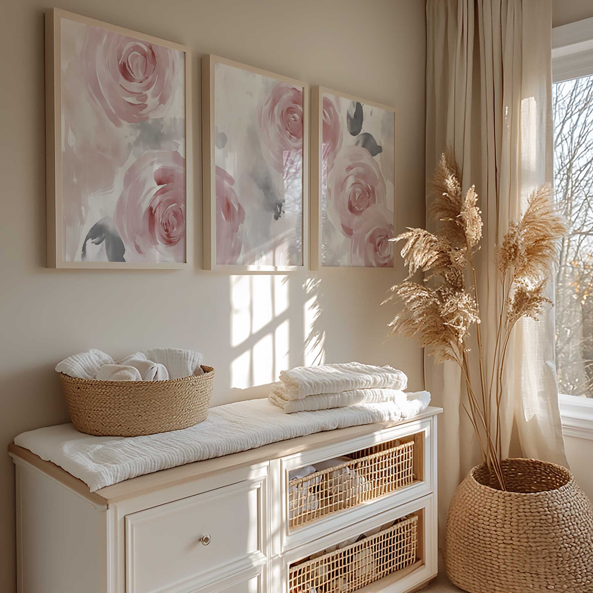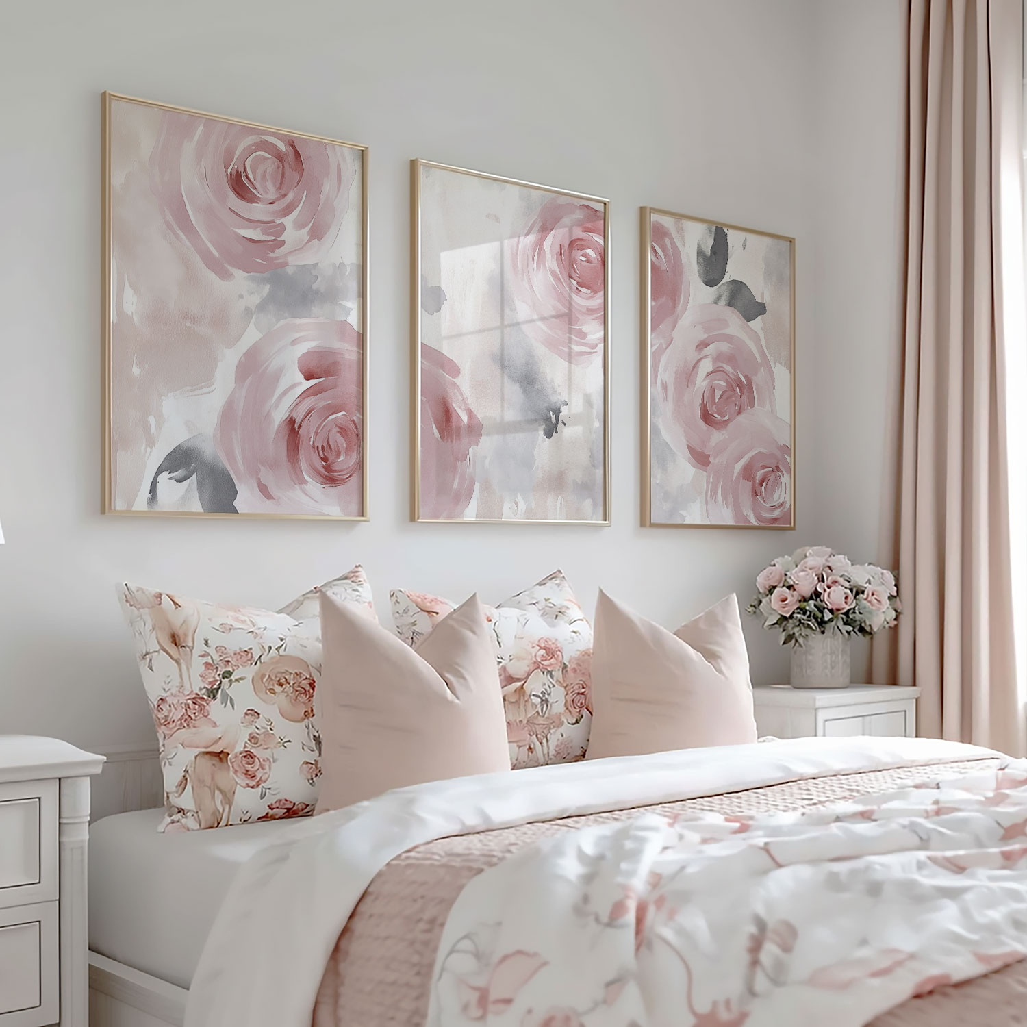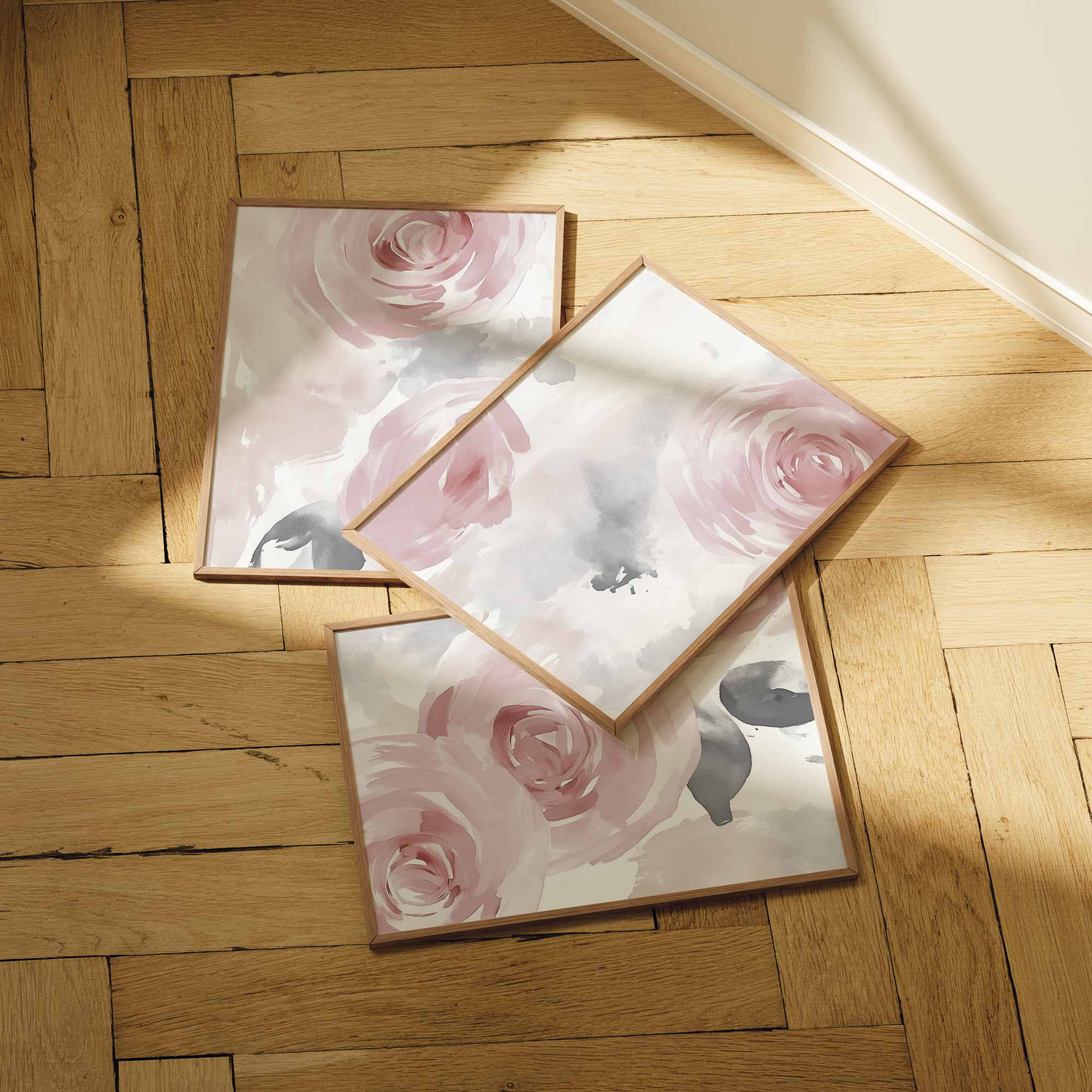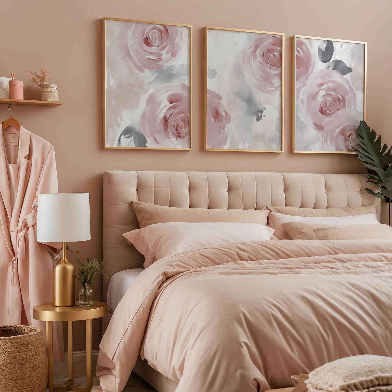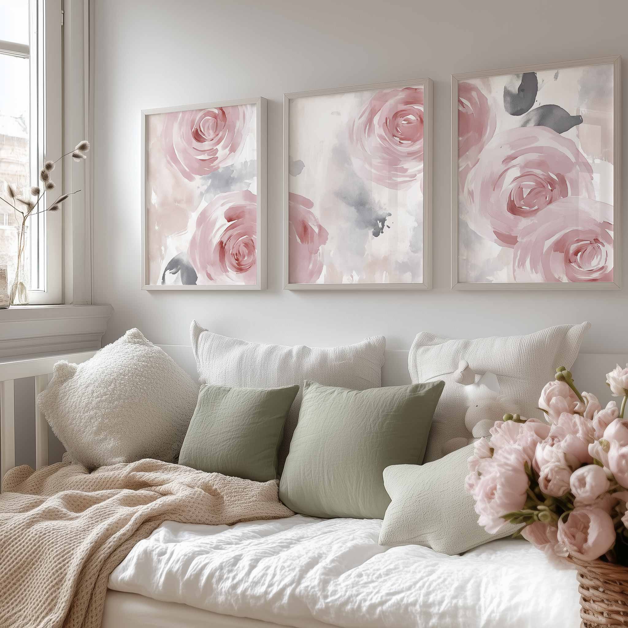 Zachtroze Watercolor Rozen – Stijlvolle & Serene Wanddecoratie