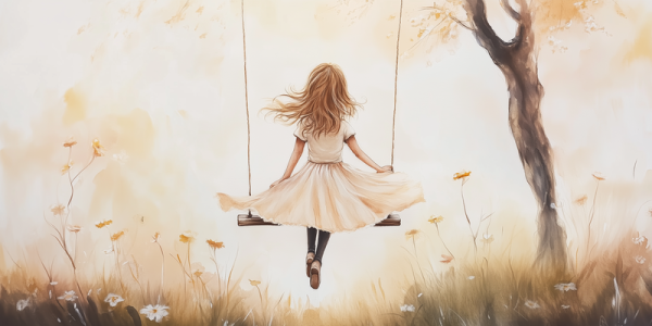 Terug naar collectie Posters Zachtzwaaiend Meisje in Bloemenpracht