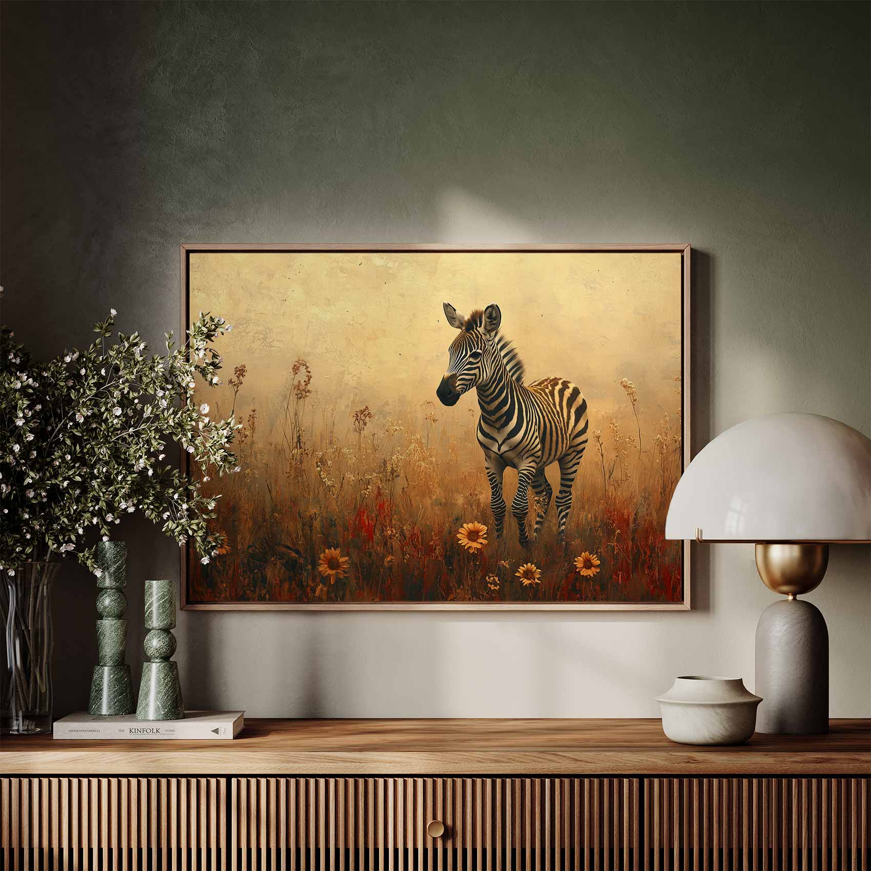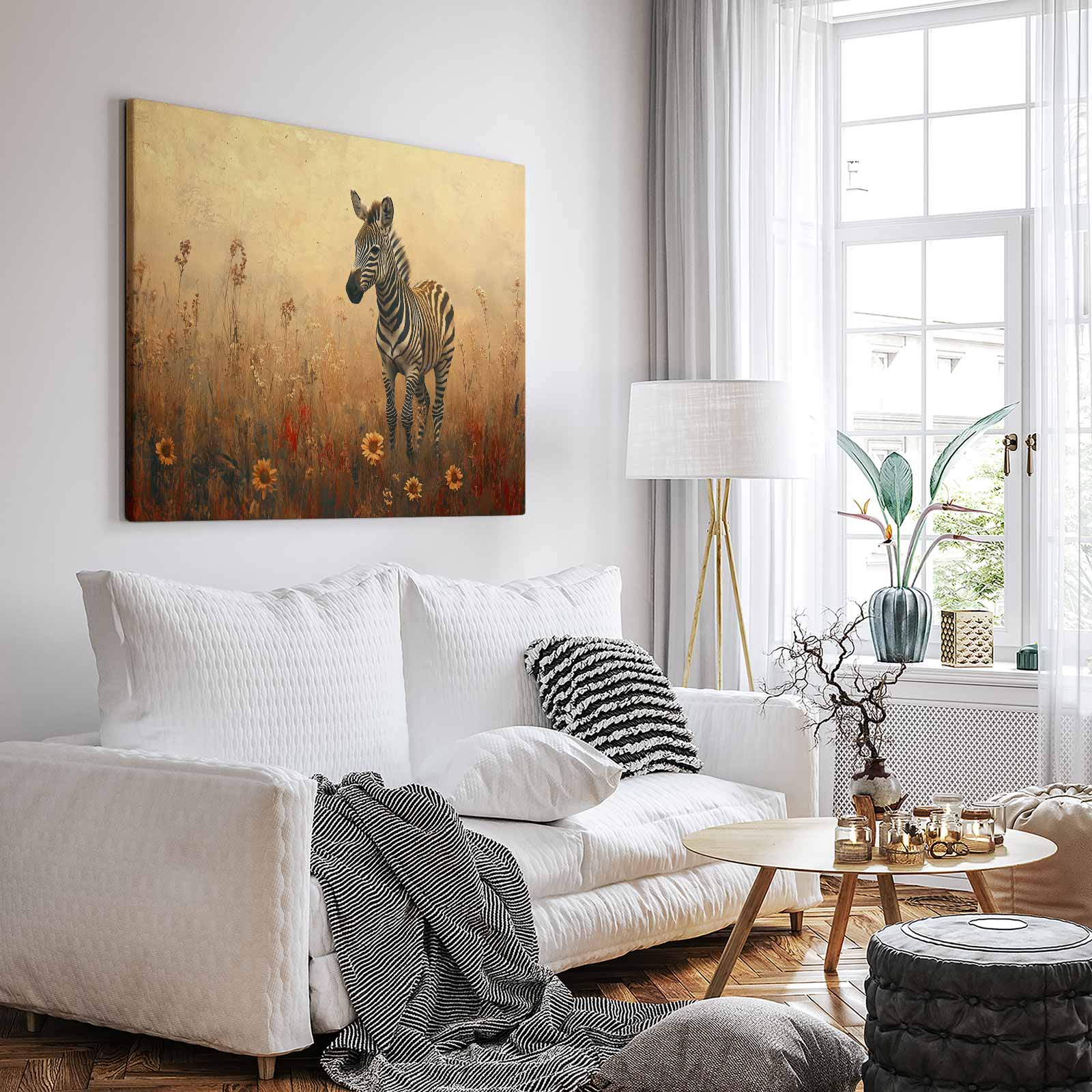 Terug naar collectie Canvas Zebra in bloemenveld