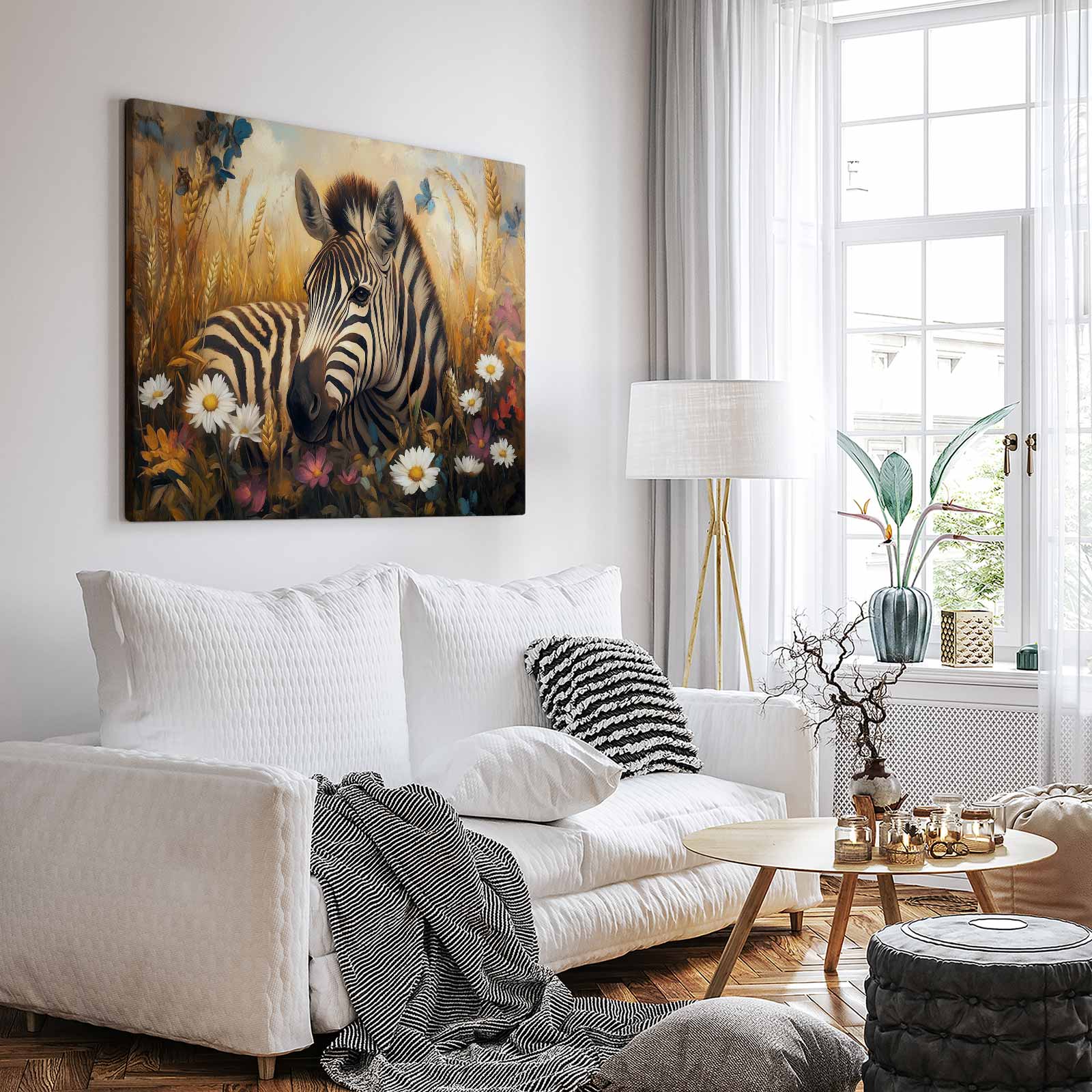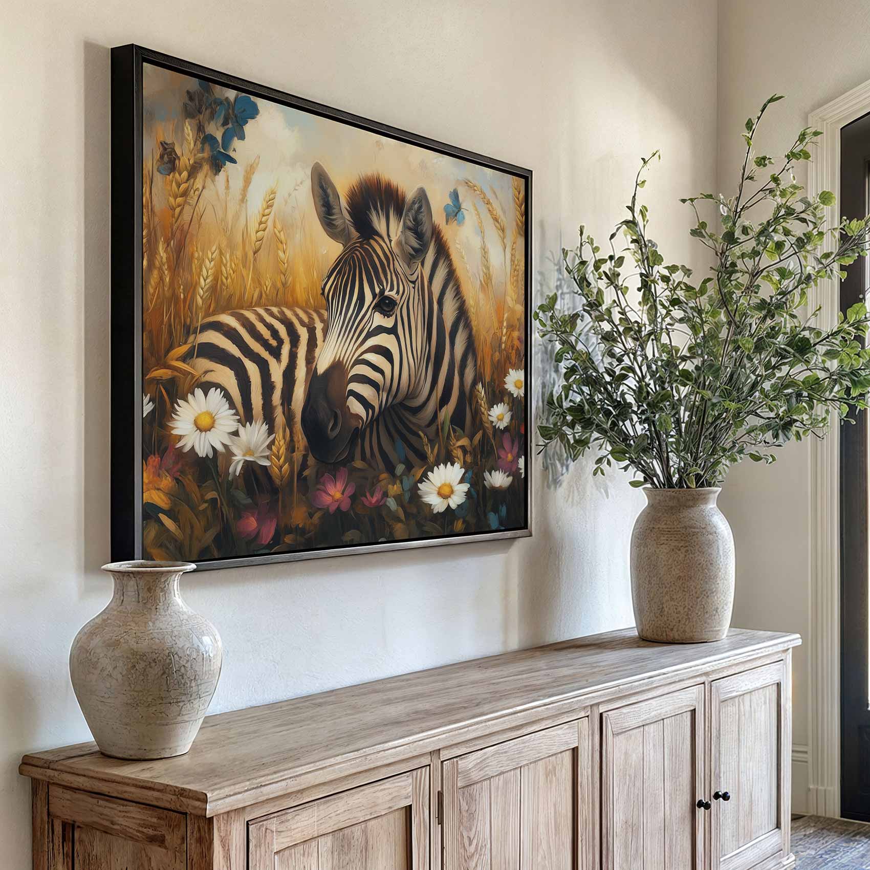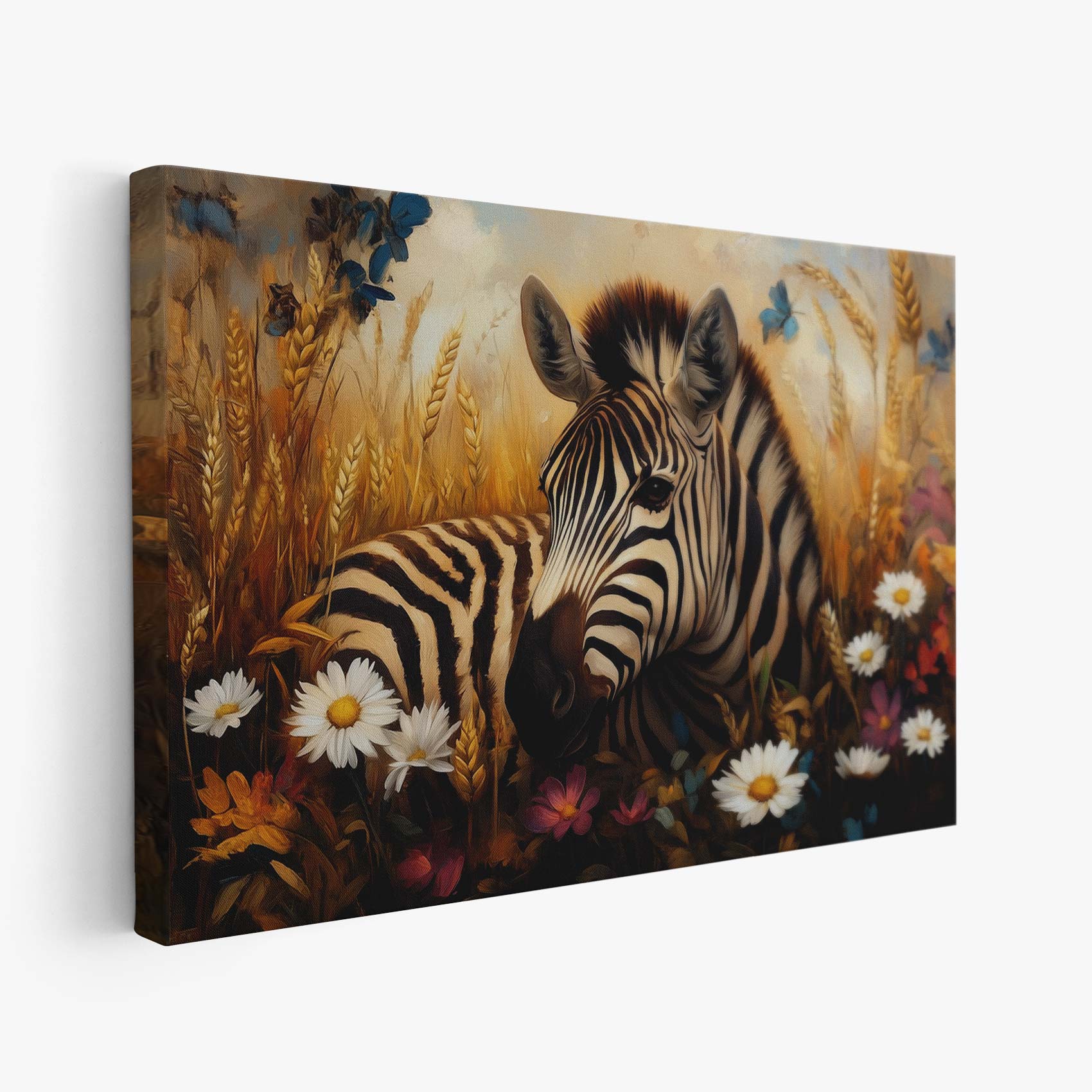 Zebra in kleurrijk bloemenveld
