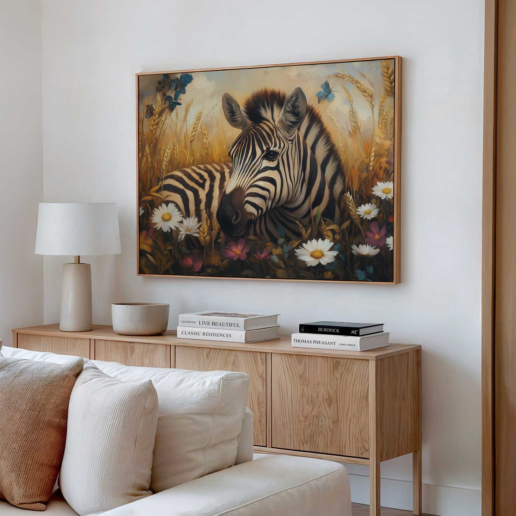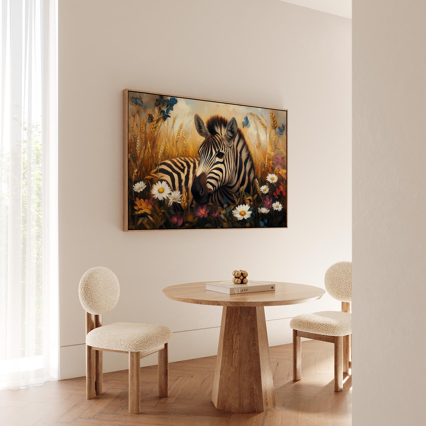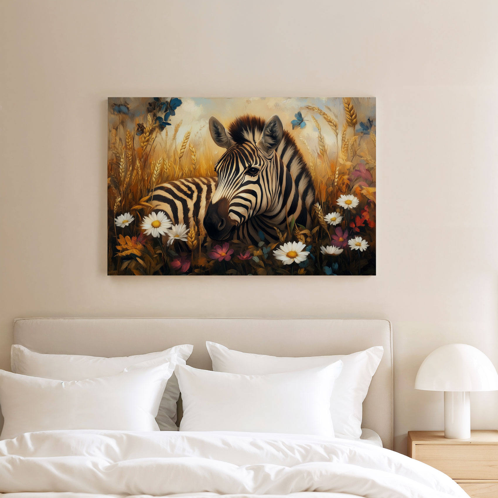 Zebra in kleurrijk bloemenveld