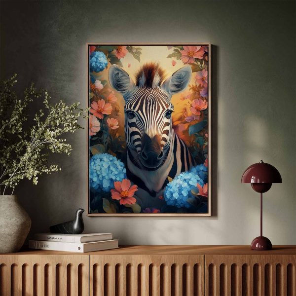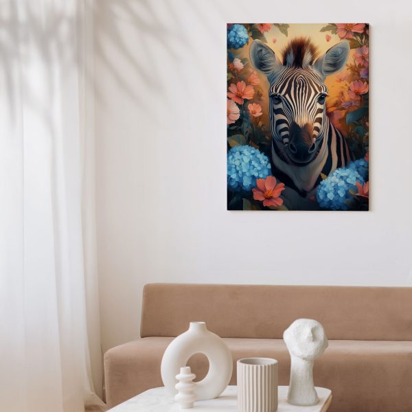 Terug naar collectie Canvas Zebra in Kleurrijke Bloementuin