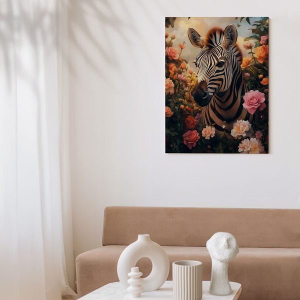 Zebra in kleurrijke bloementuin
