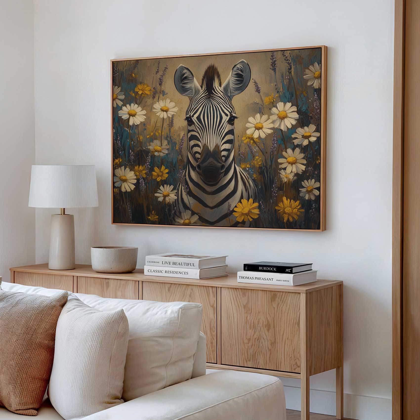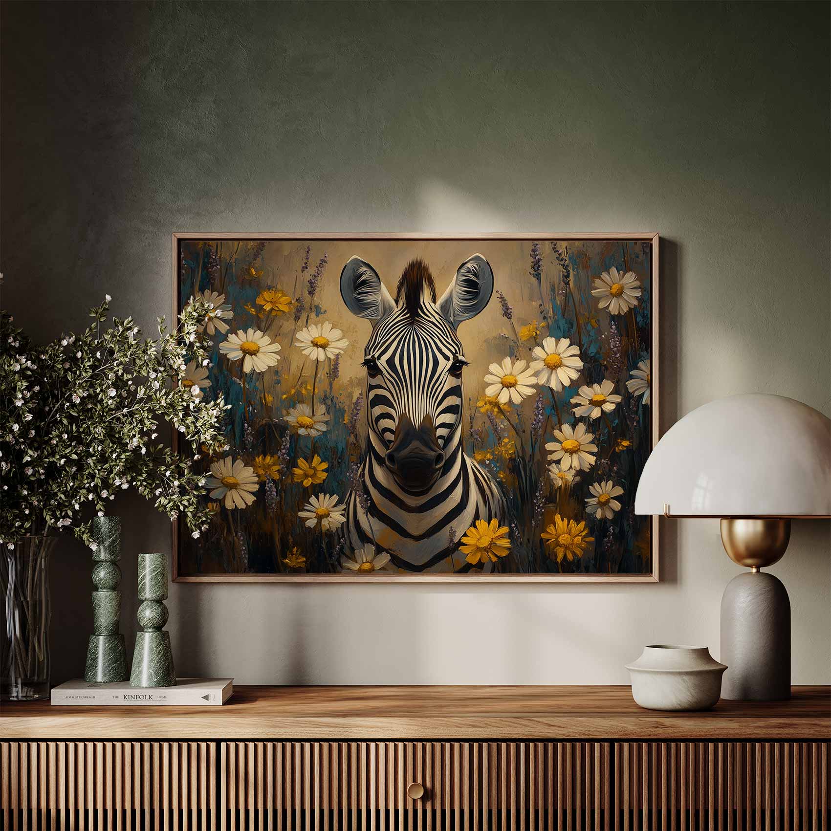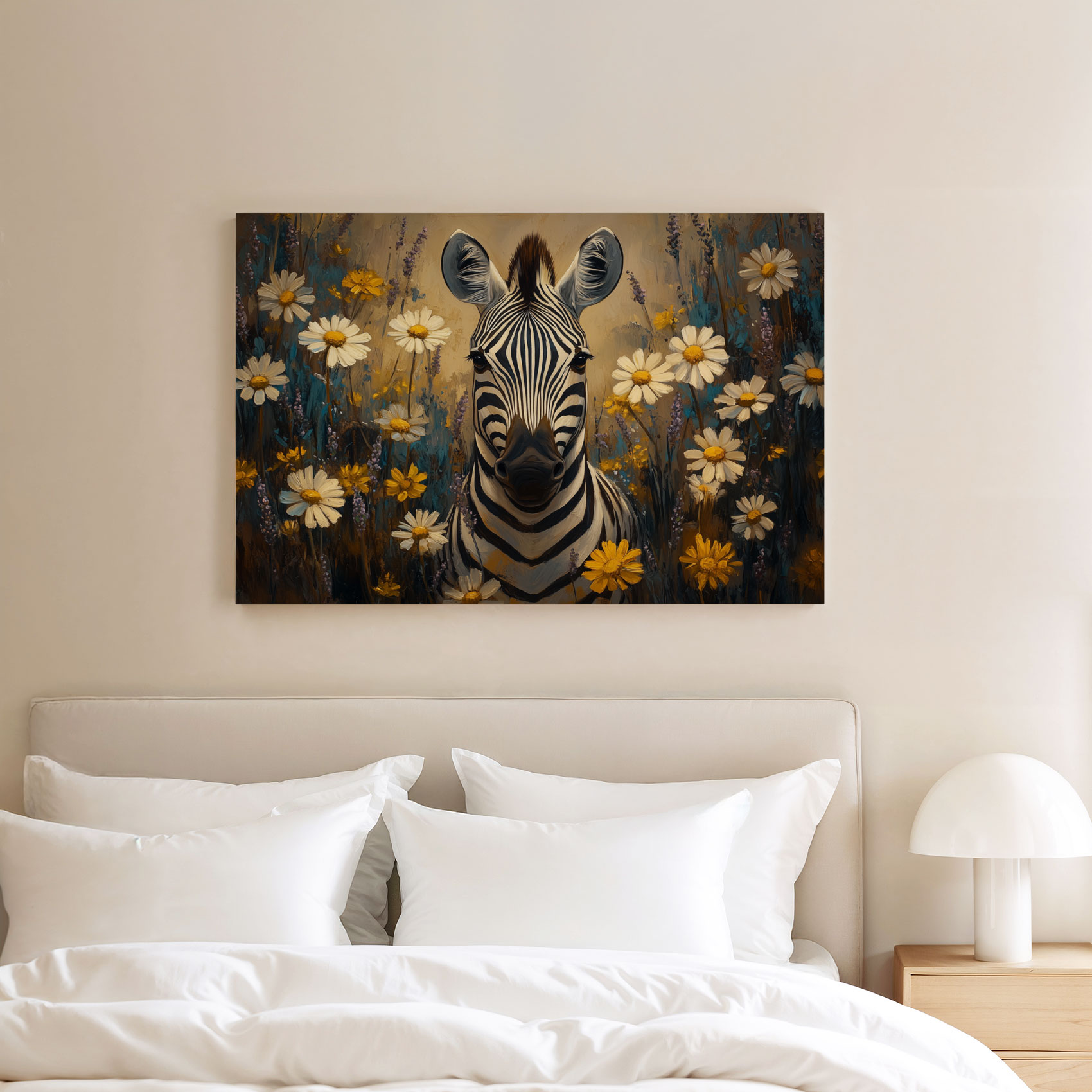 Zebra tussen bloemenveld