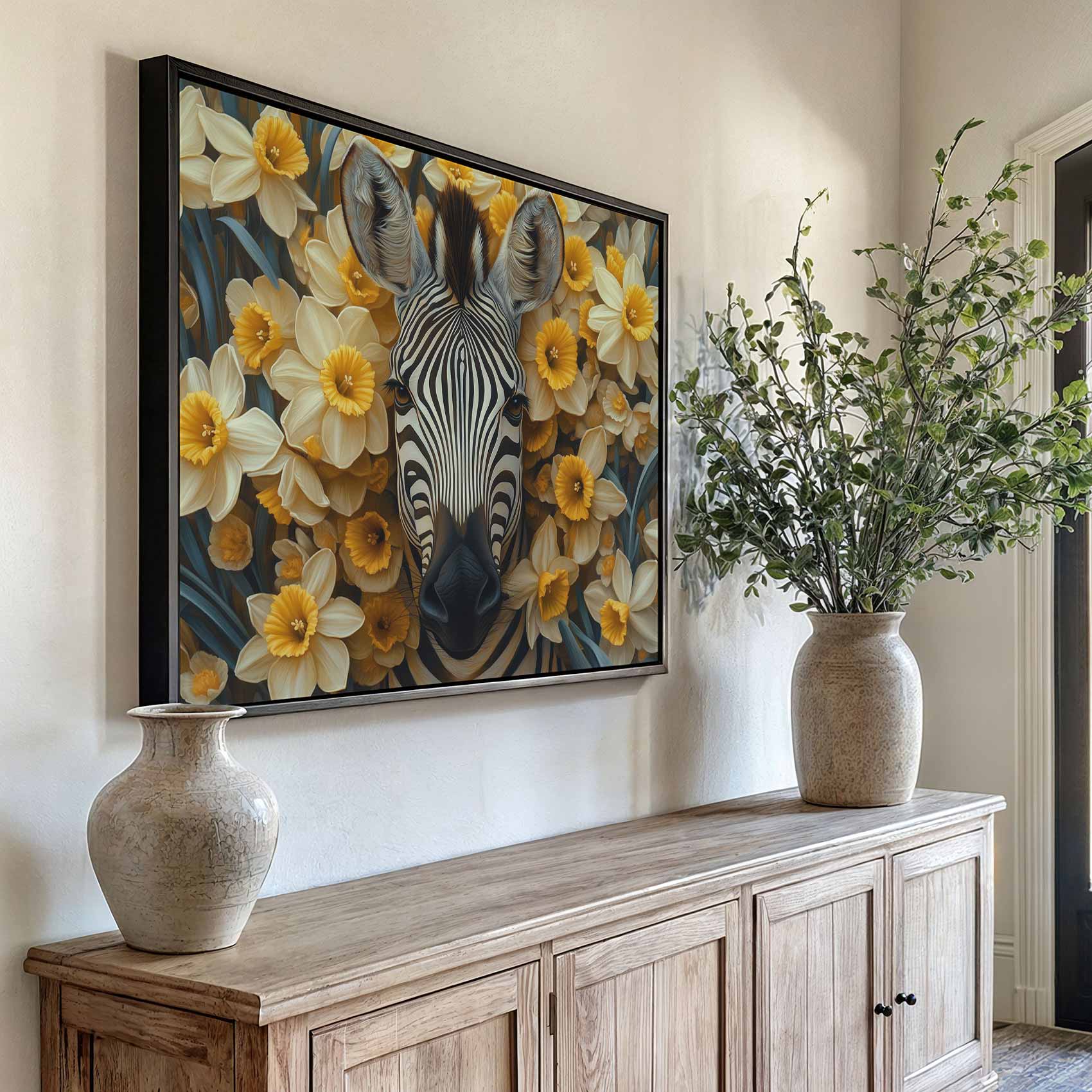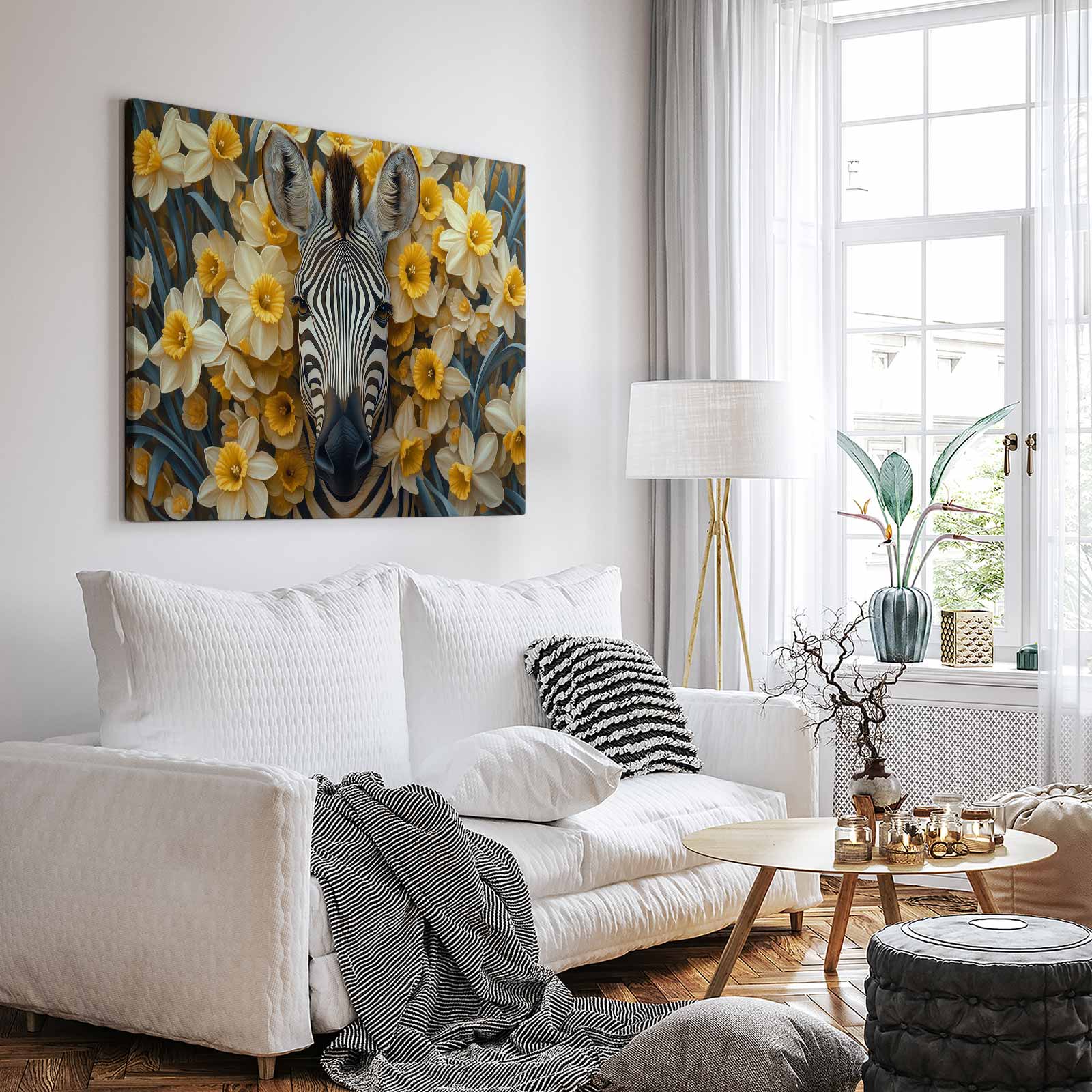Zebra tussen bloemenveld