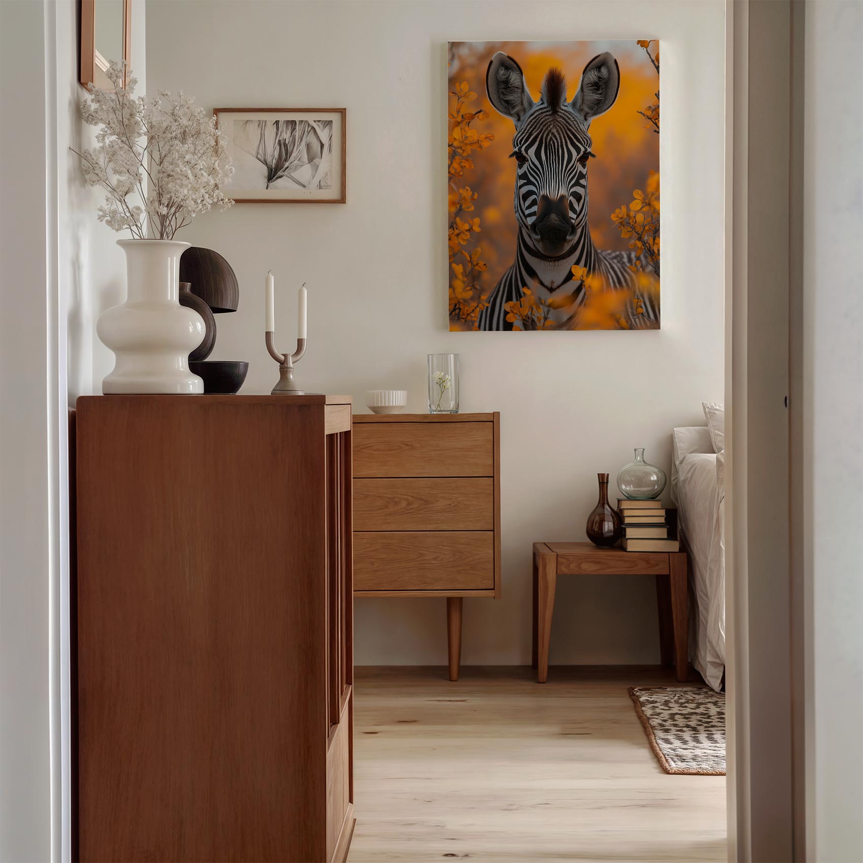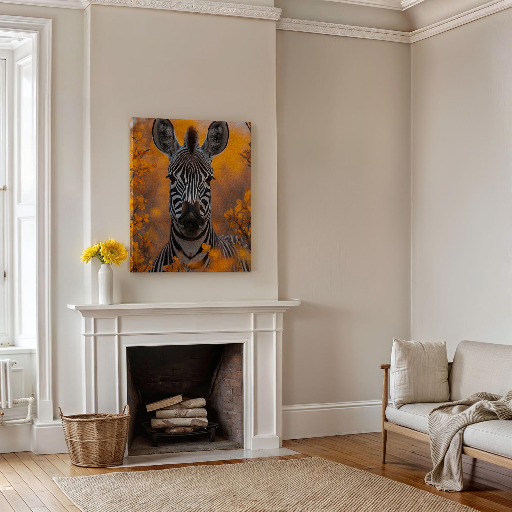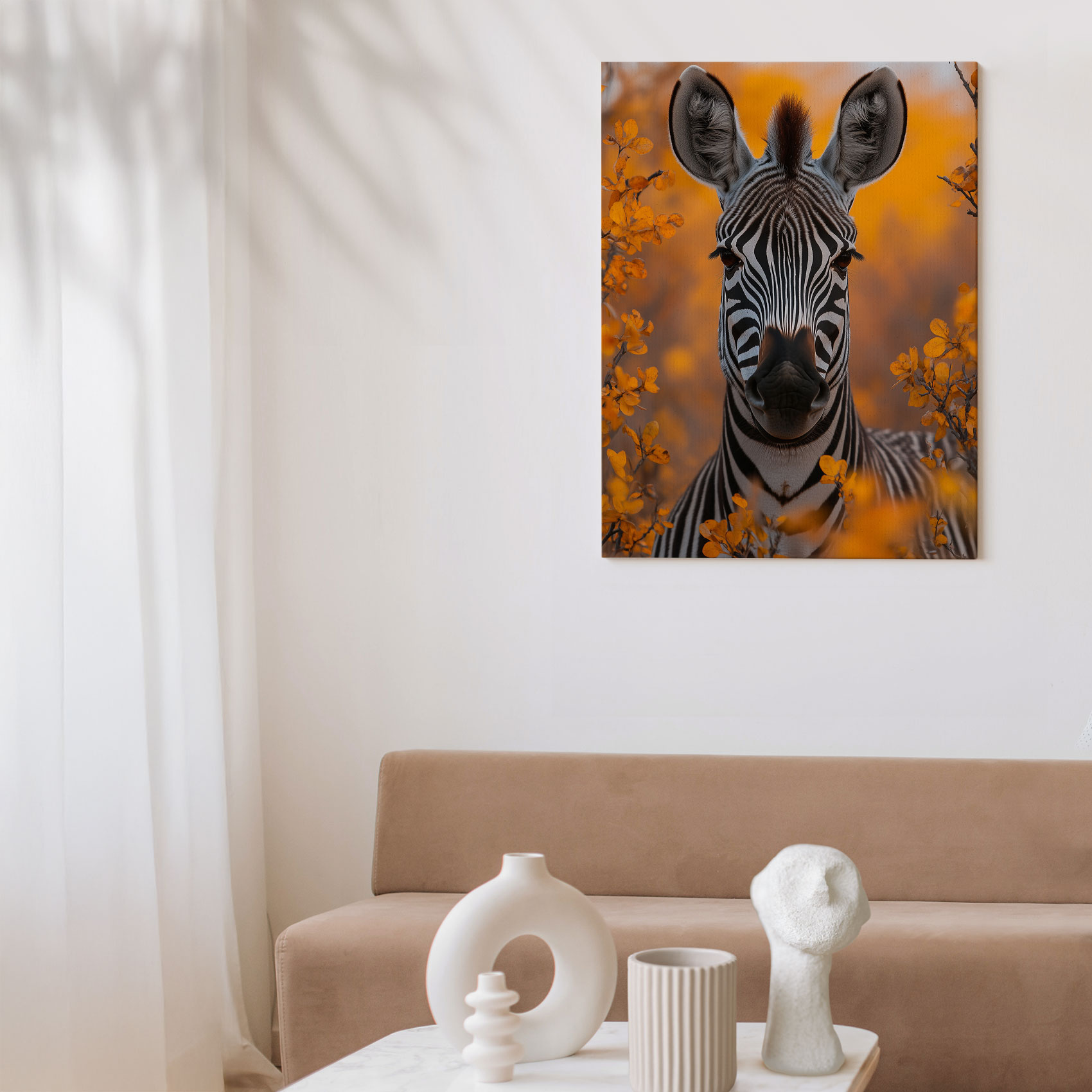 Zebra tussen oranje bloemen