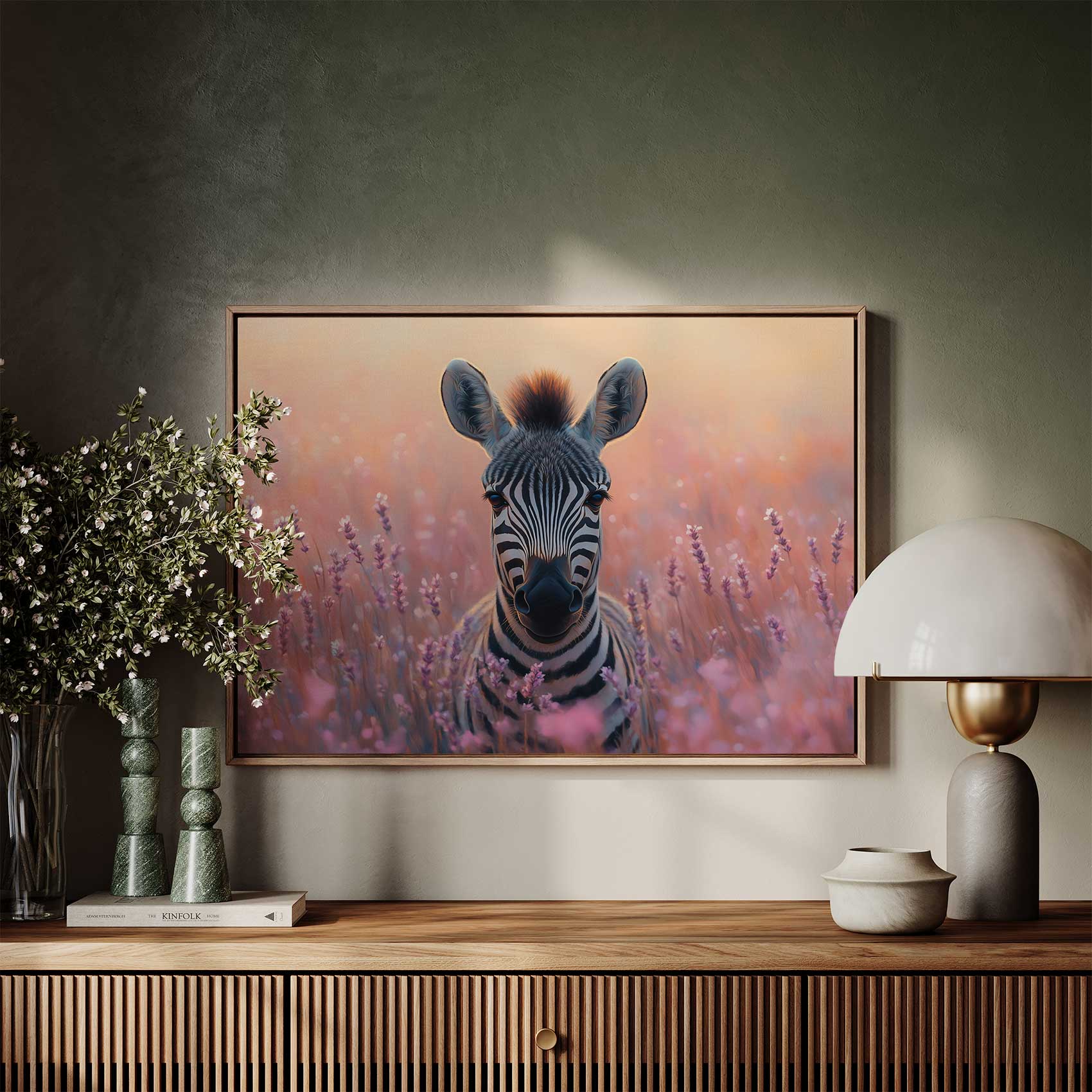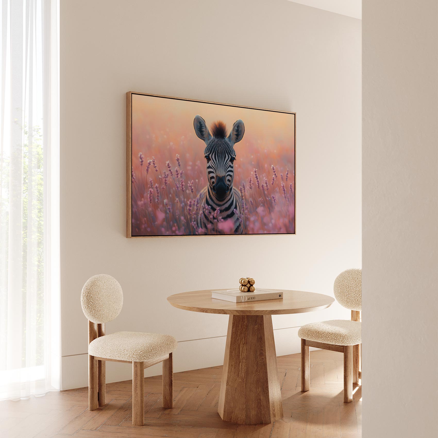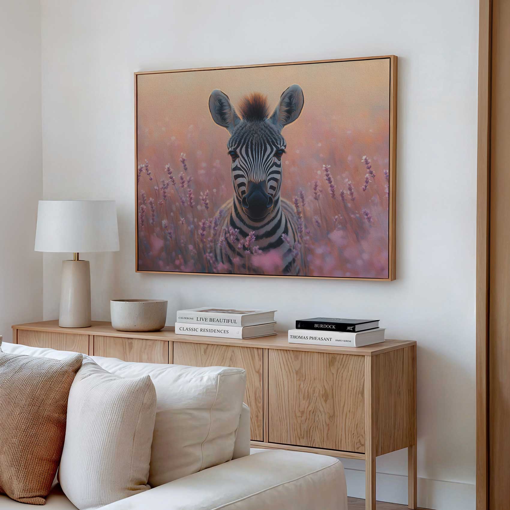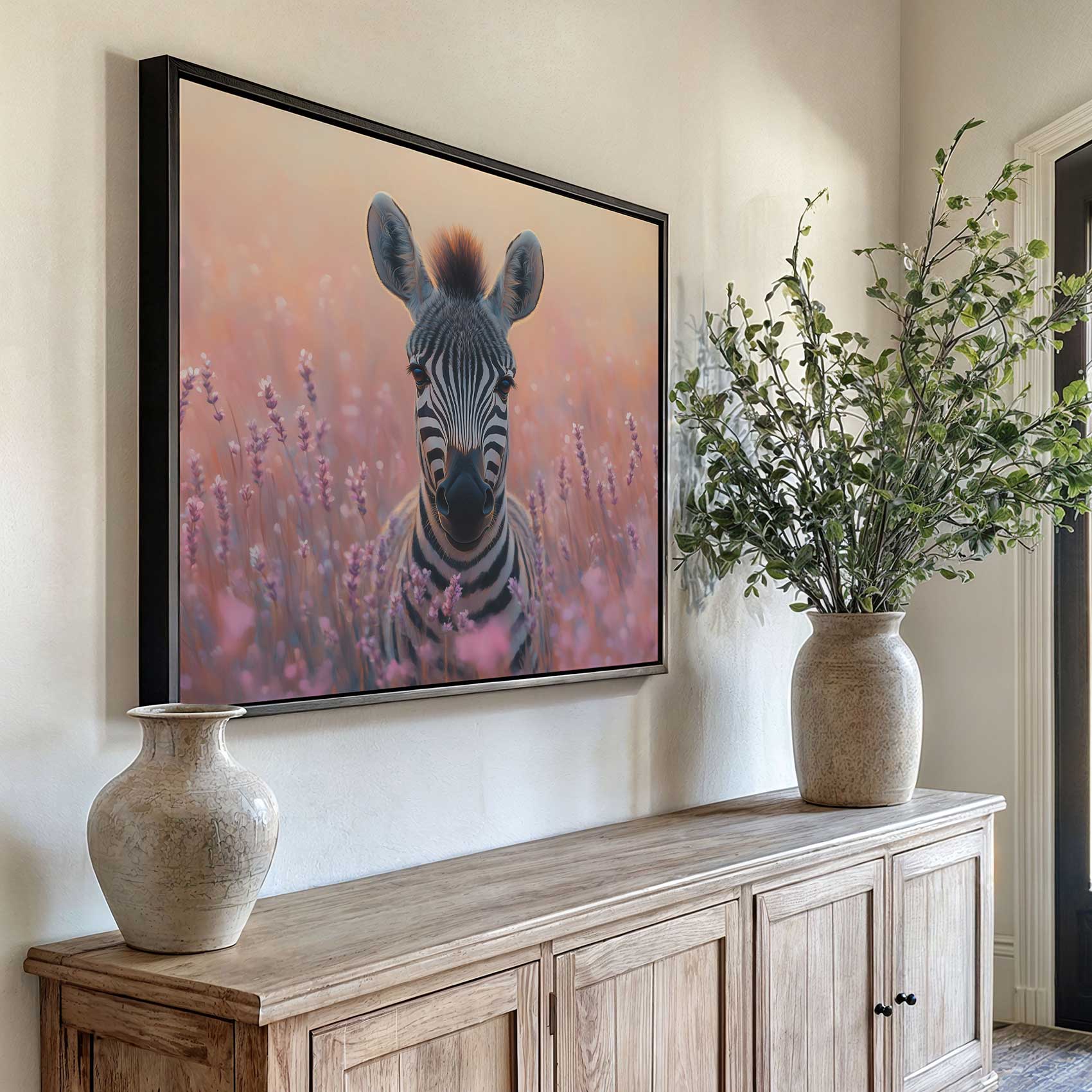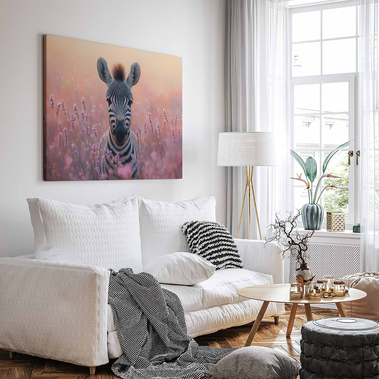Zebra tussen paarse bloemen