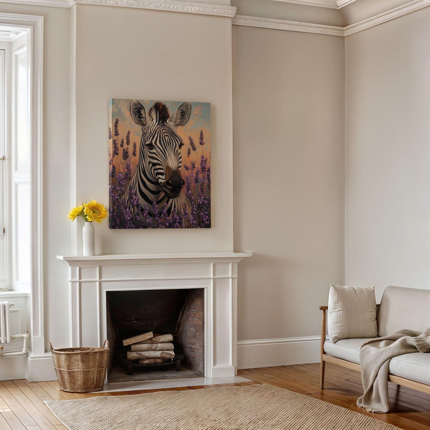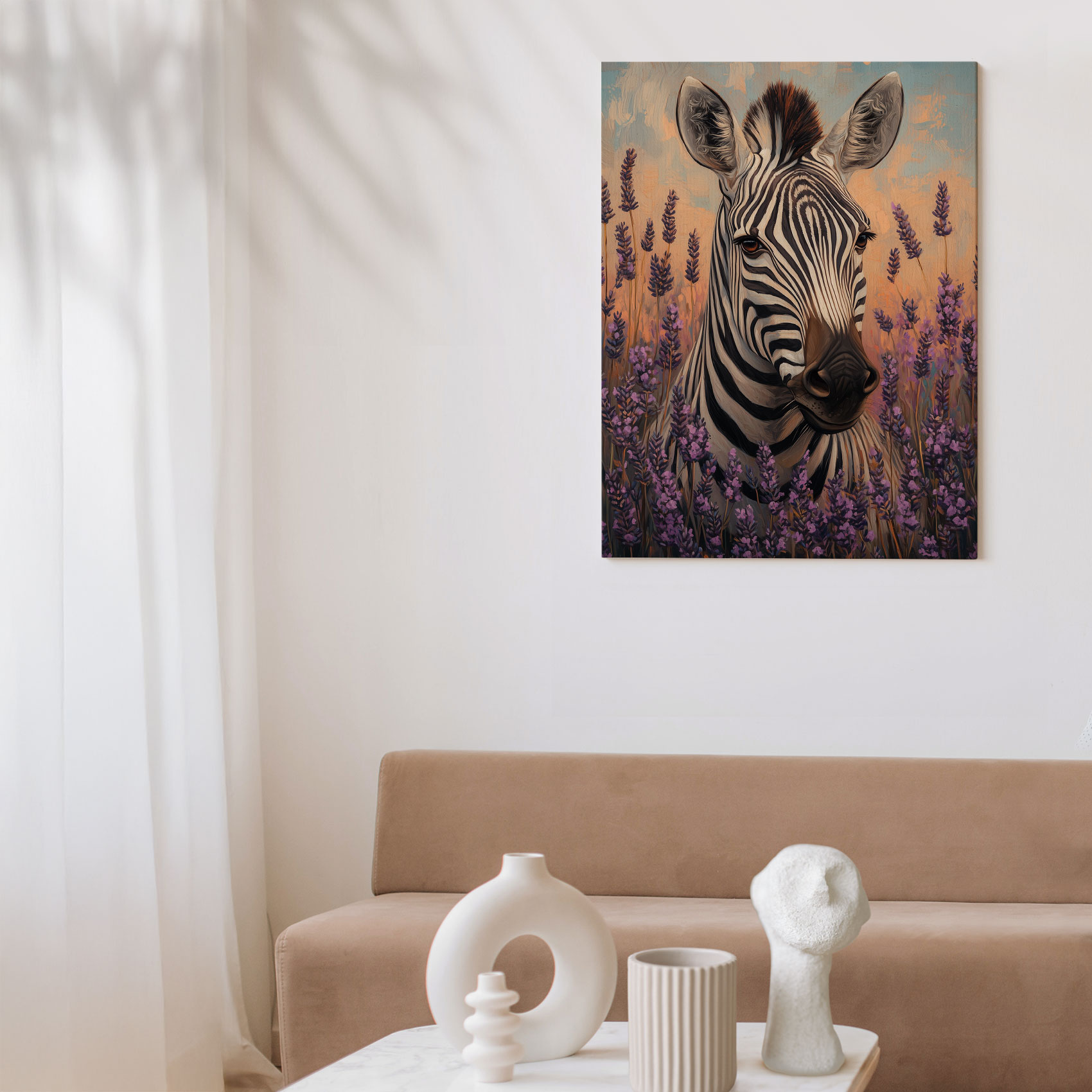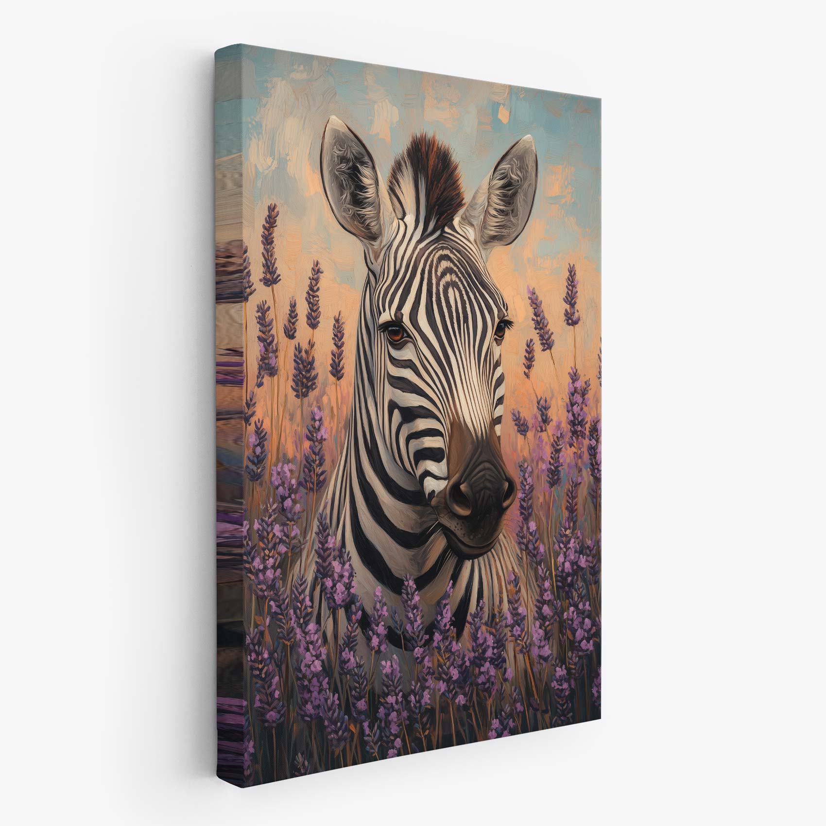 Terug naar collectie Canvas Zebra tussen paarse lavendel