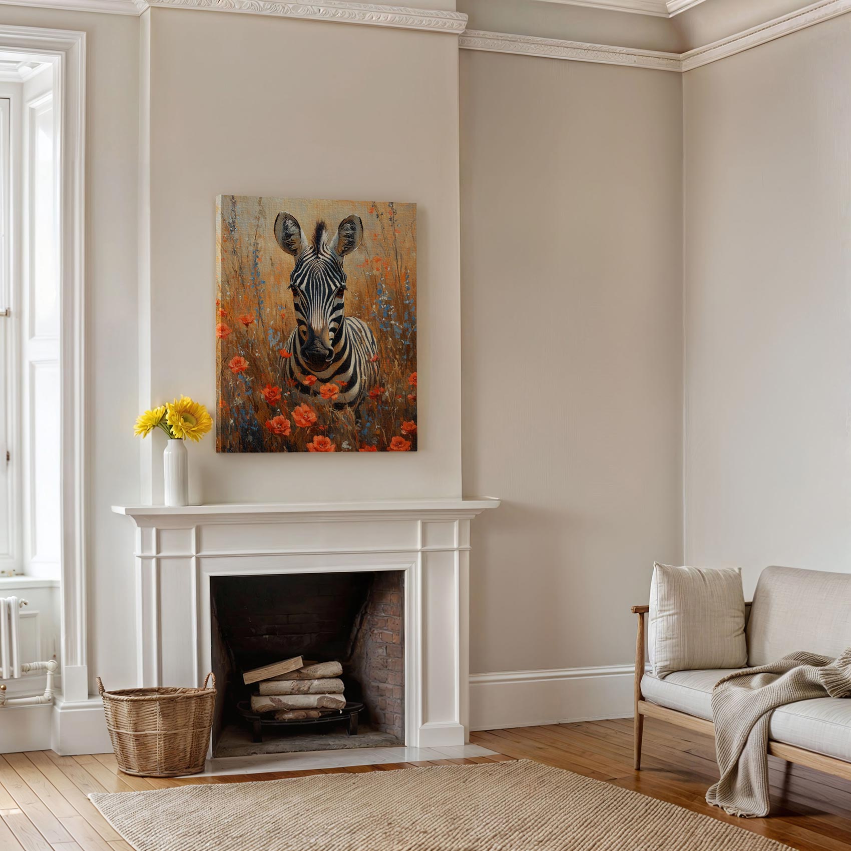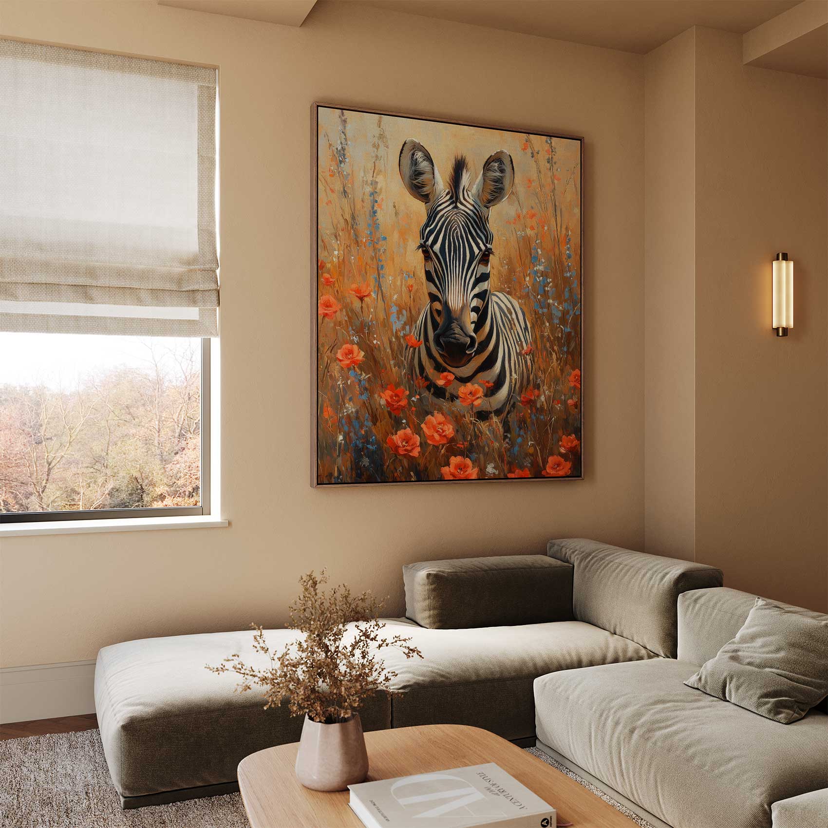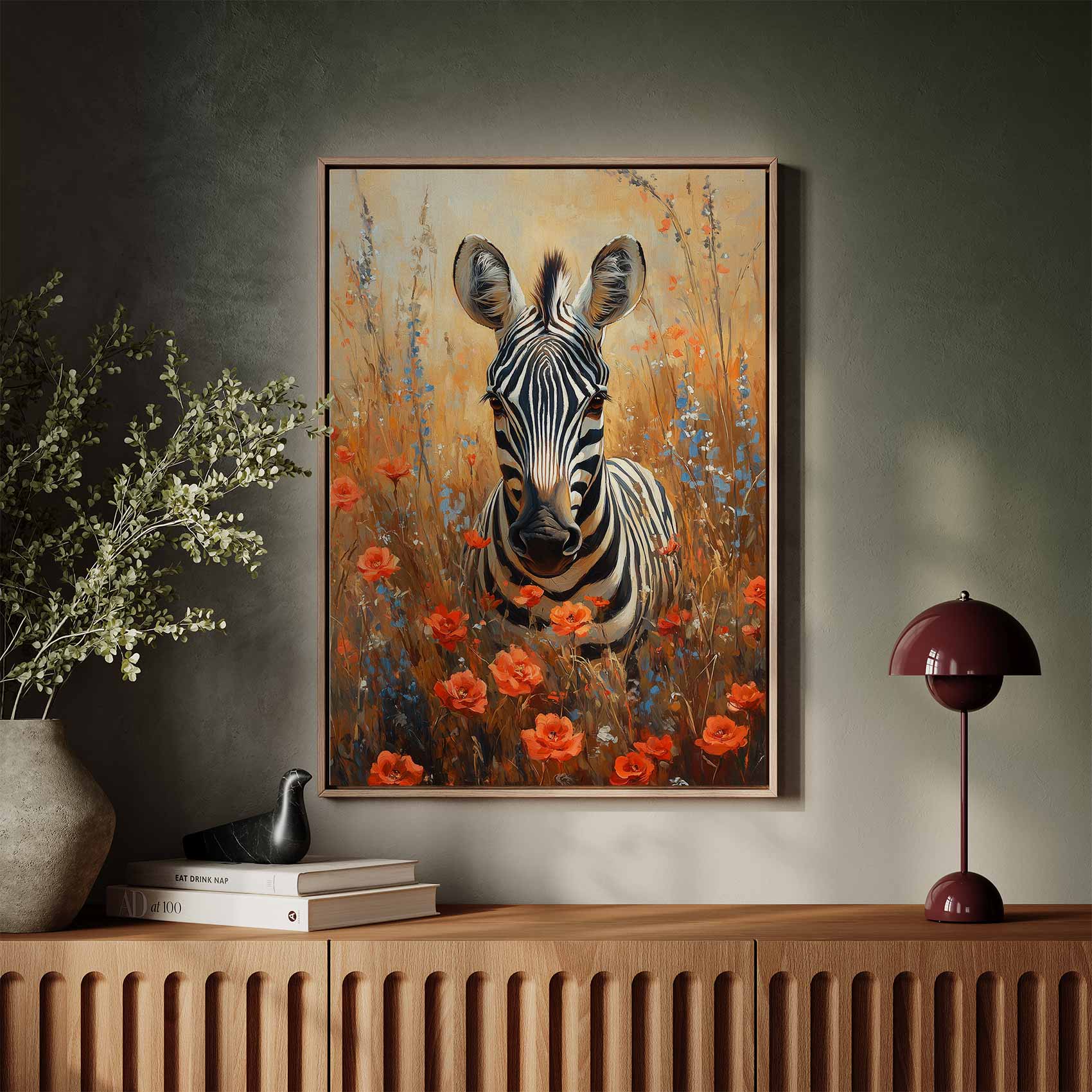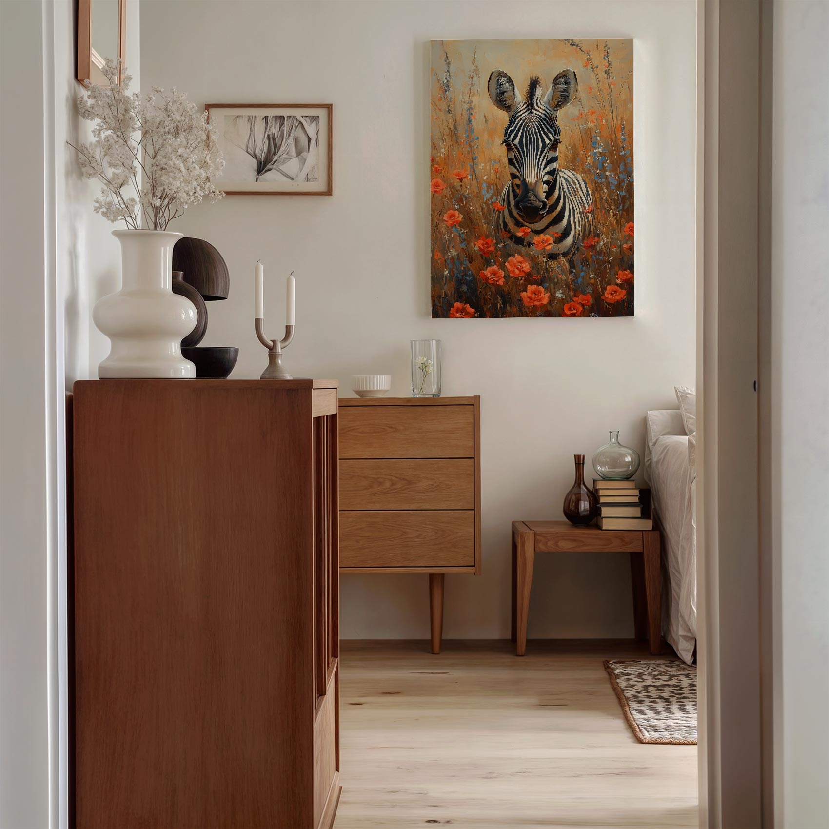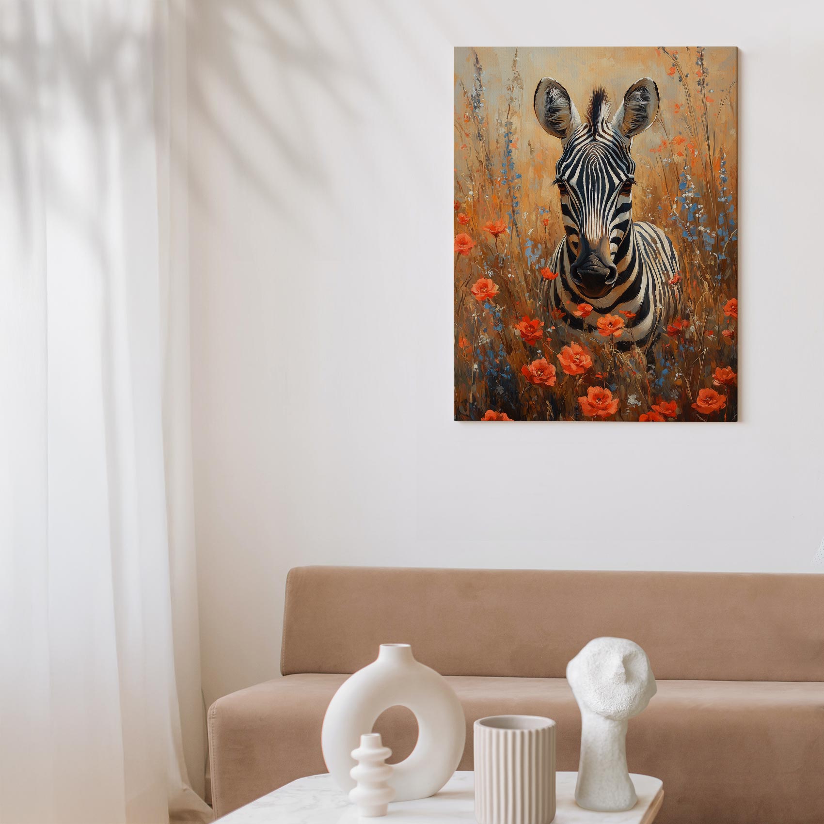 Zebra tussen rode bloemen