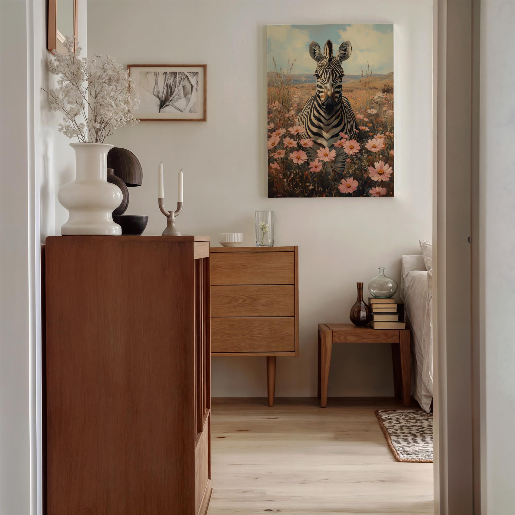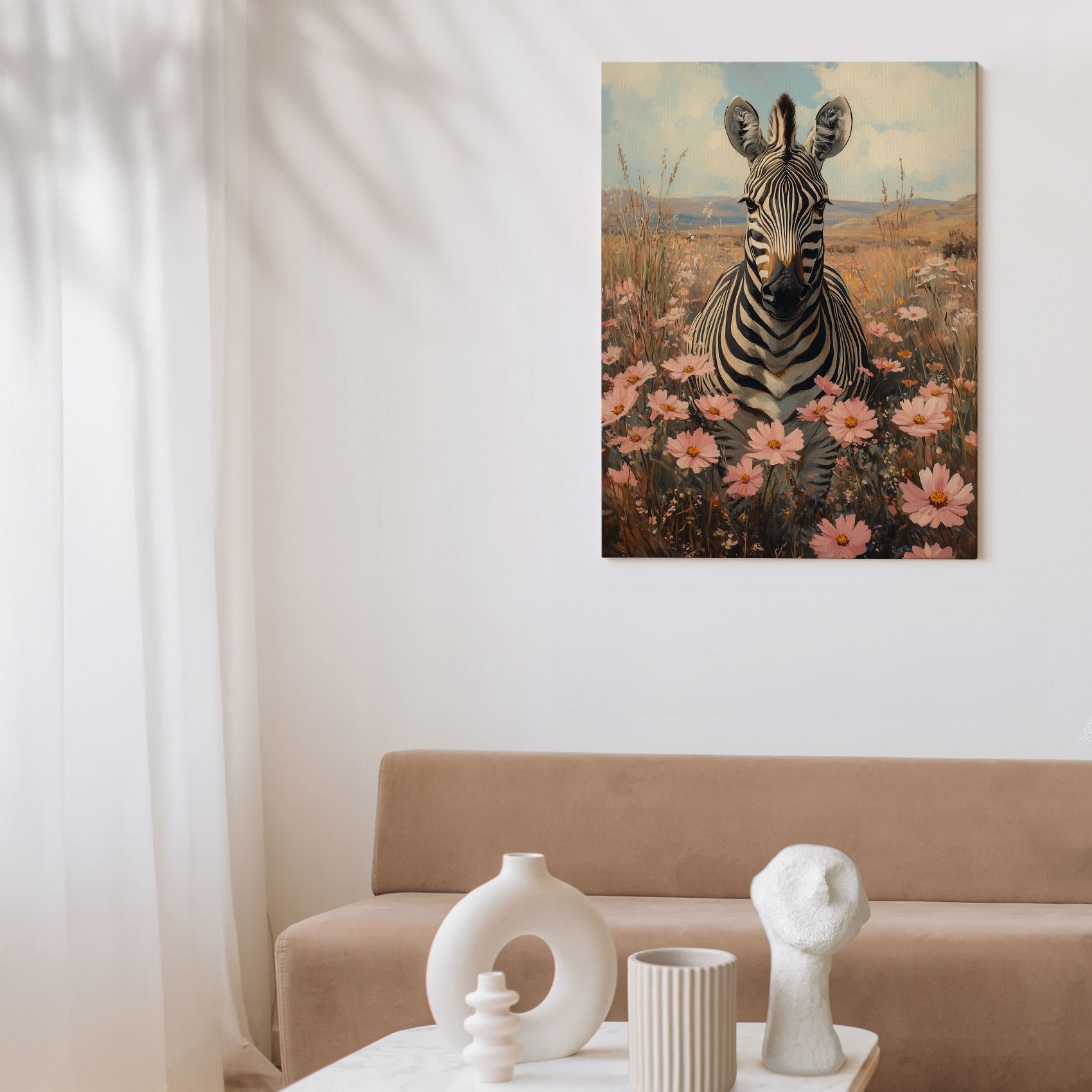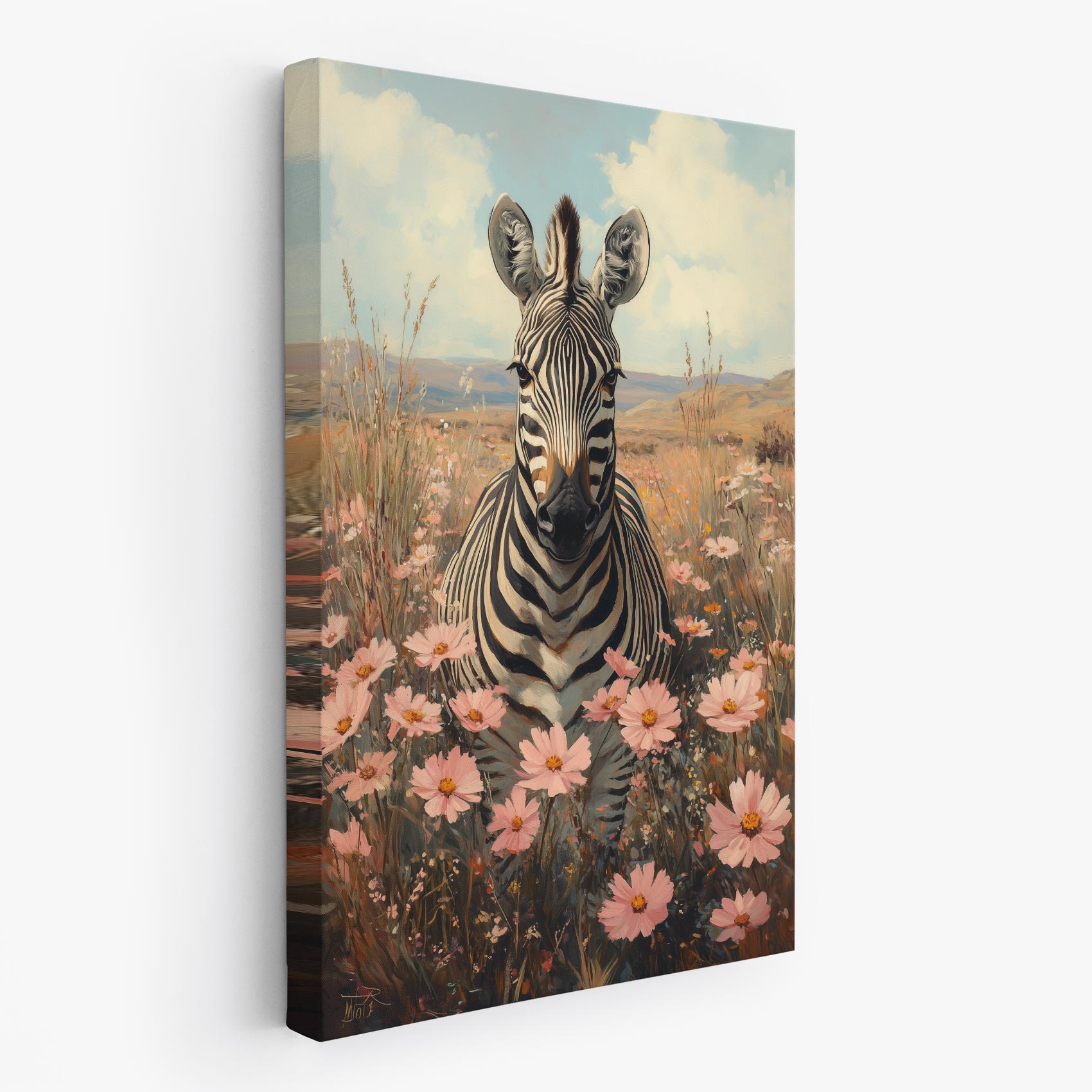 Terug naar collectie Canvas Zebra tussen roze bloemen