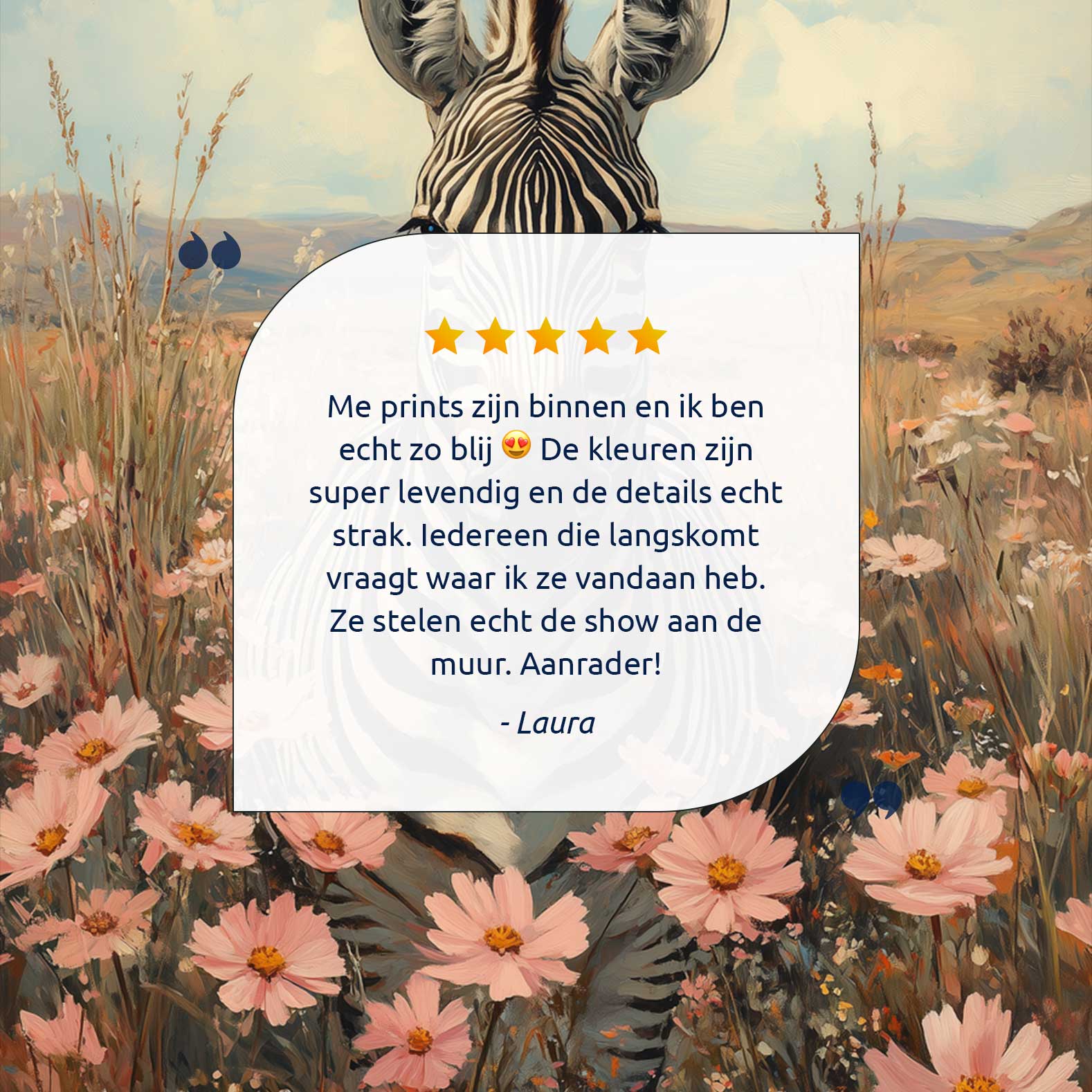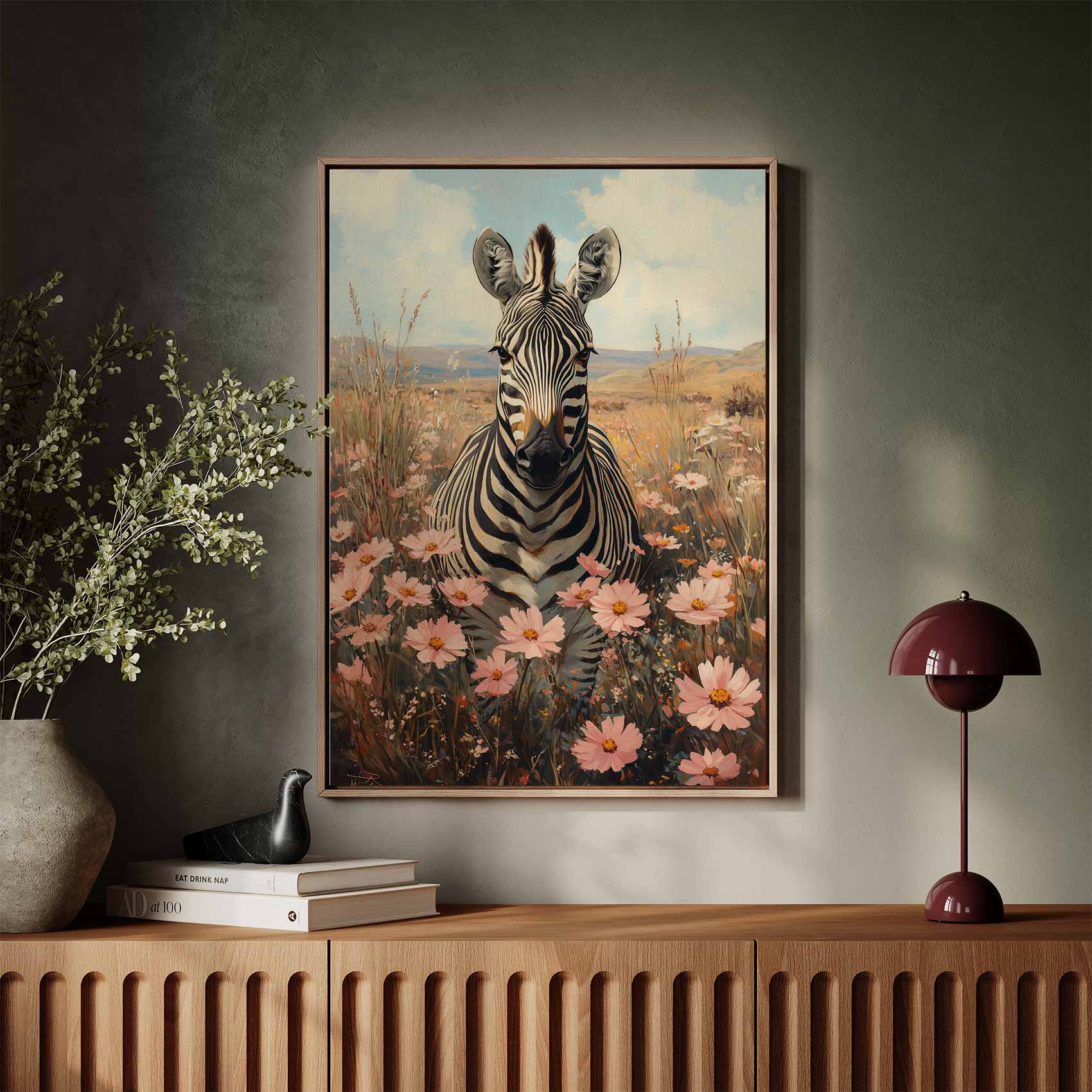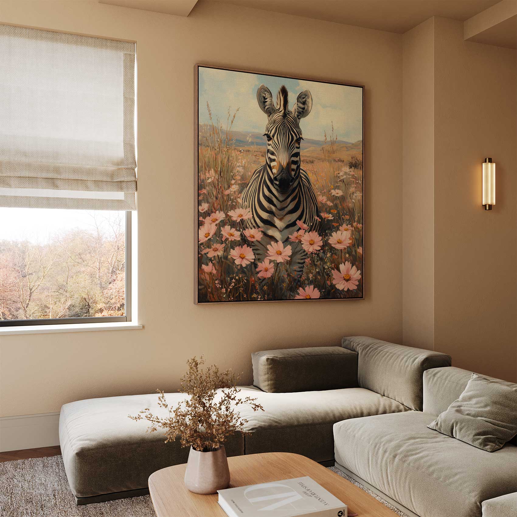 Terug naar collectie Canvas Zebra tussen roze bloemen
