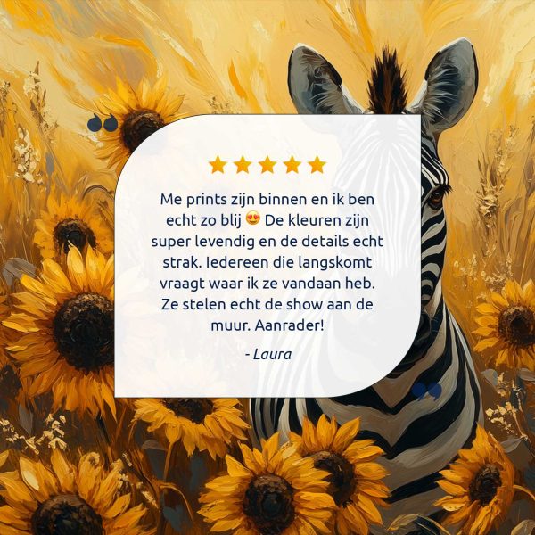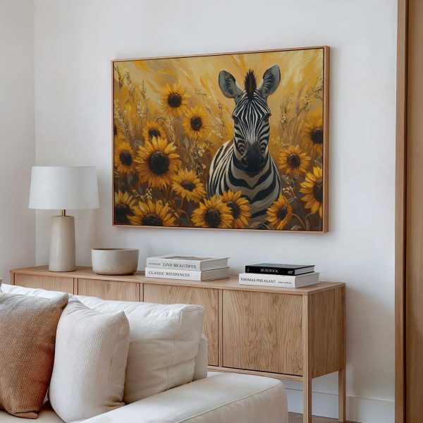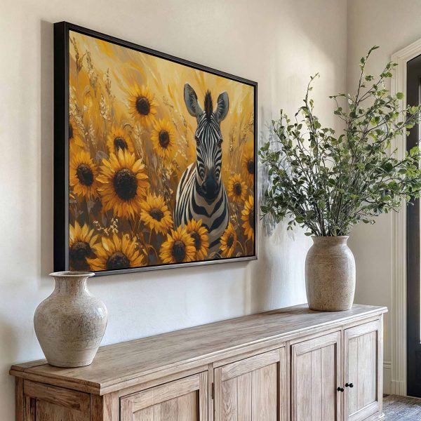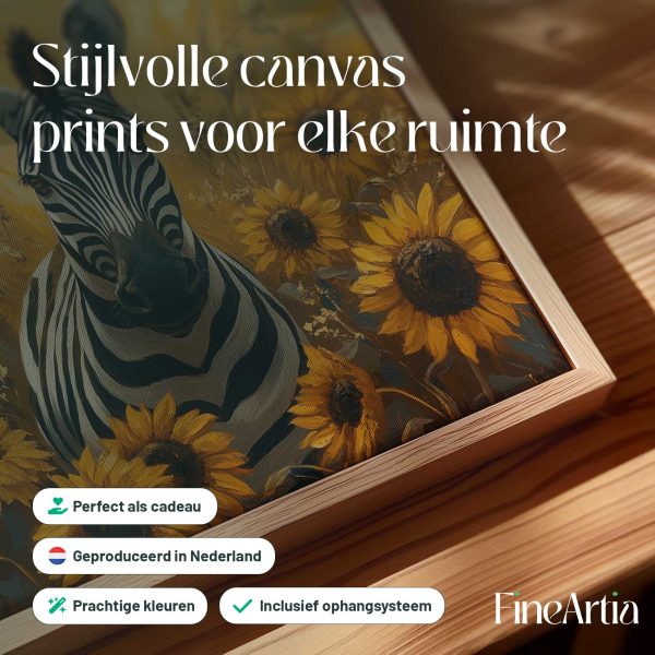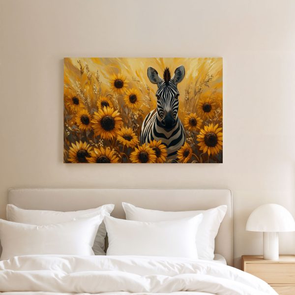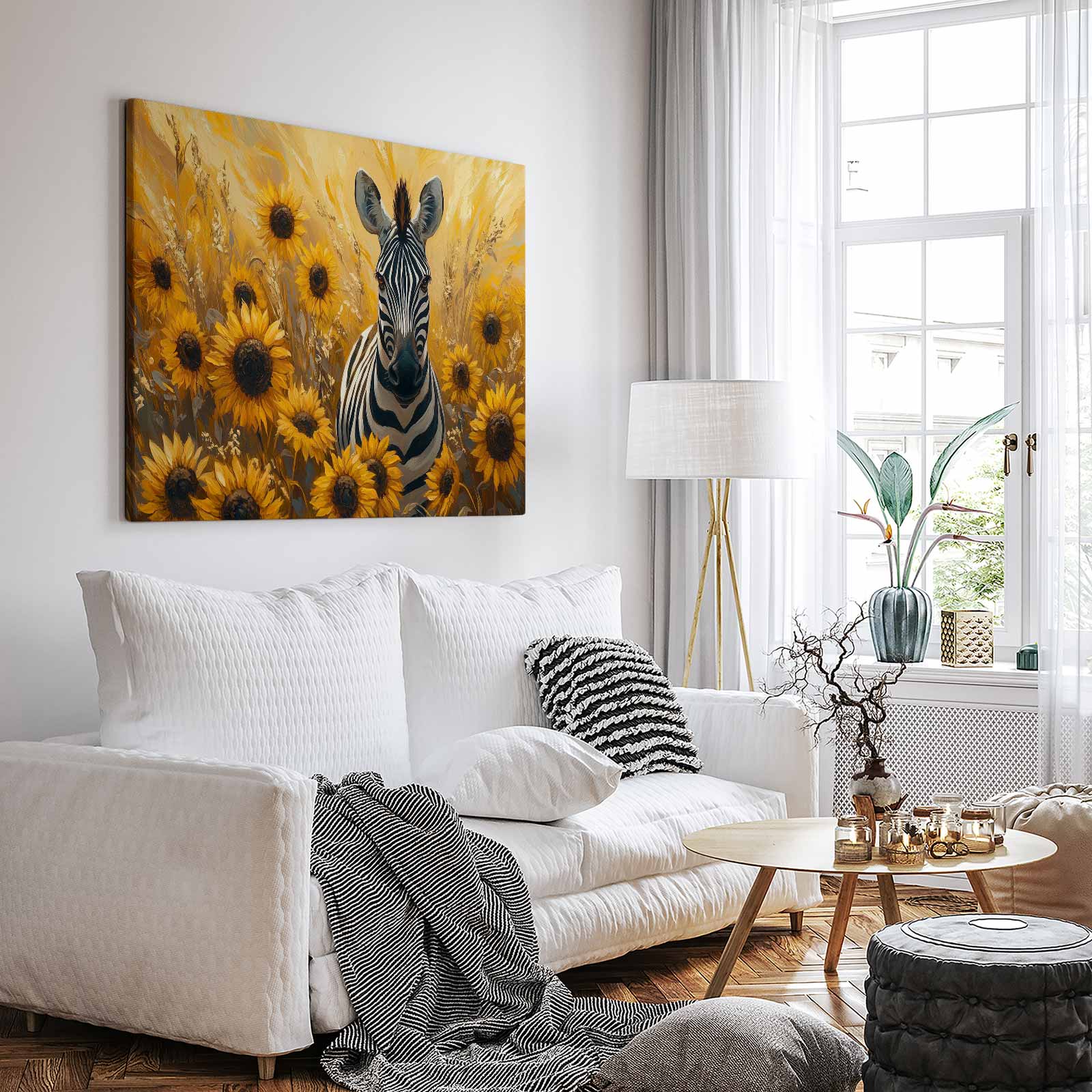 Terug naar collectie Canvas Zebra tussen zonnebloemen