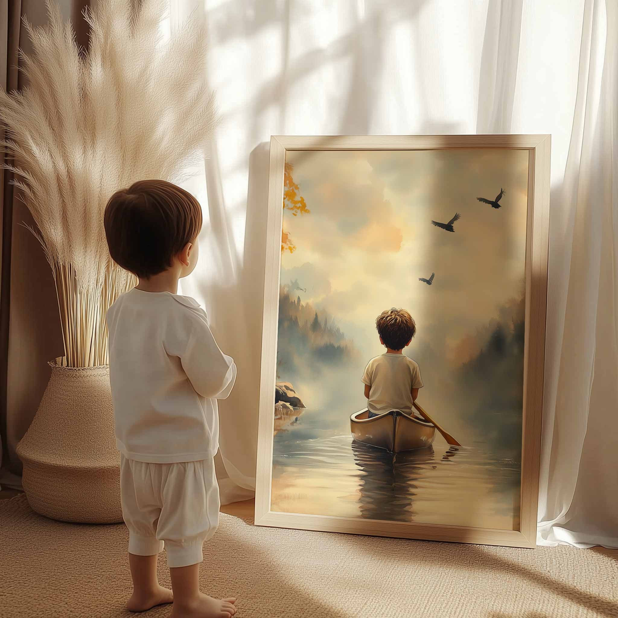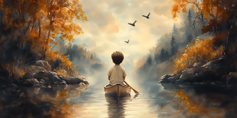 Zonnig Avontuur: Jongen in Kano tussen de Bomen