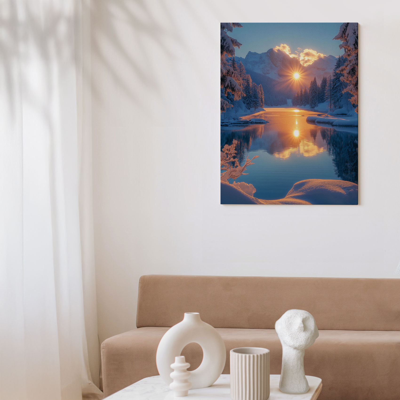 Terug naar collectie Canvas Zonnig besneeuwd winterlandschap