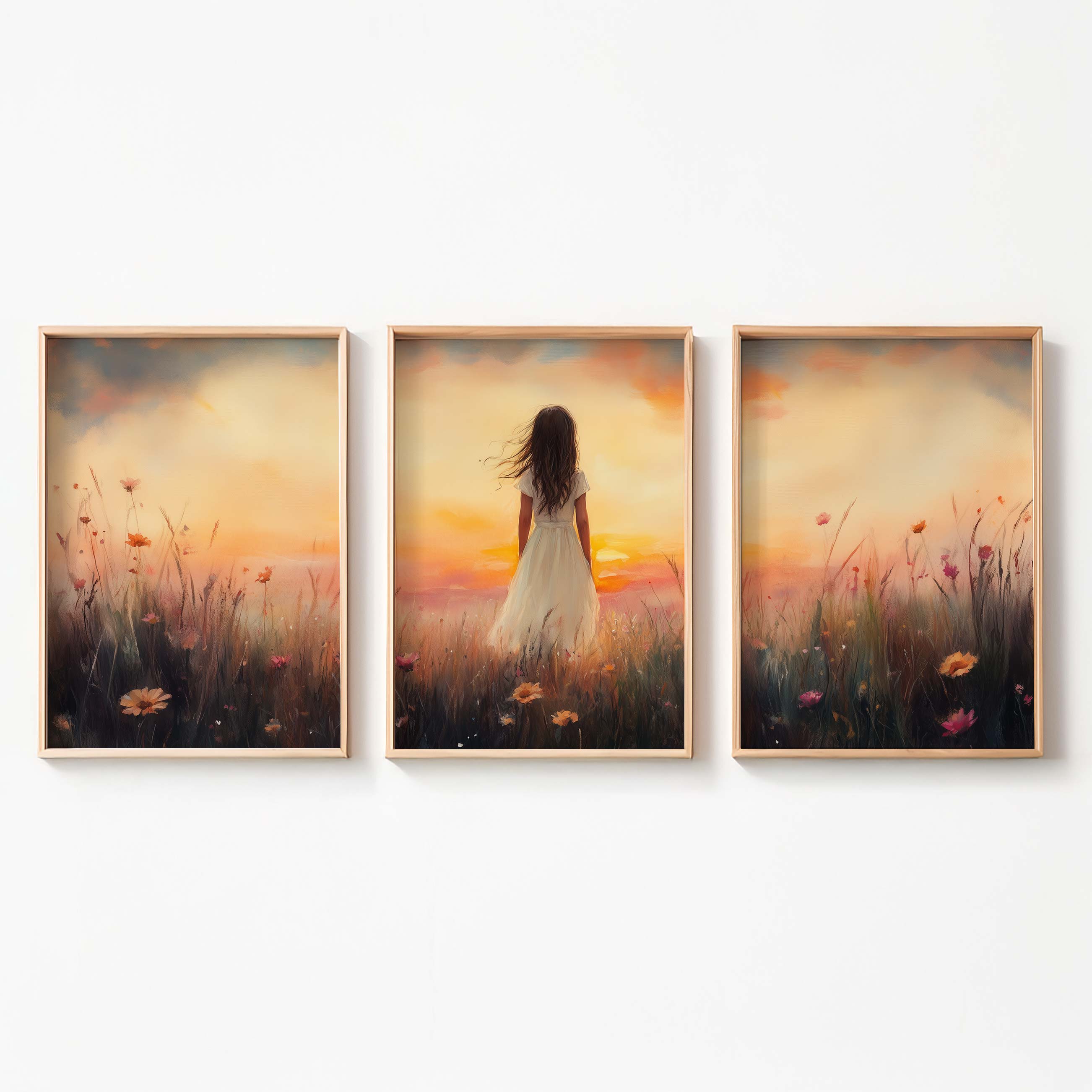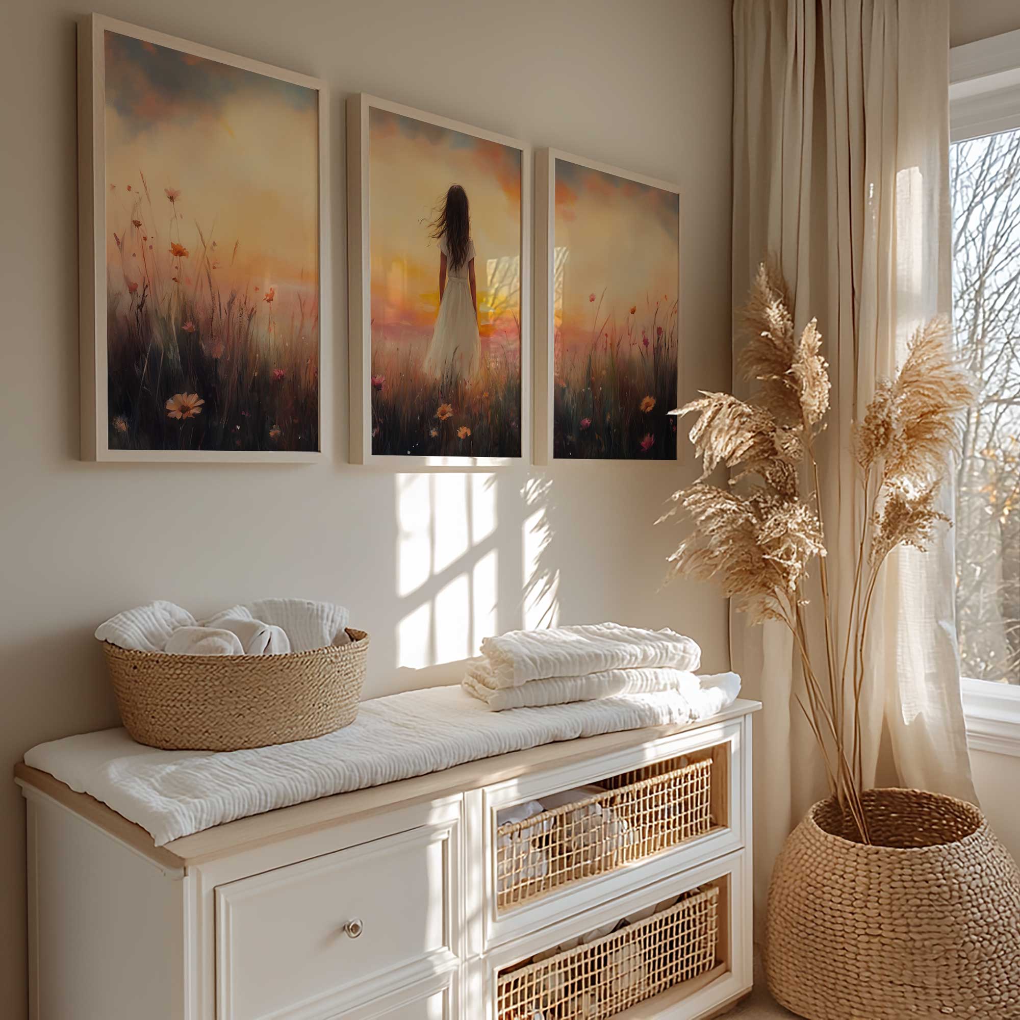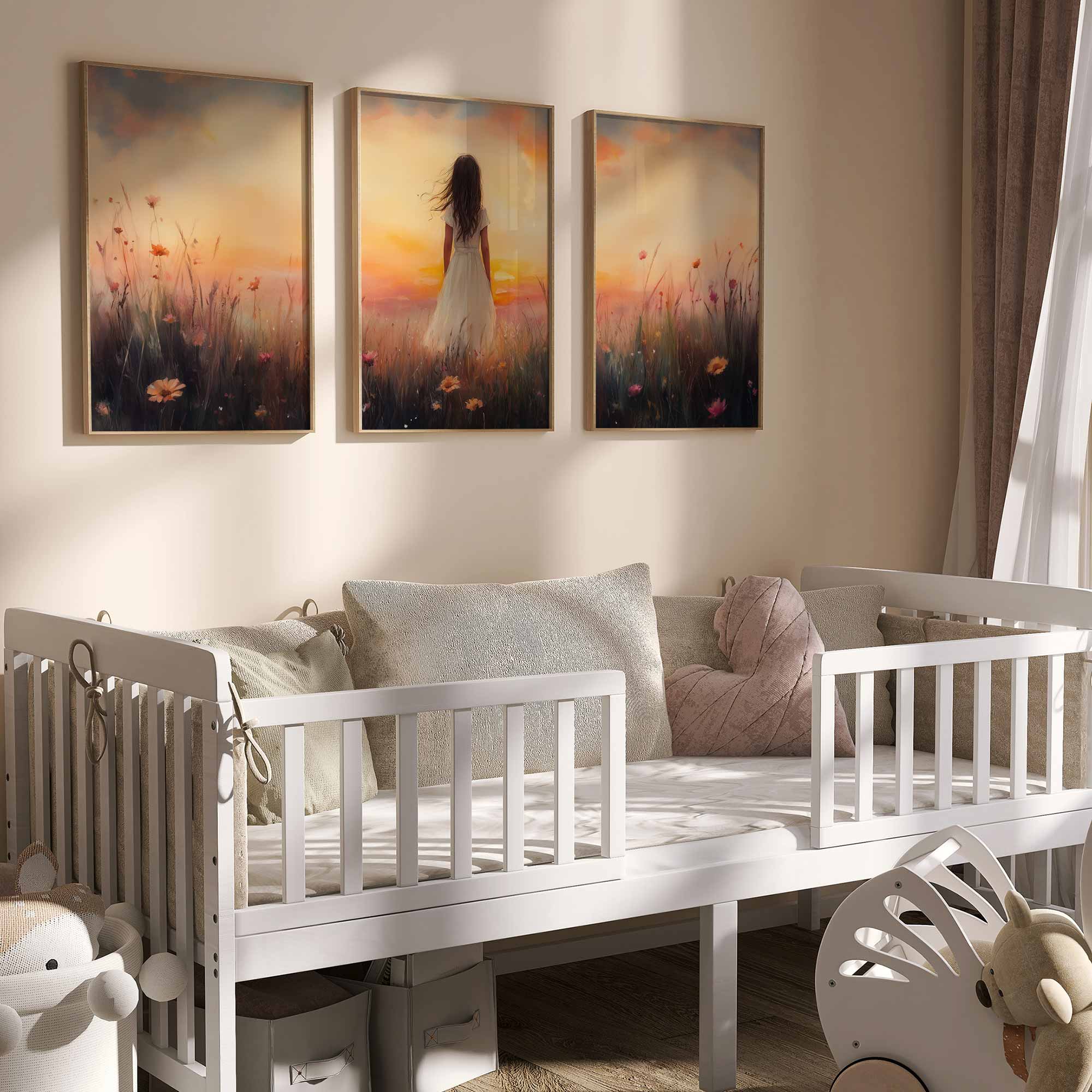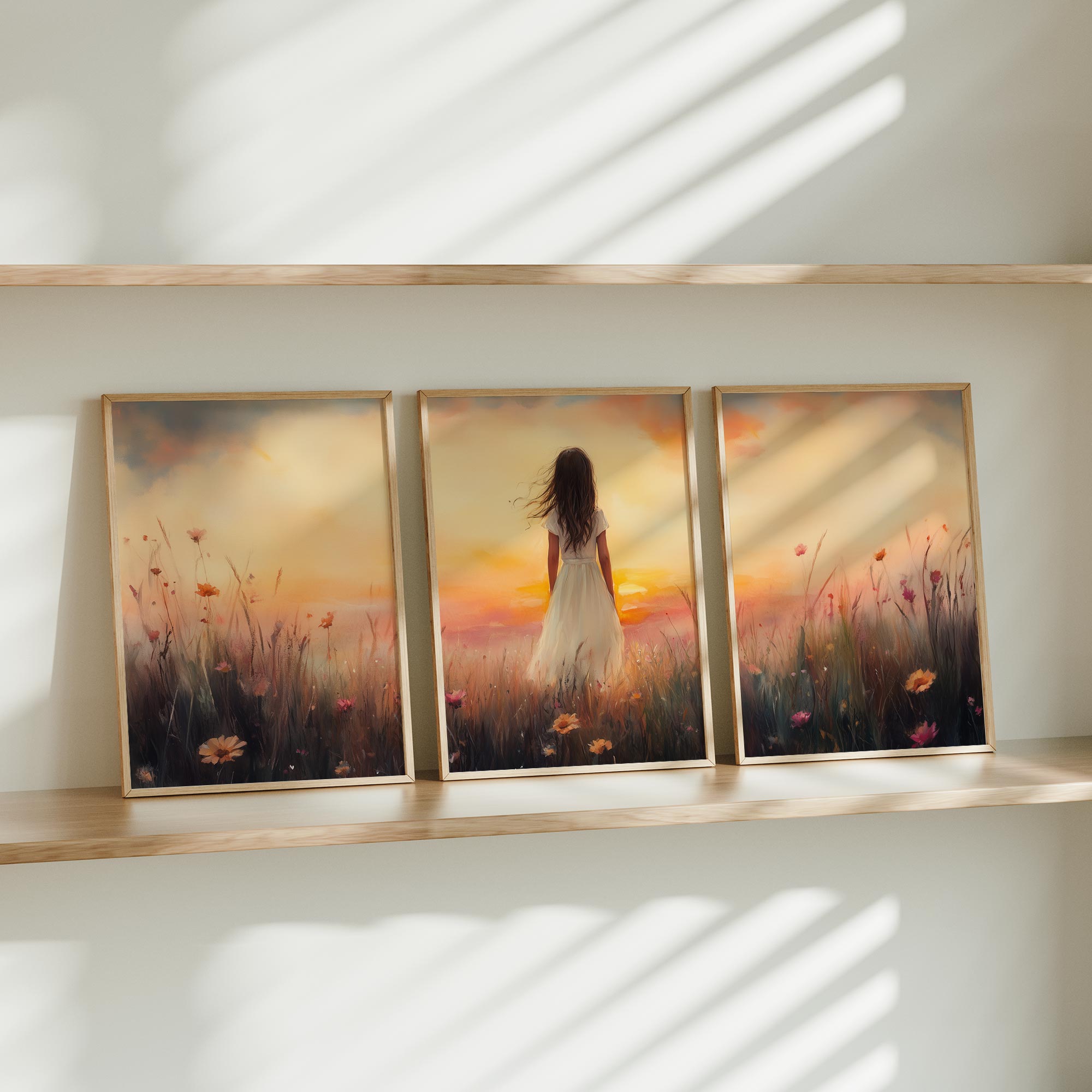 Zonnig Bloemenveld met Meisje in Witte Jurk