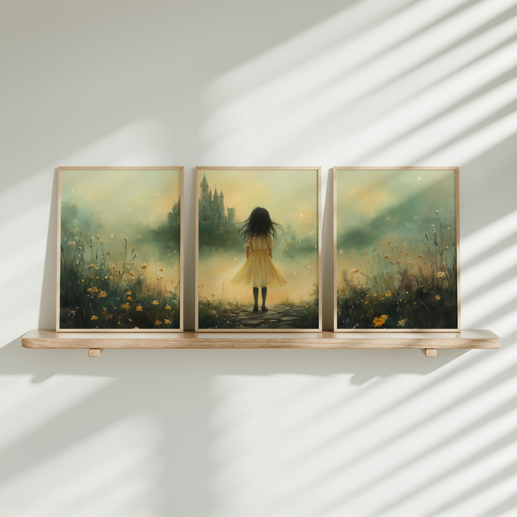 Zonnig Bloemenveld met Meisje in Zwarte Jurk