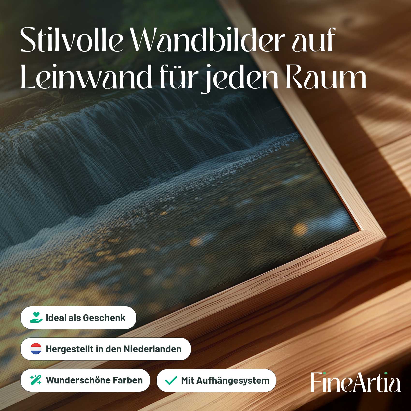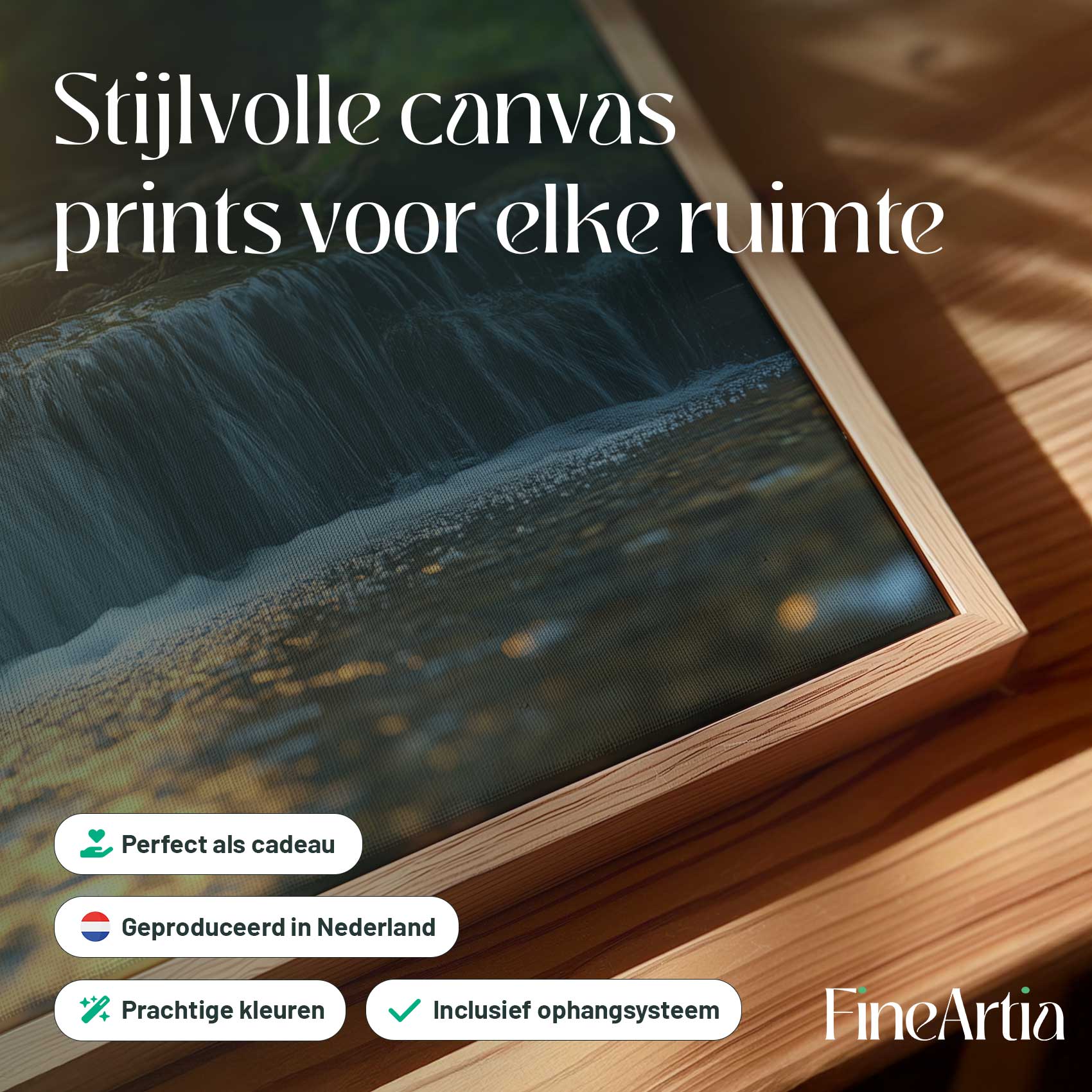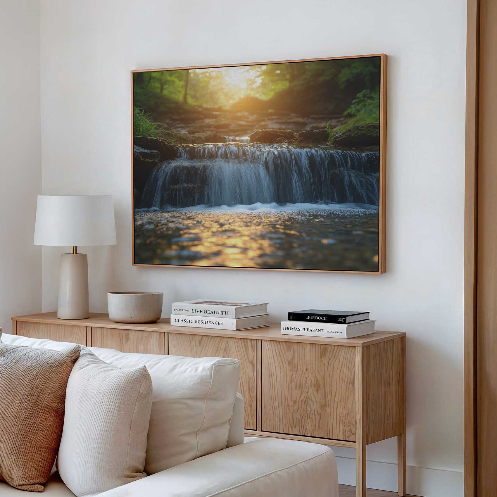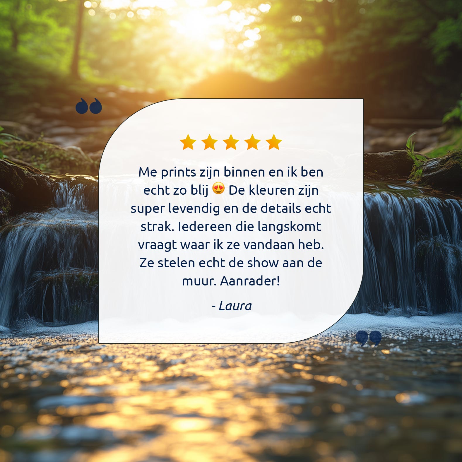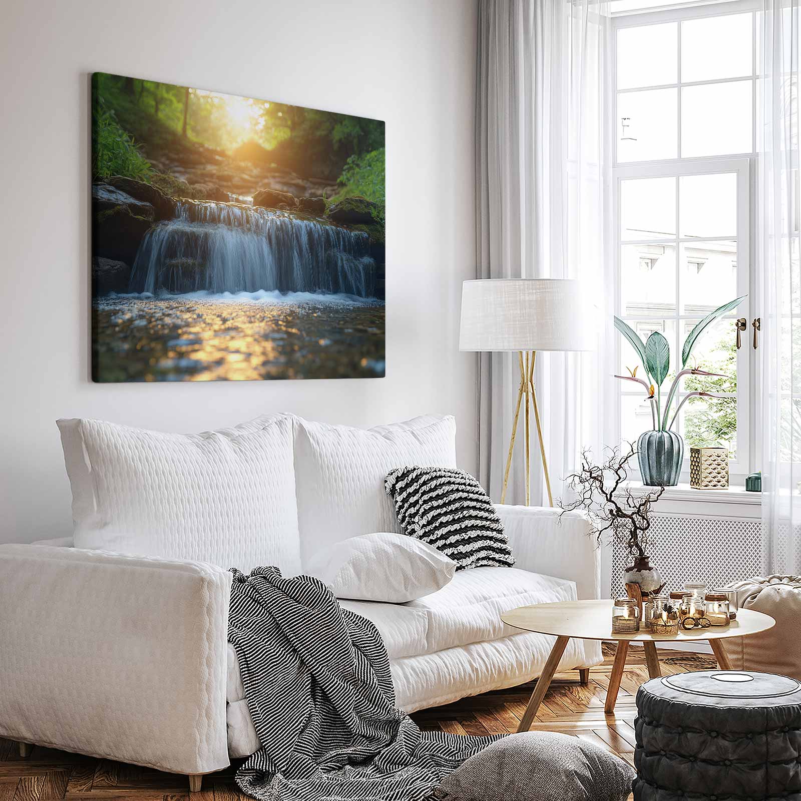 Zonnig boswaterval tafereel