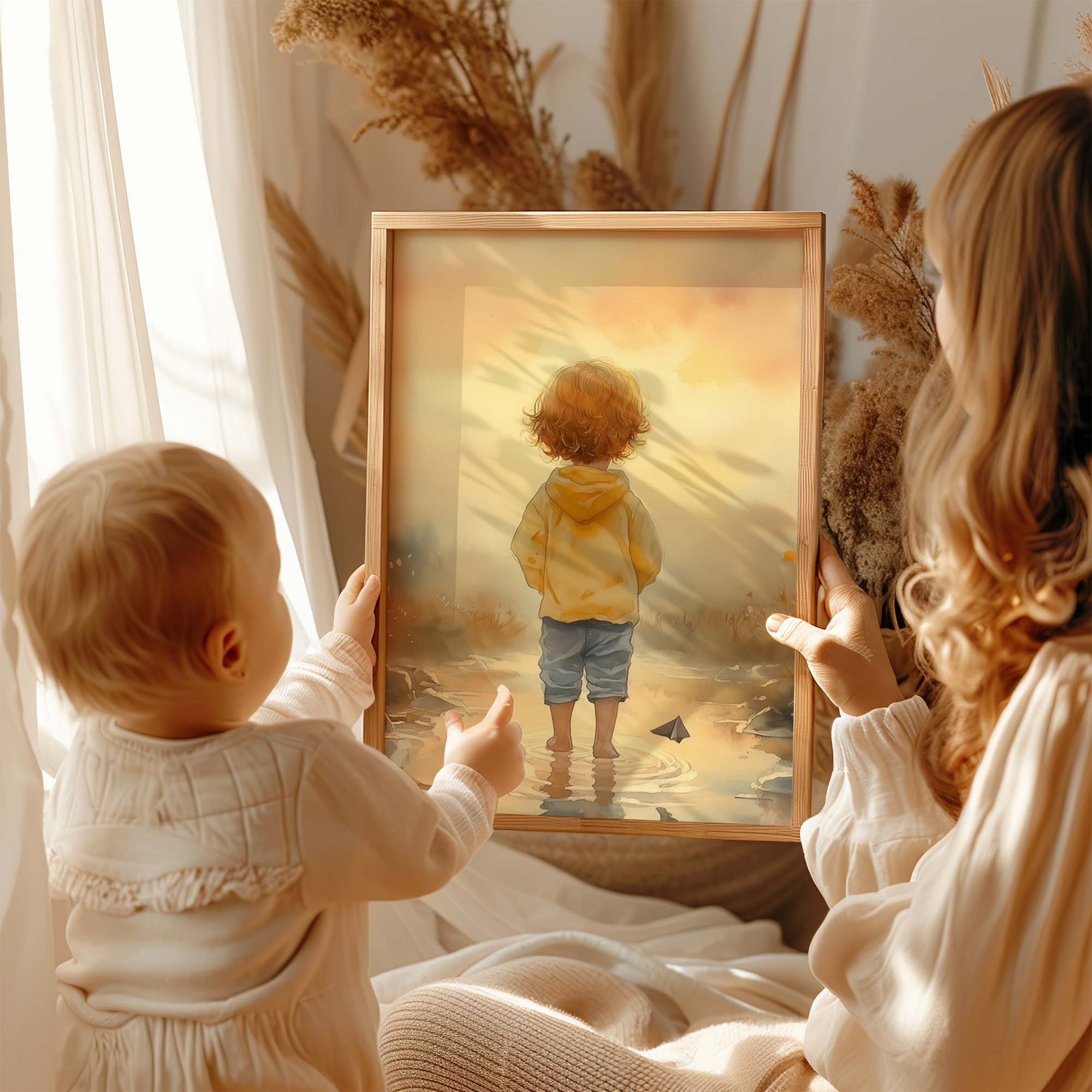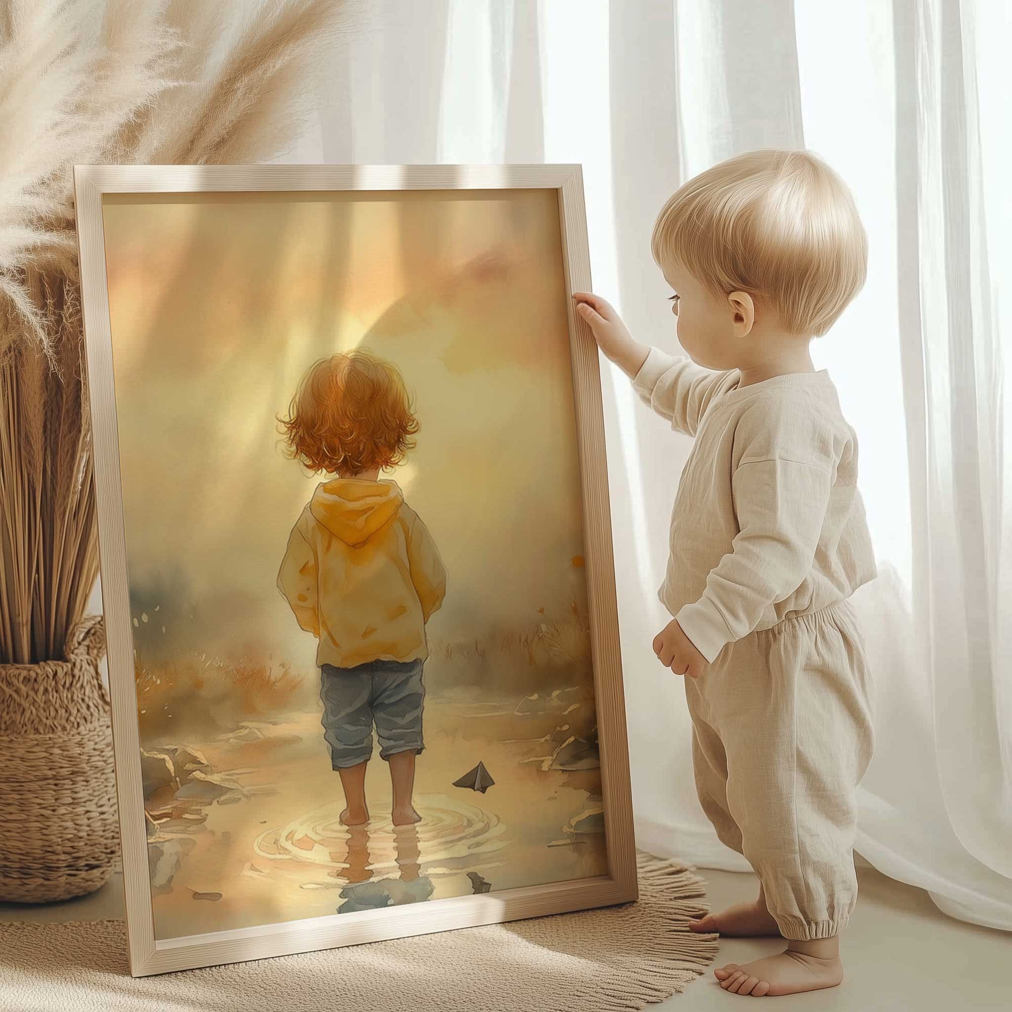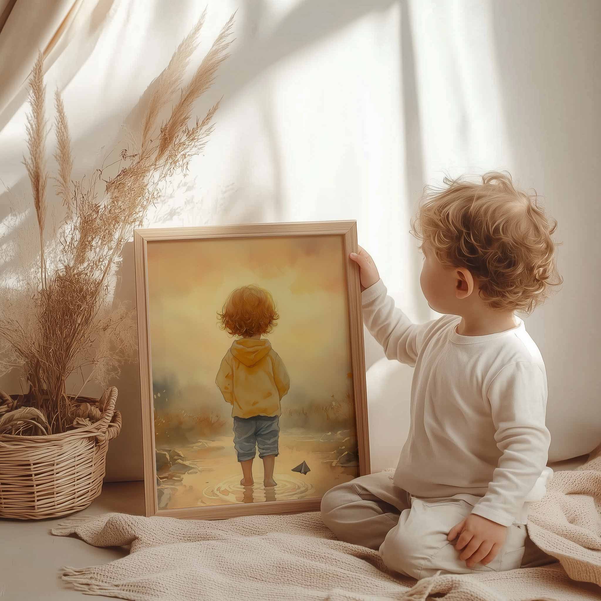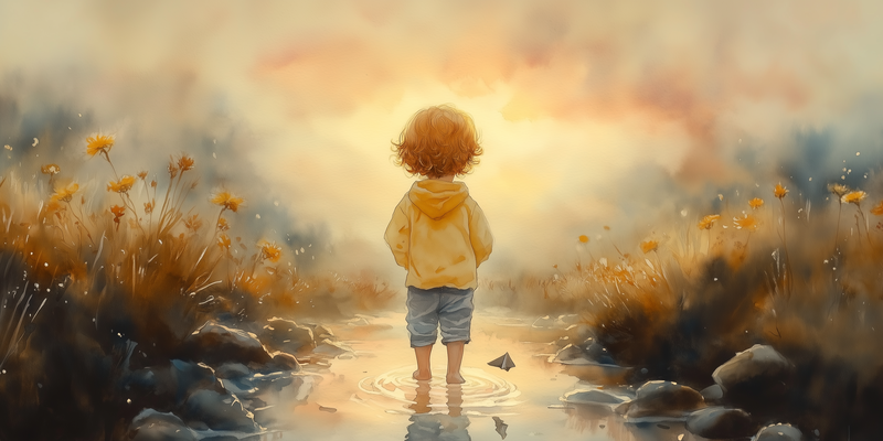 Zonnig Kind in Bloeiend Waterlandschap