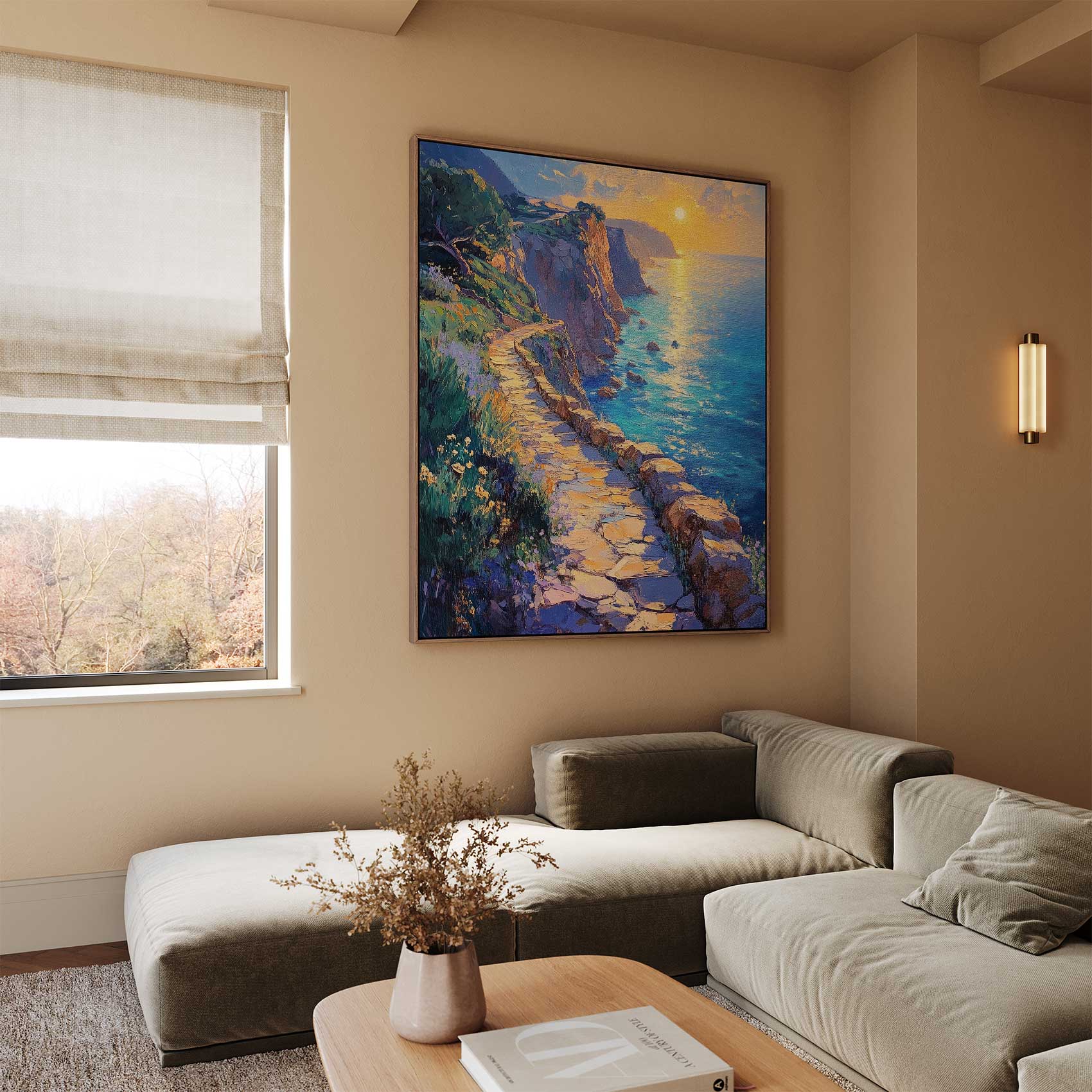 Zonnig Kustpad Schilderij