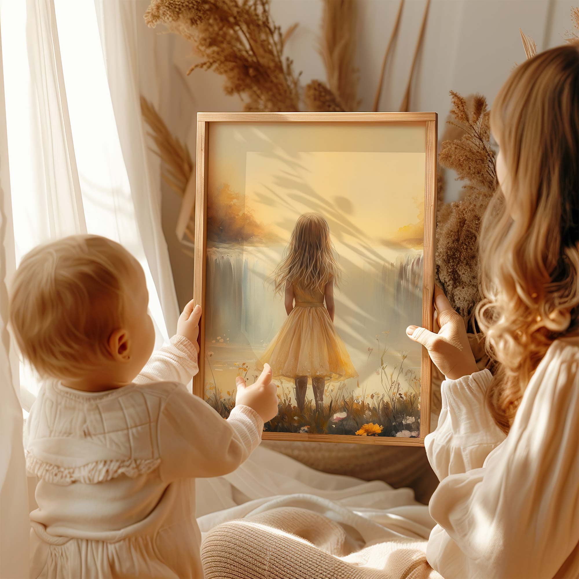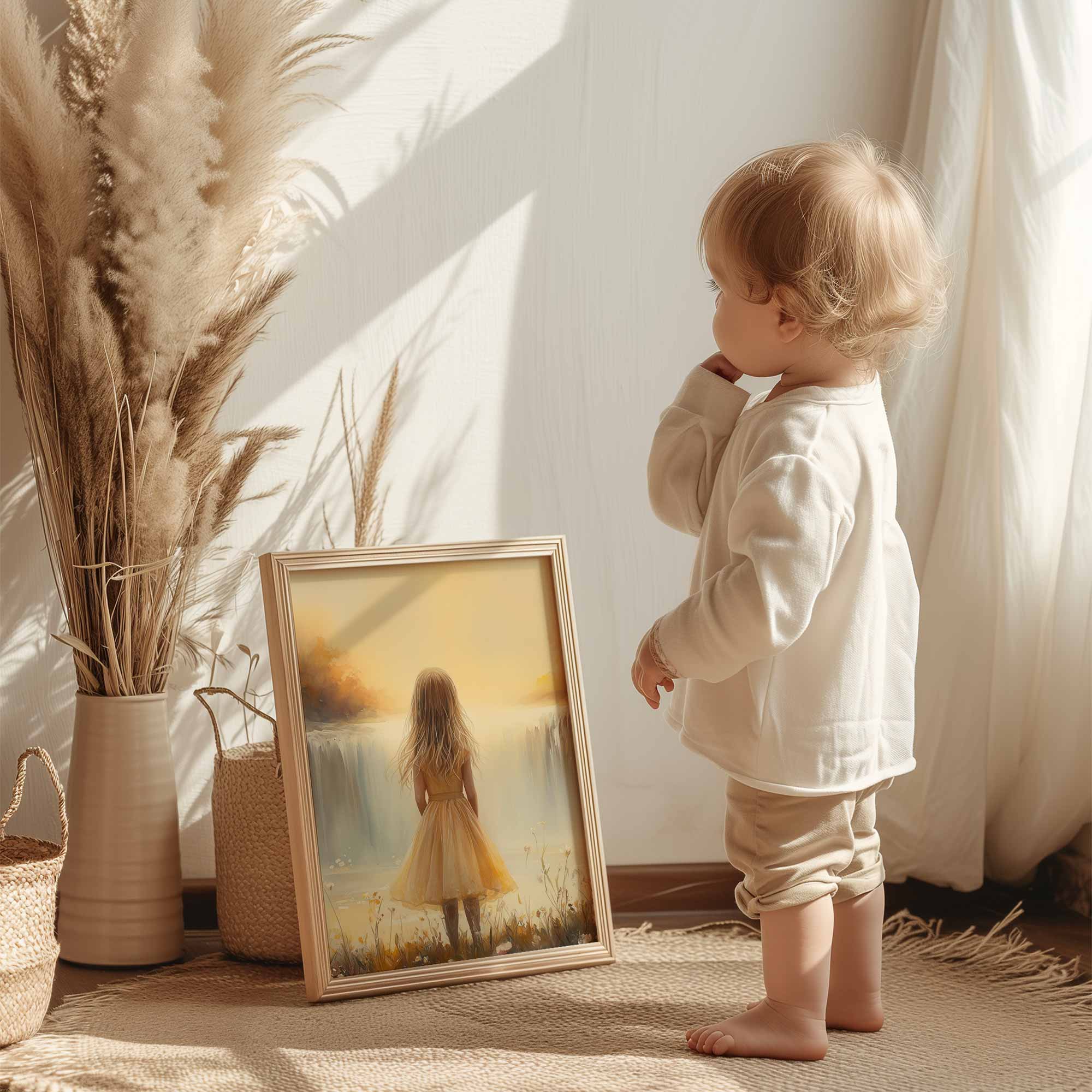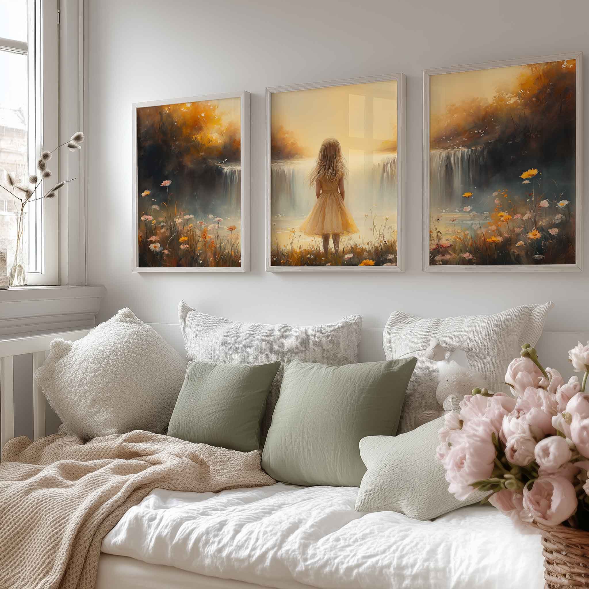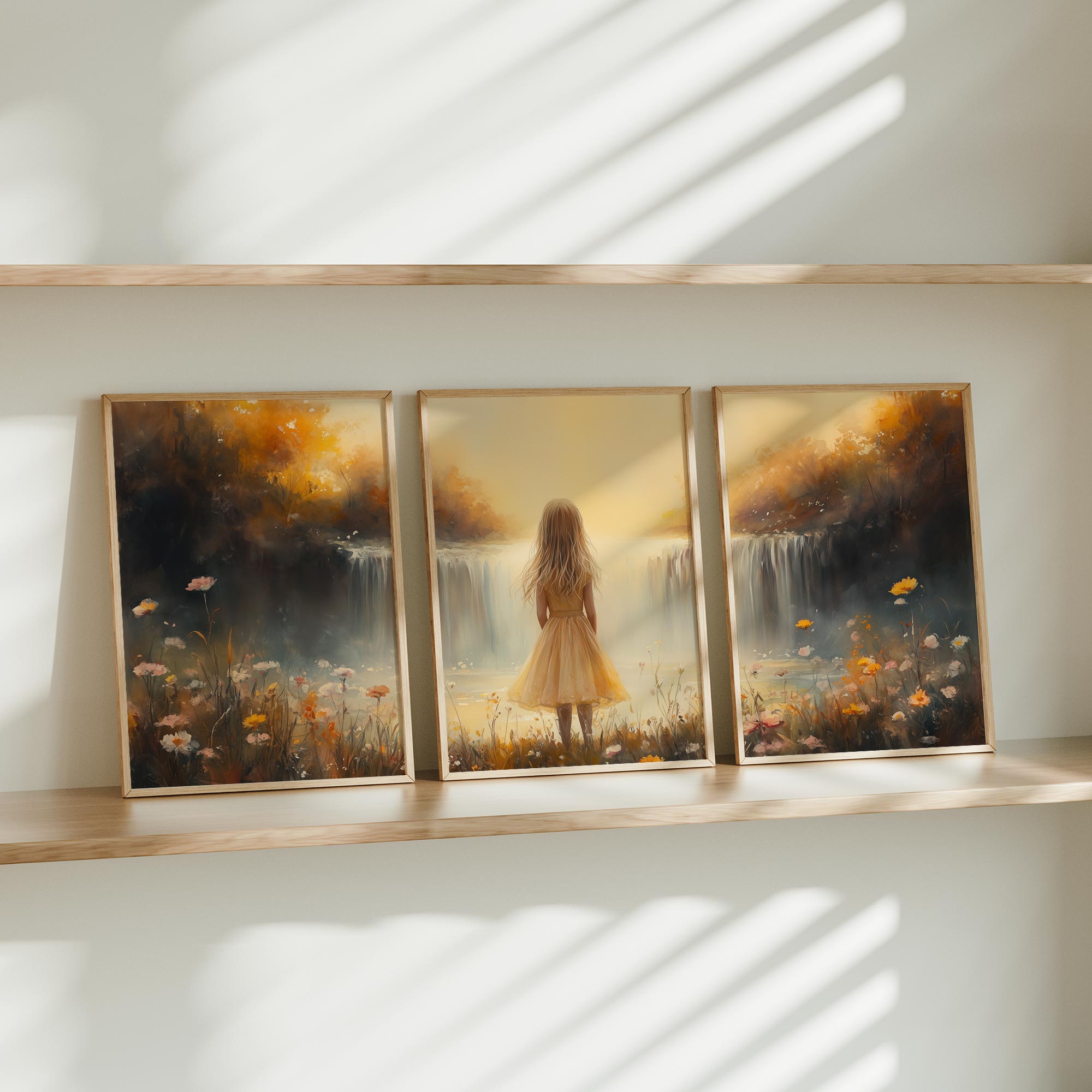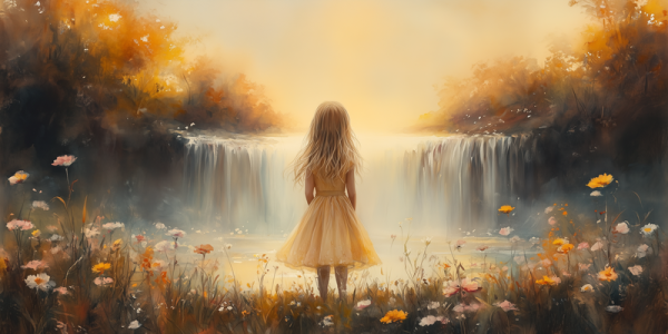 Zonnig Meisje bij Betoverende Bloemenwaterval