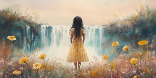 Terug naar collectie Posters Zonnig Meisje bij Betoverende Bloemenwaterval
