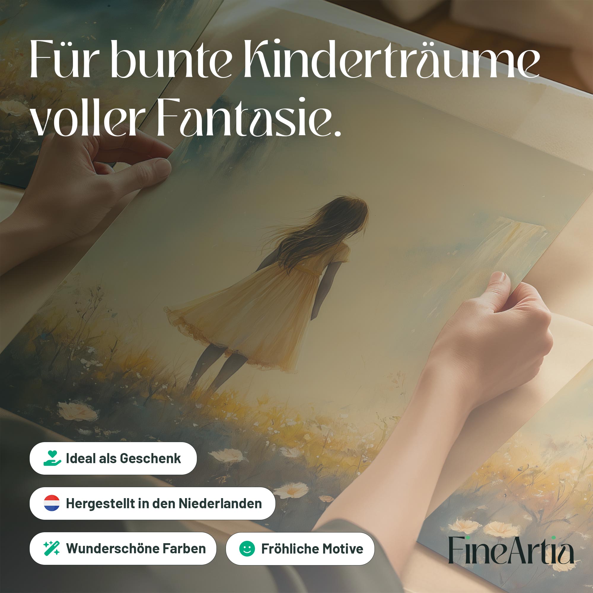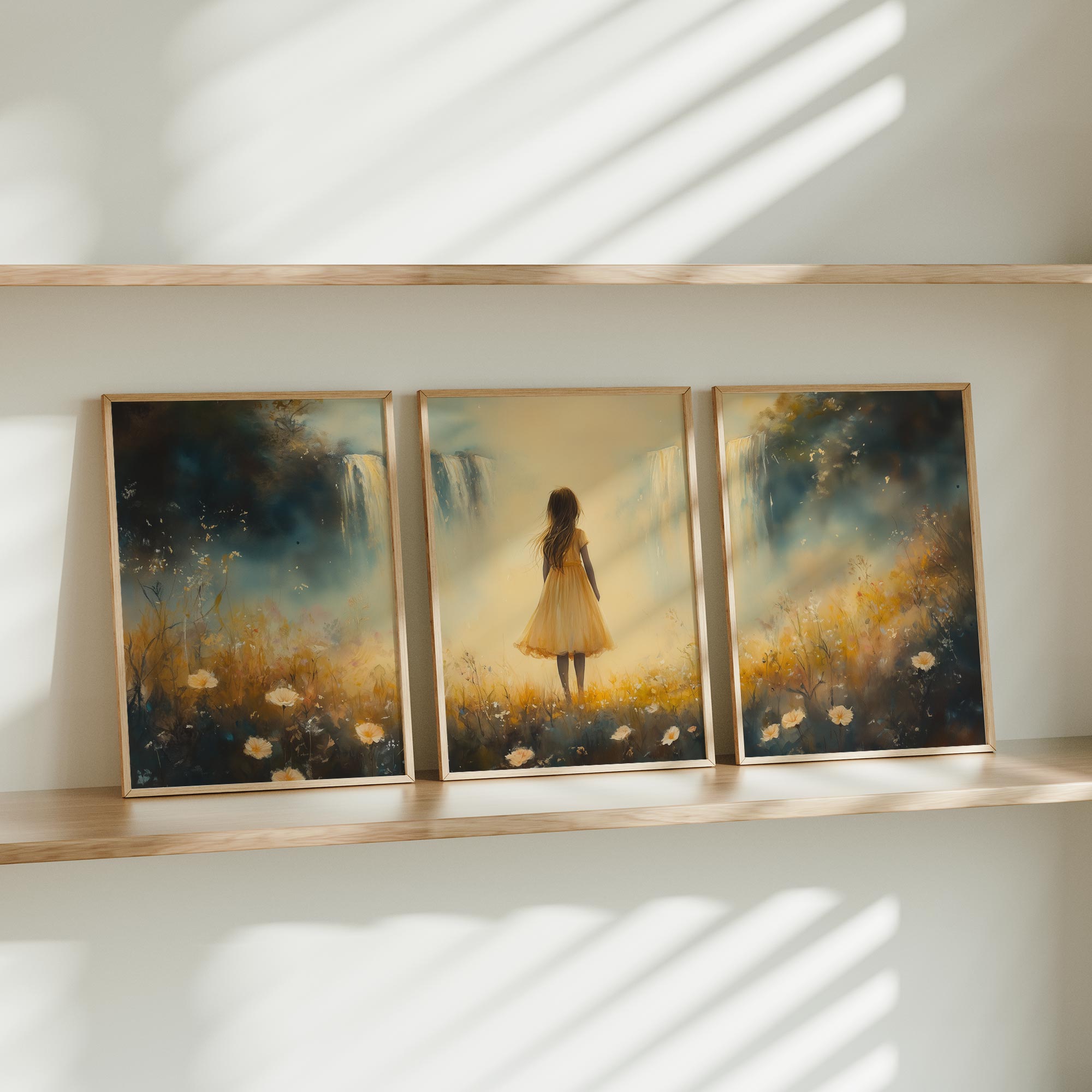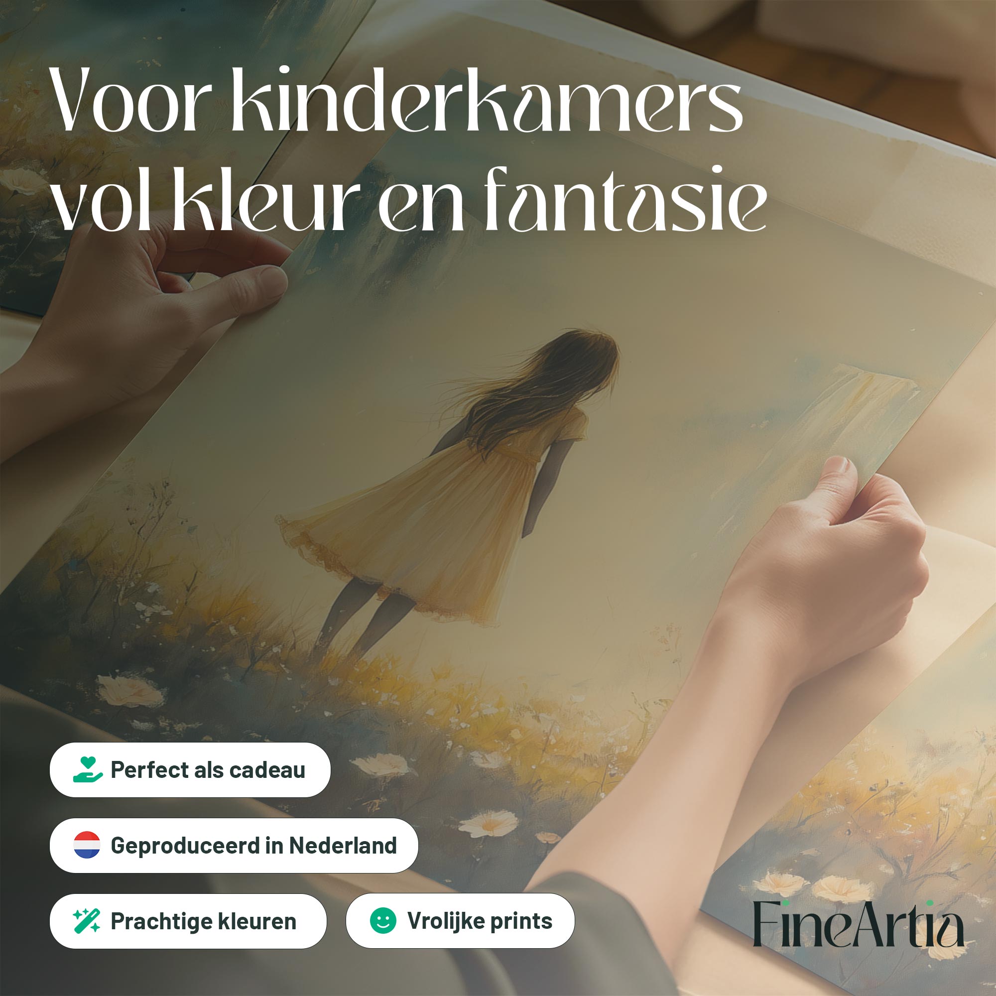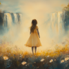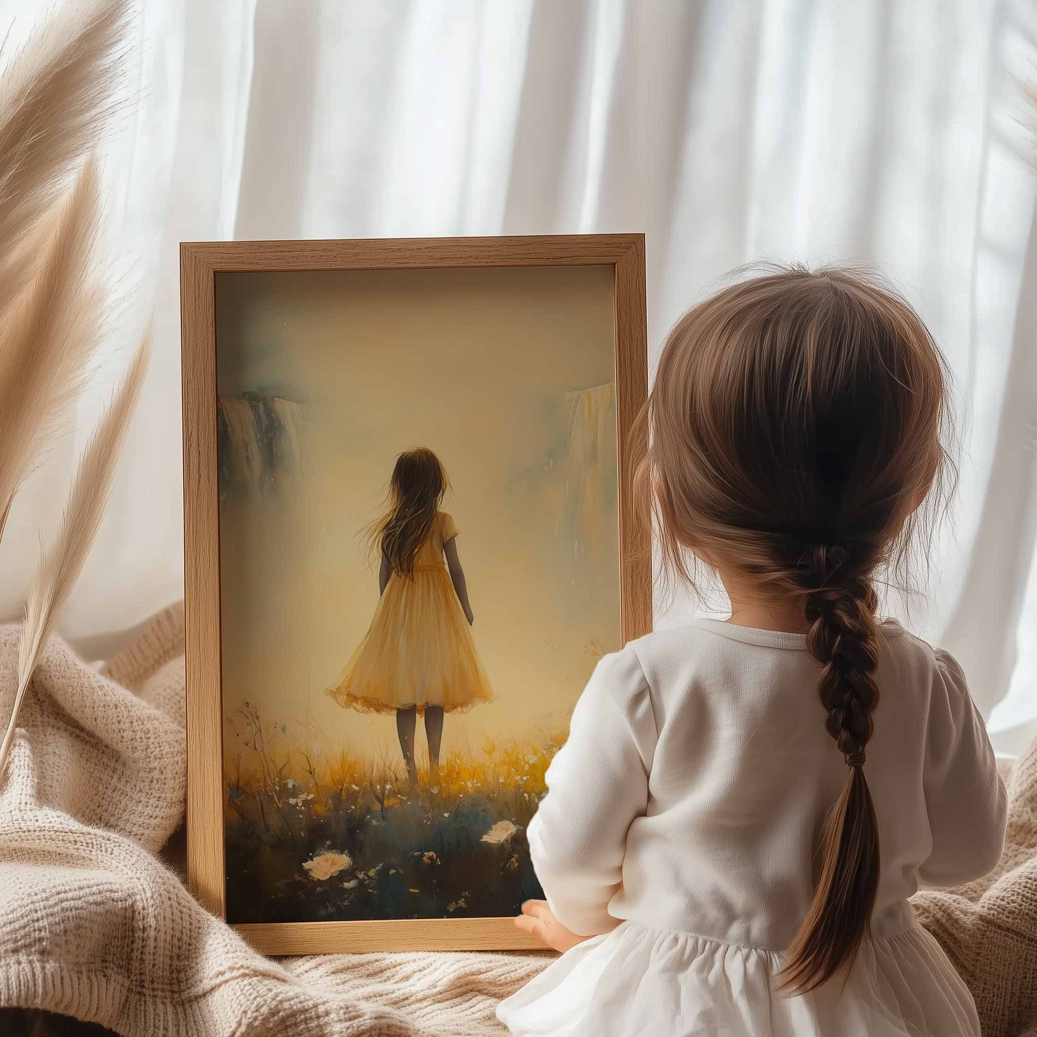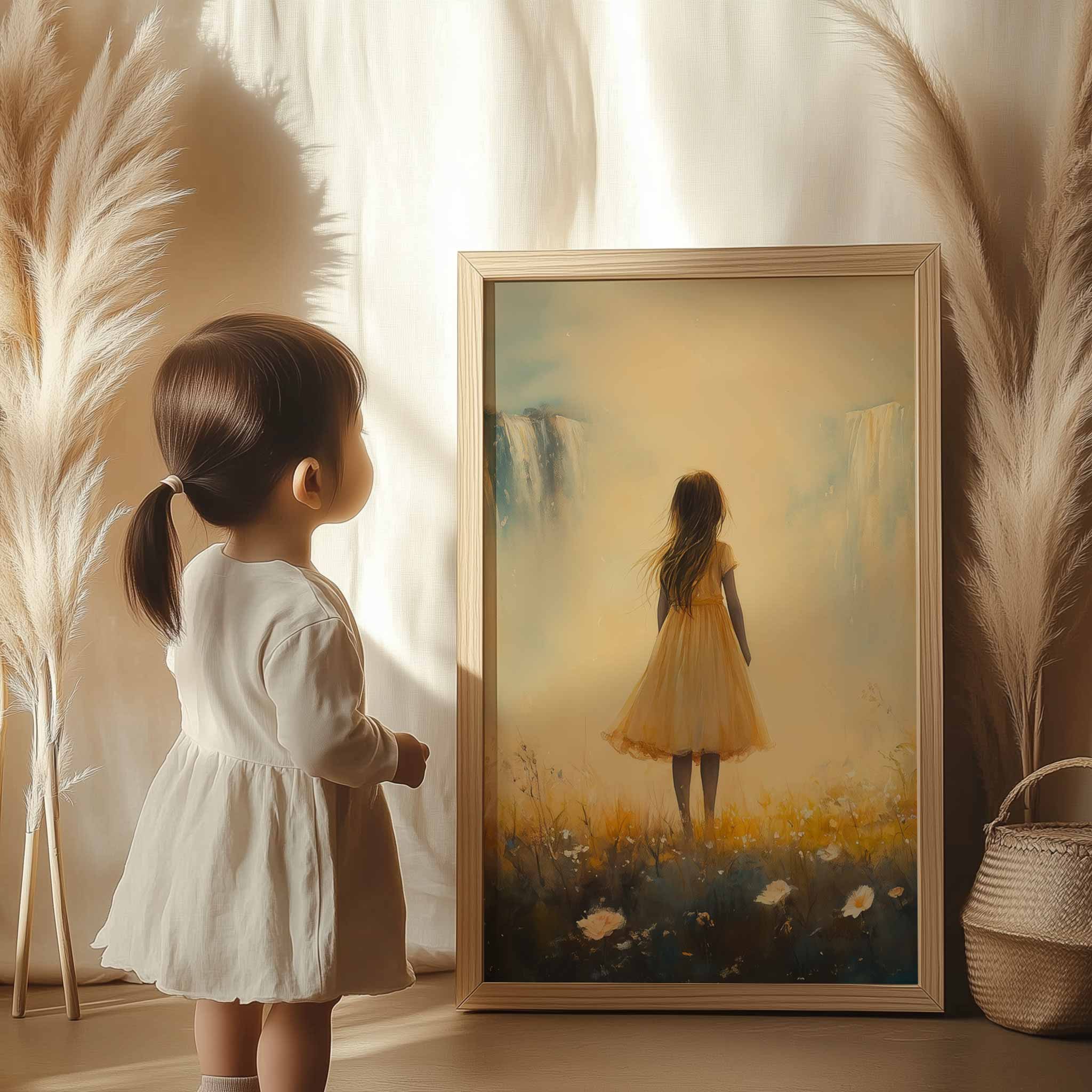 Terug naar collectie Posters Zonnig Meisje bij de Waterval – Droom in Geel en Groen