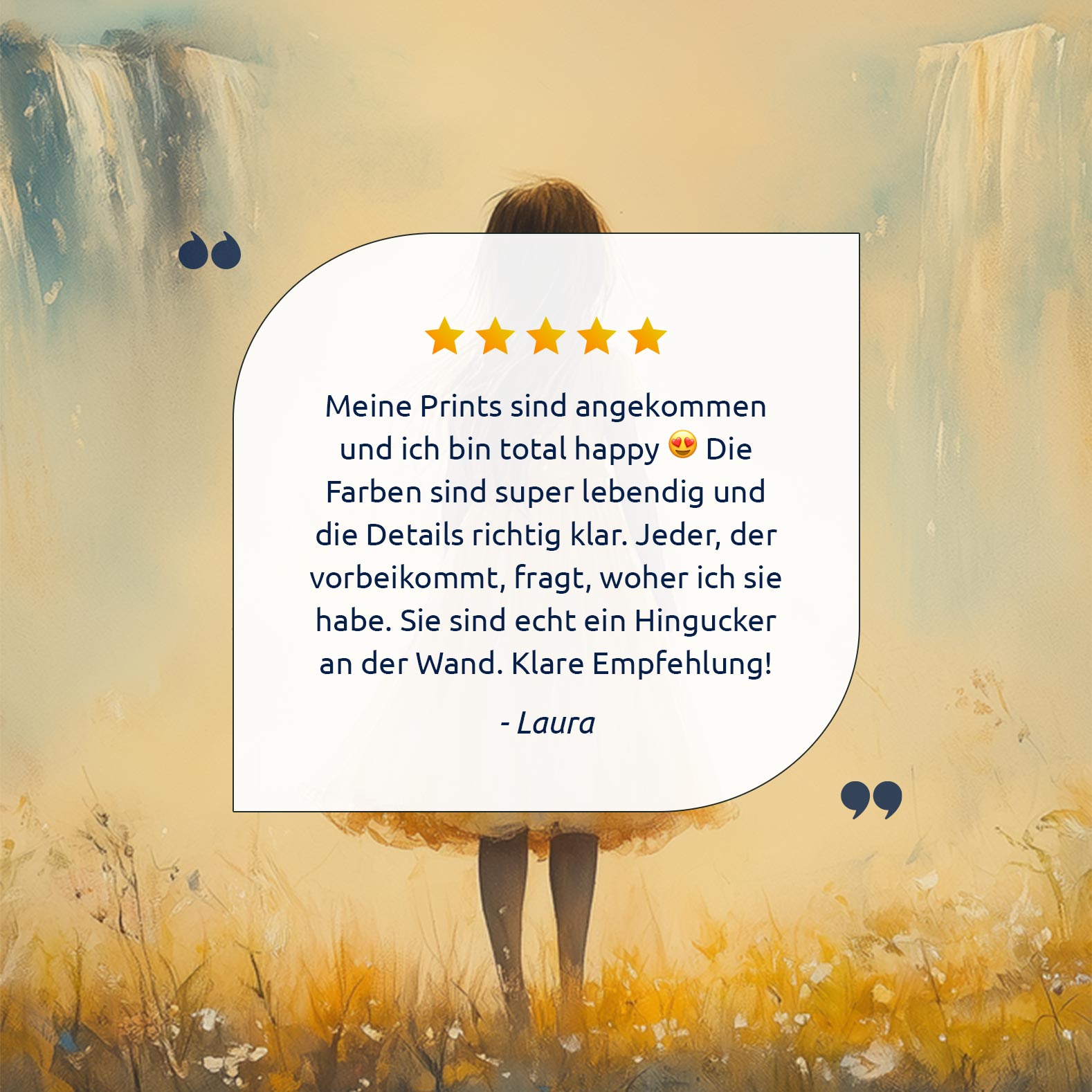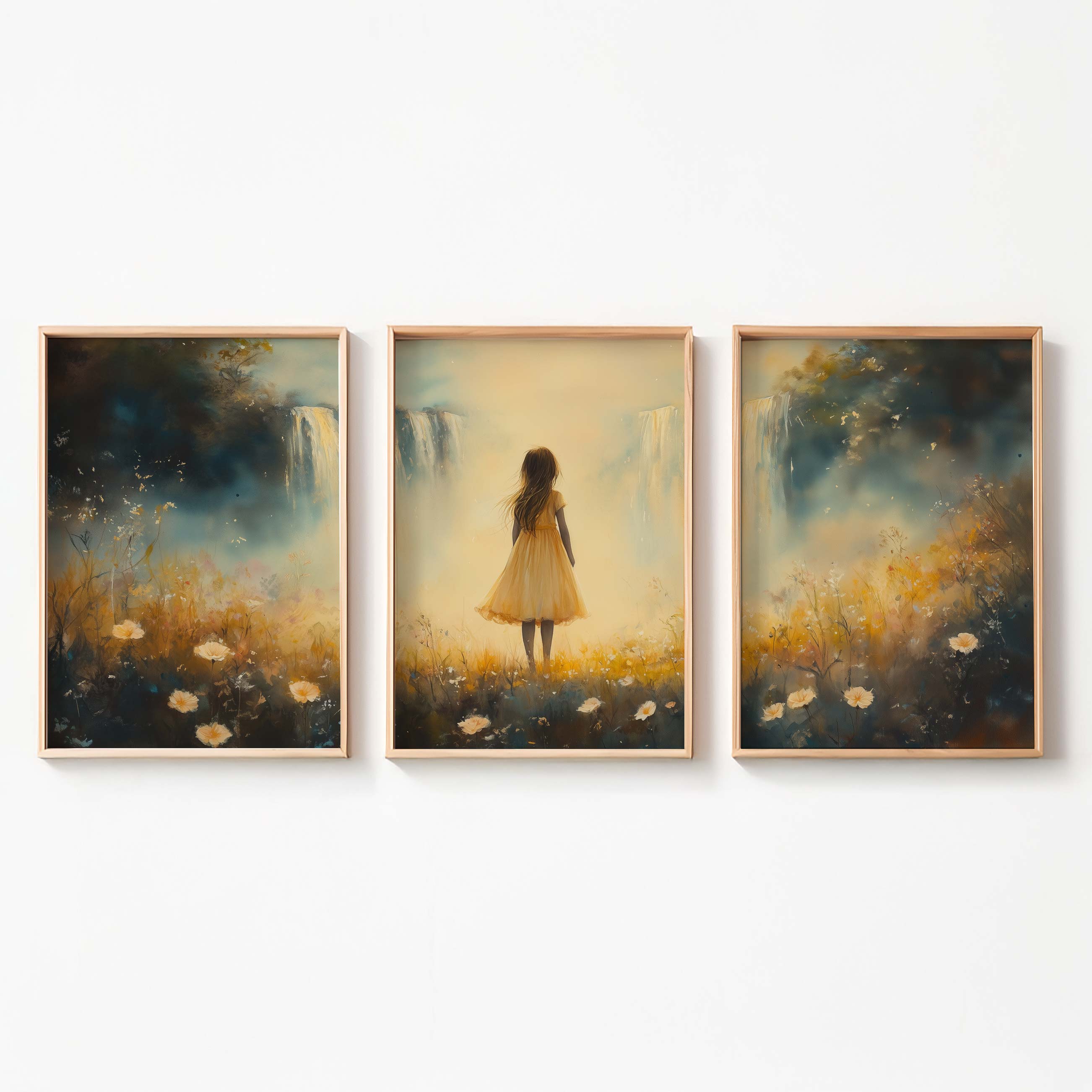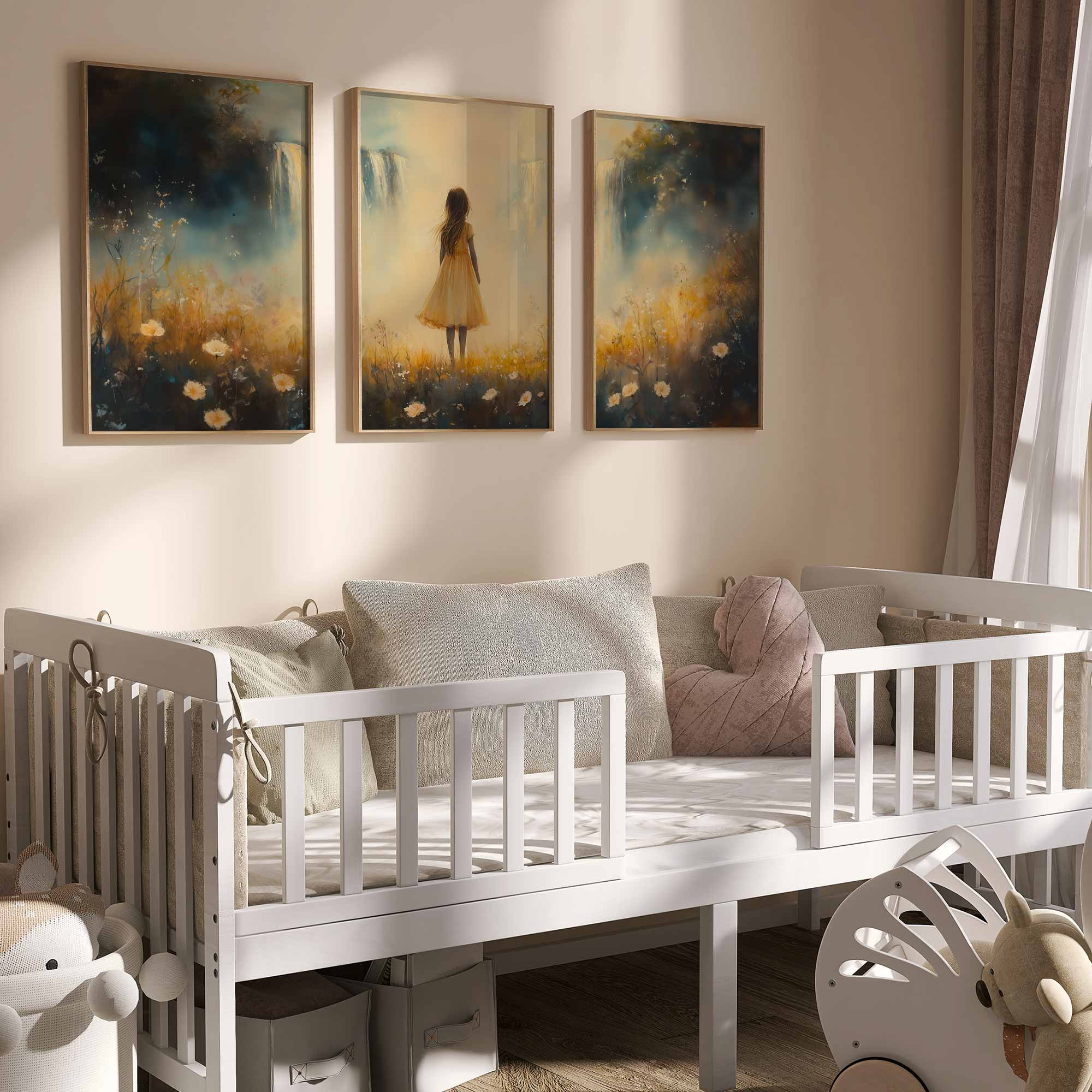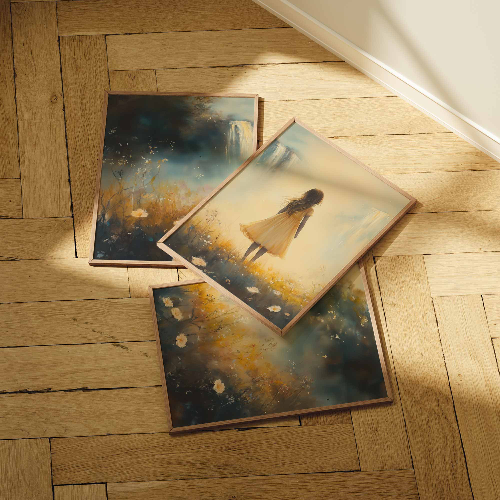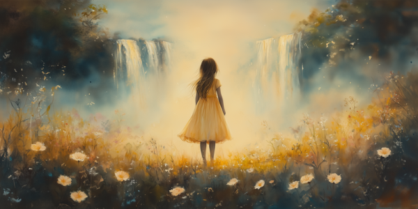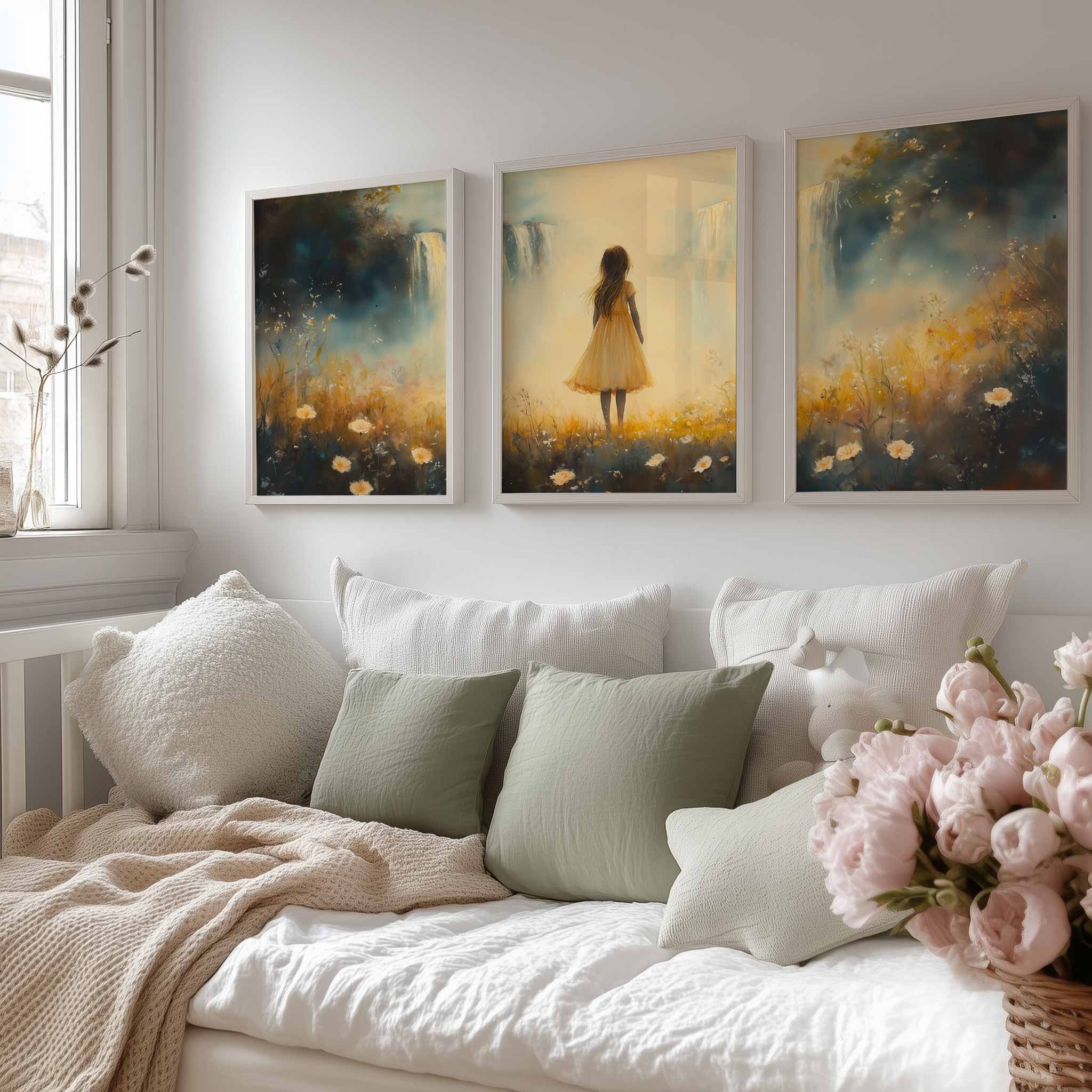Terug naar collectie Posters Zonnig Meisje bij de Waterval – Droom in Geel en Groen
