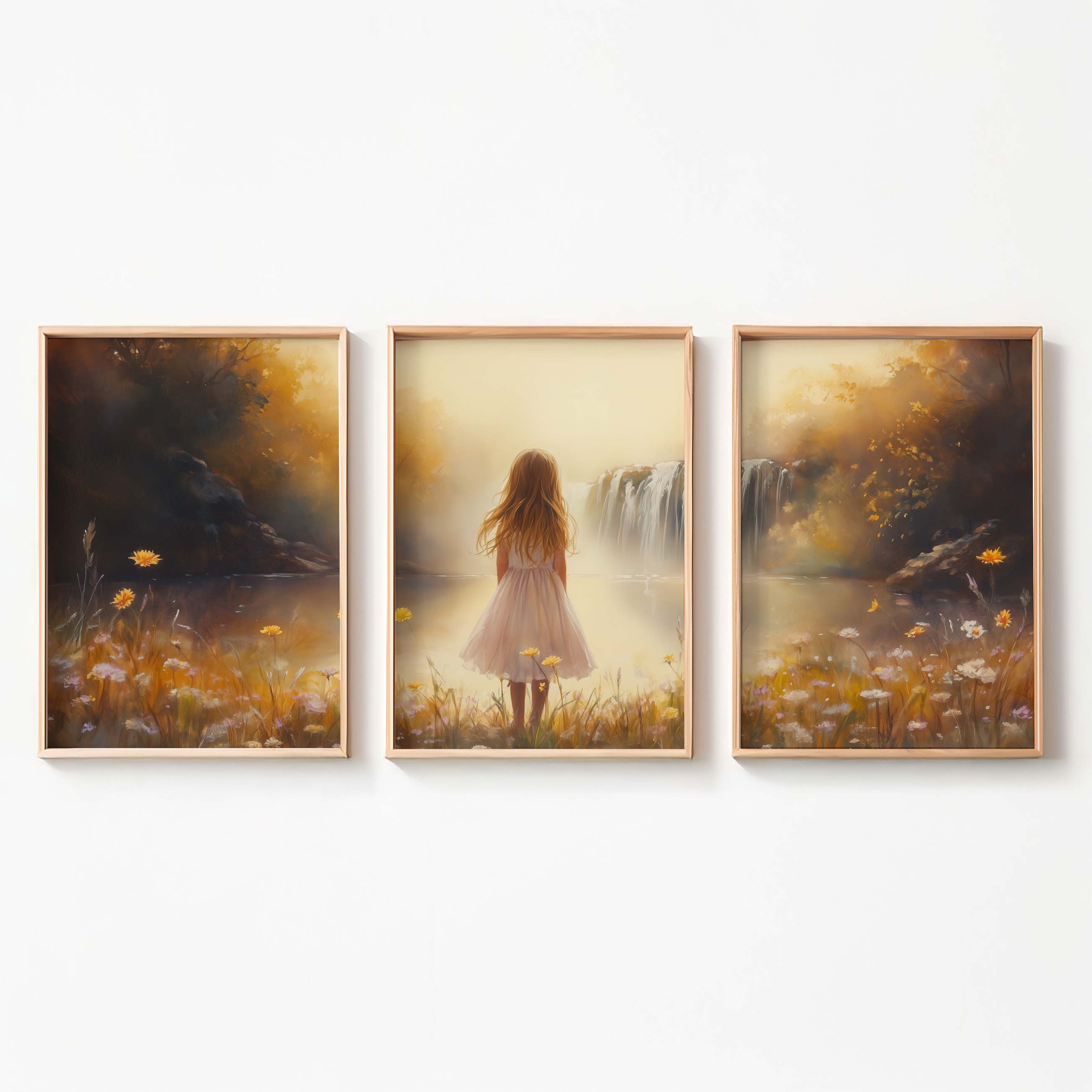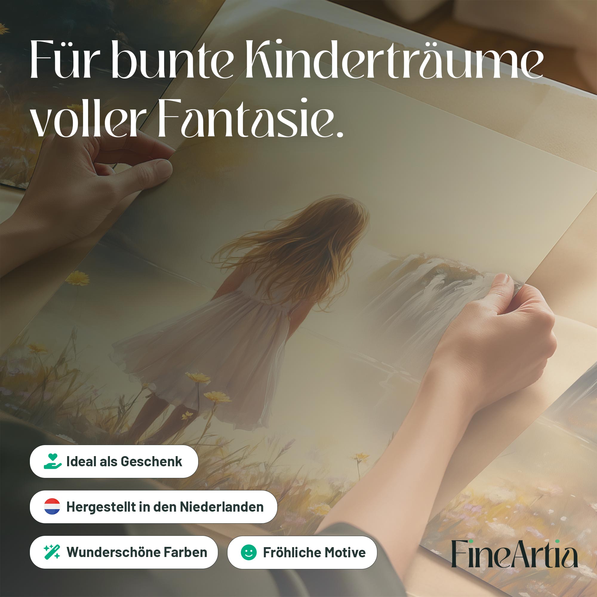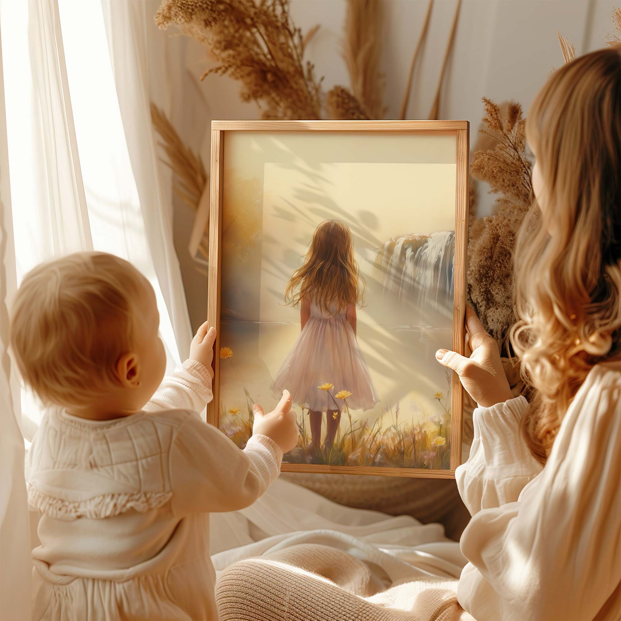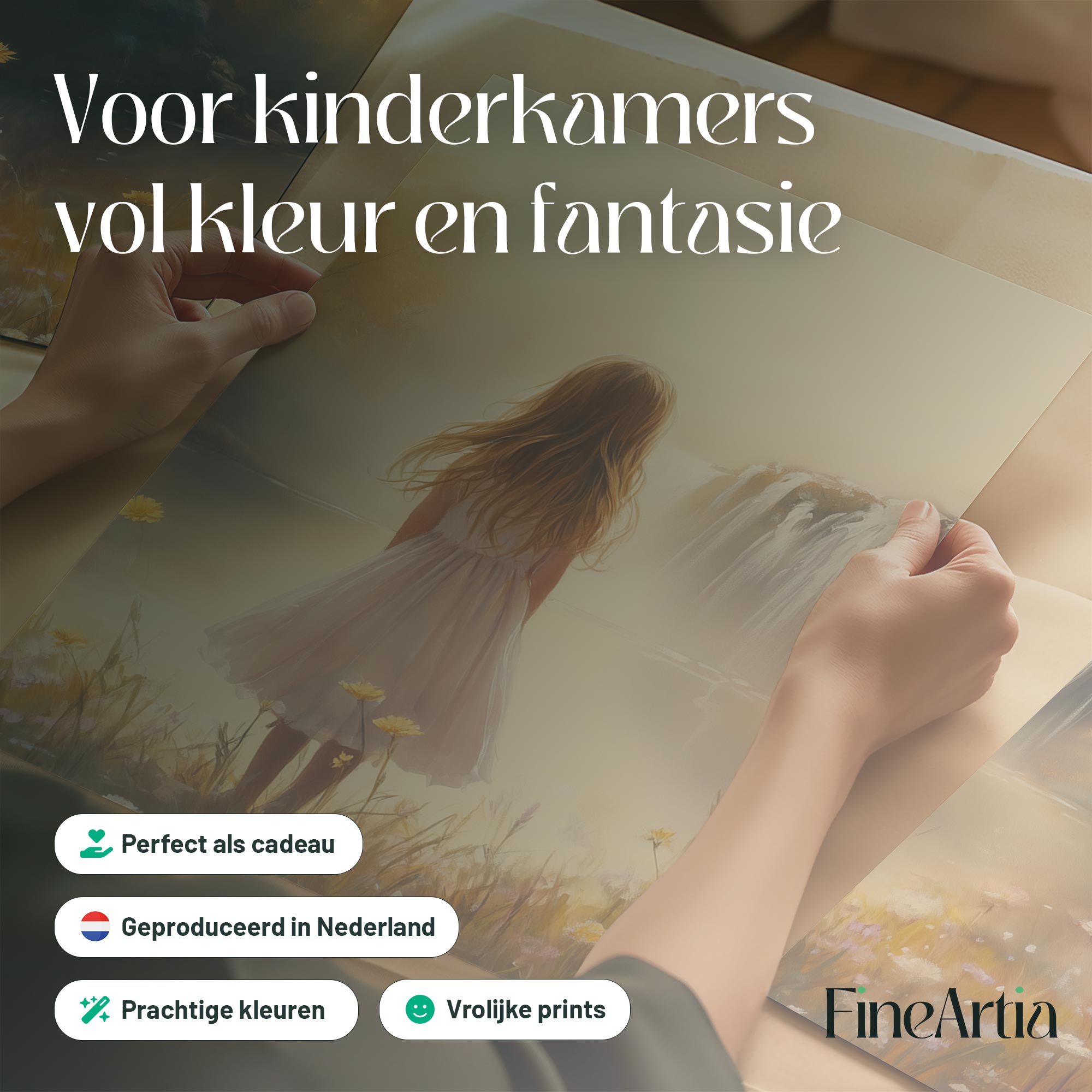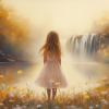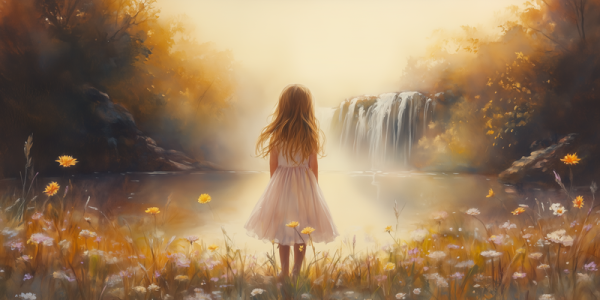 Zonnig Meisje bij de Waterval in Bloemenveld