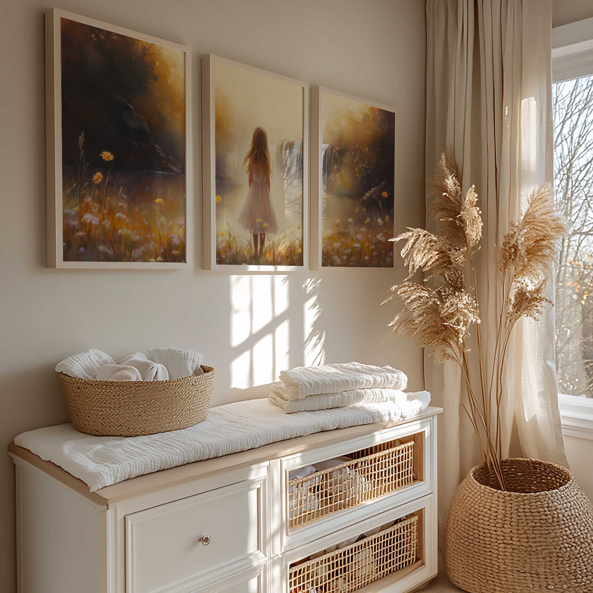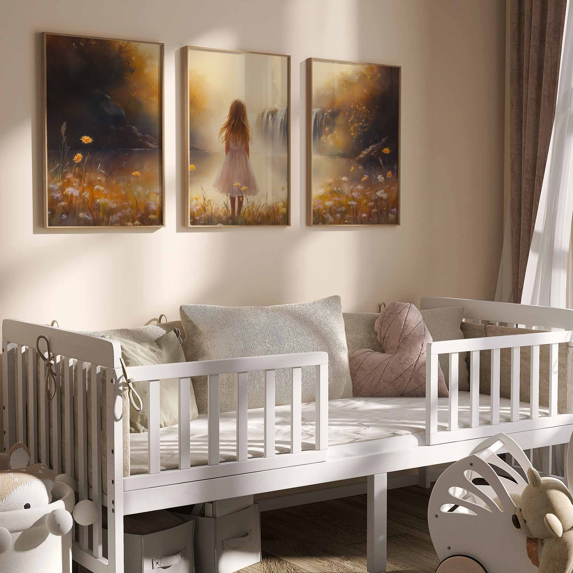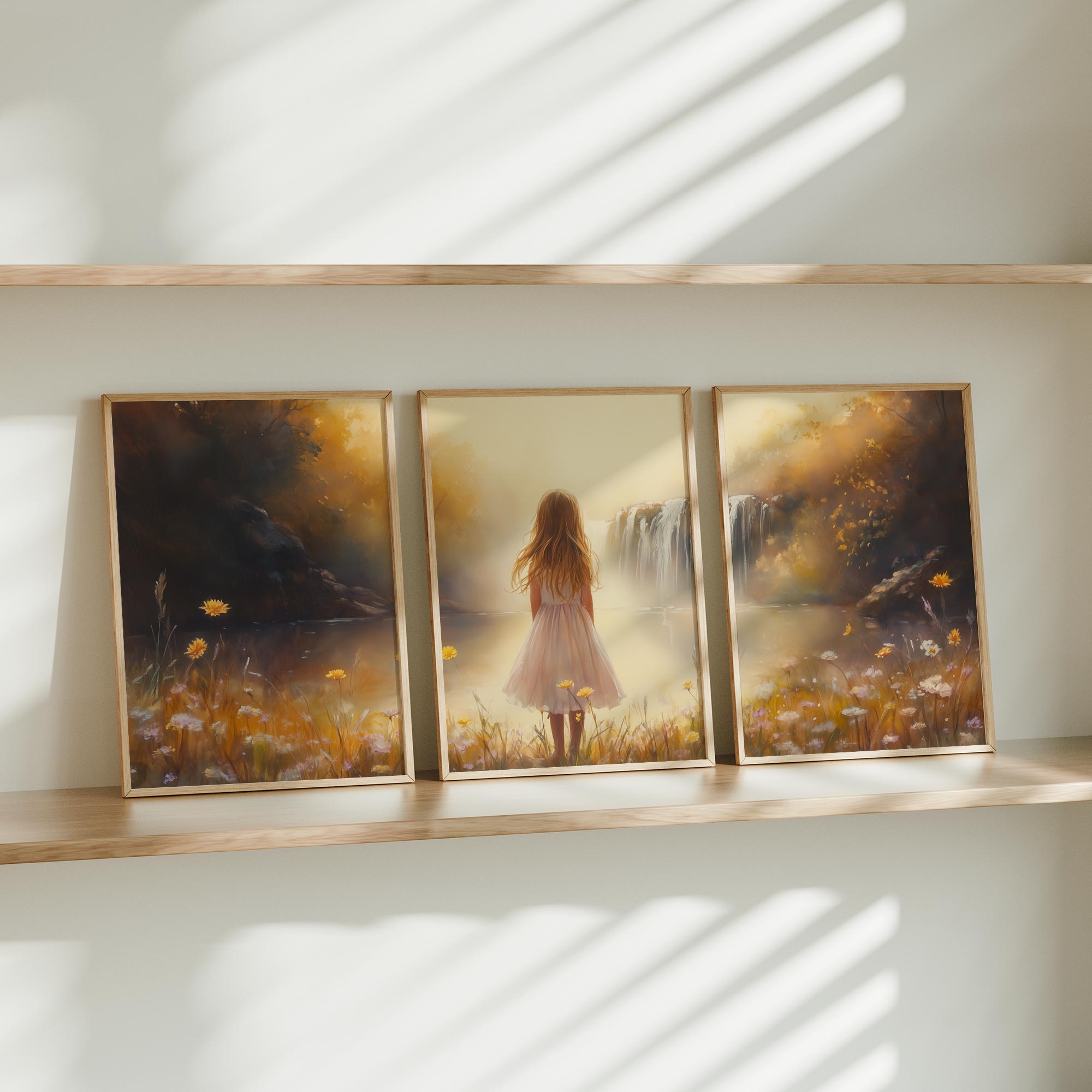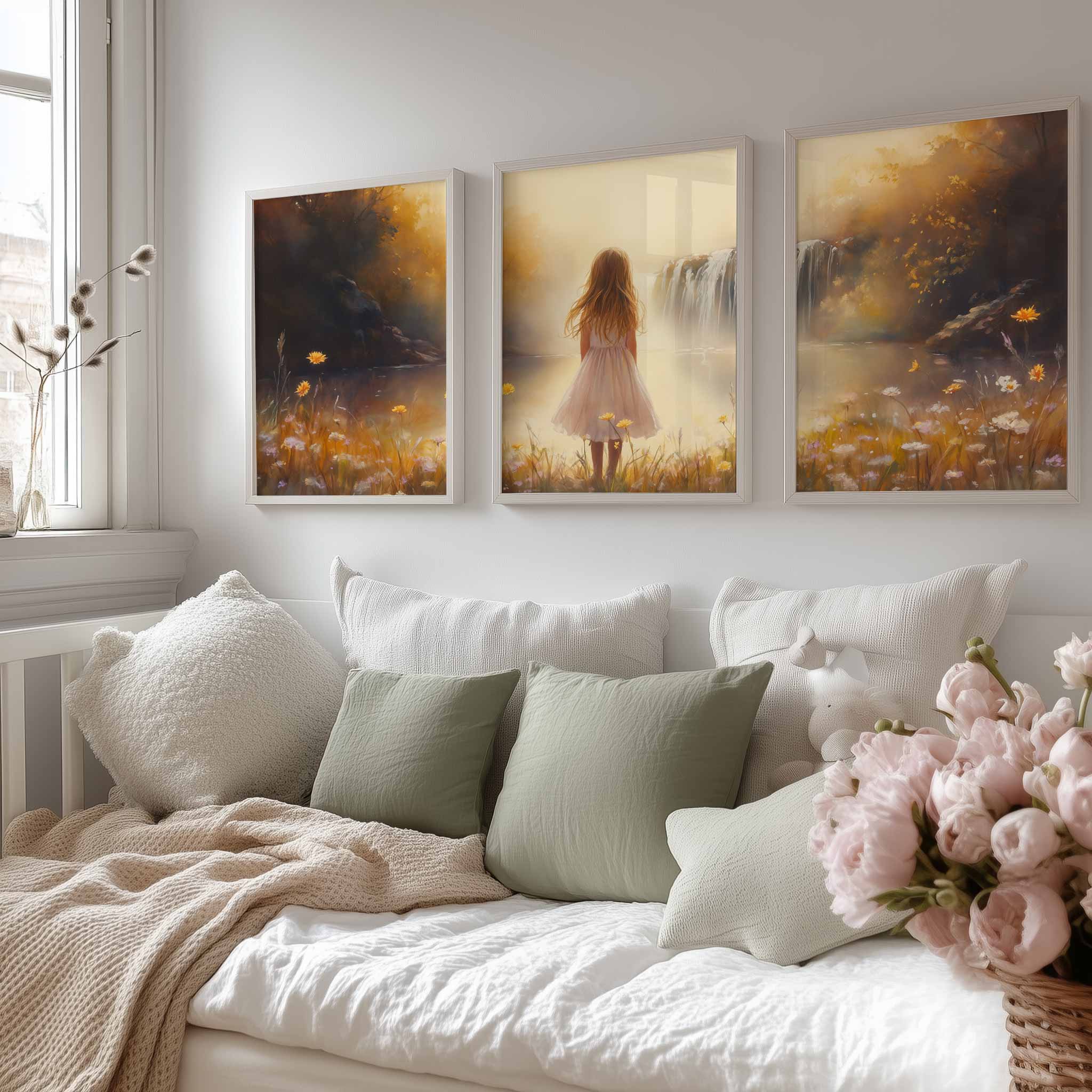 Zonnig Meisje bij de Waterval in Bloemenveld