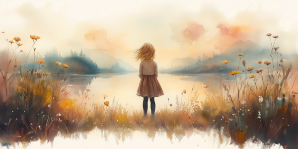 Zonnig Meisje bij het Meer – Speels Landschap